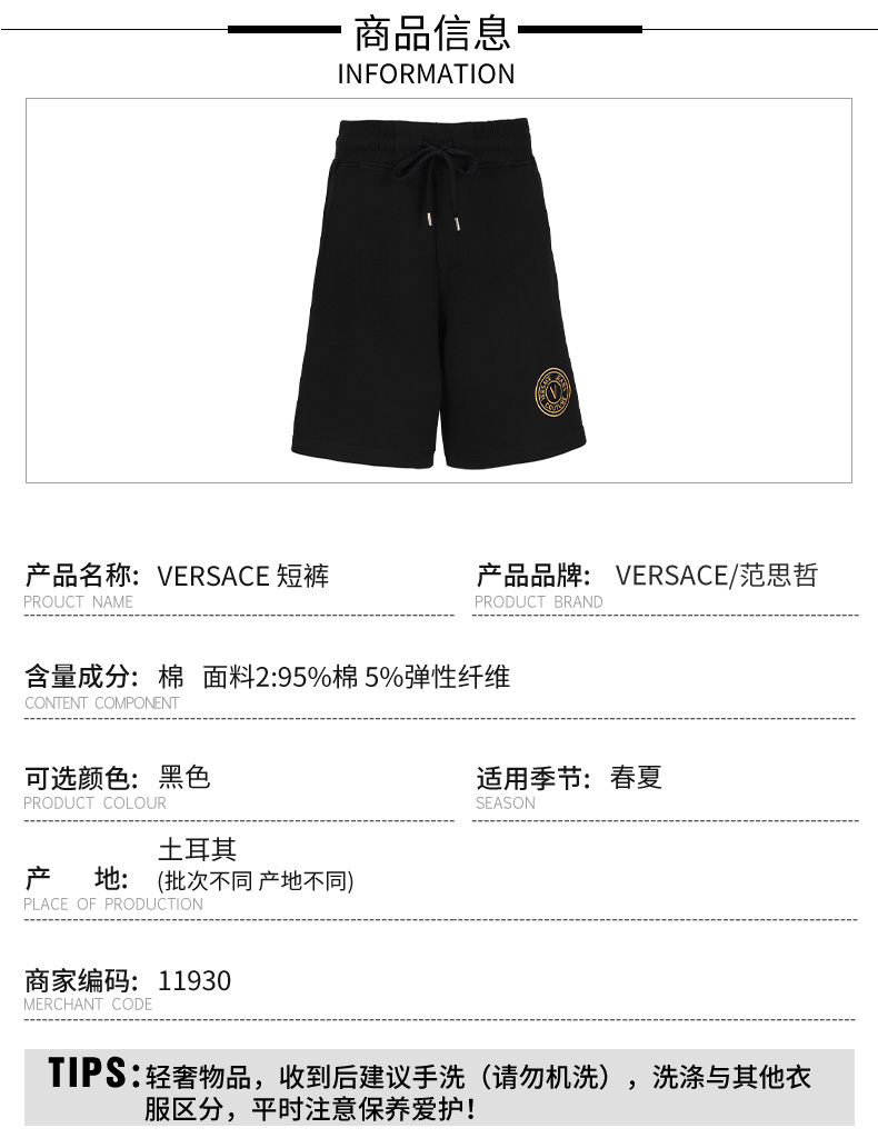 Versace 范思哲 男士刺绣logo百搭弹棉休闲短裤 11930