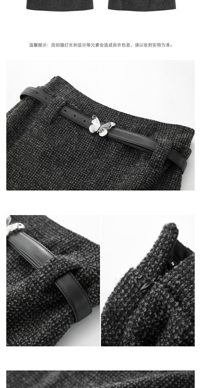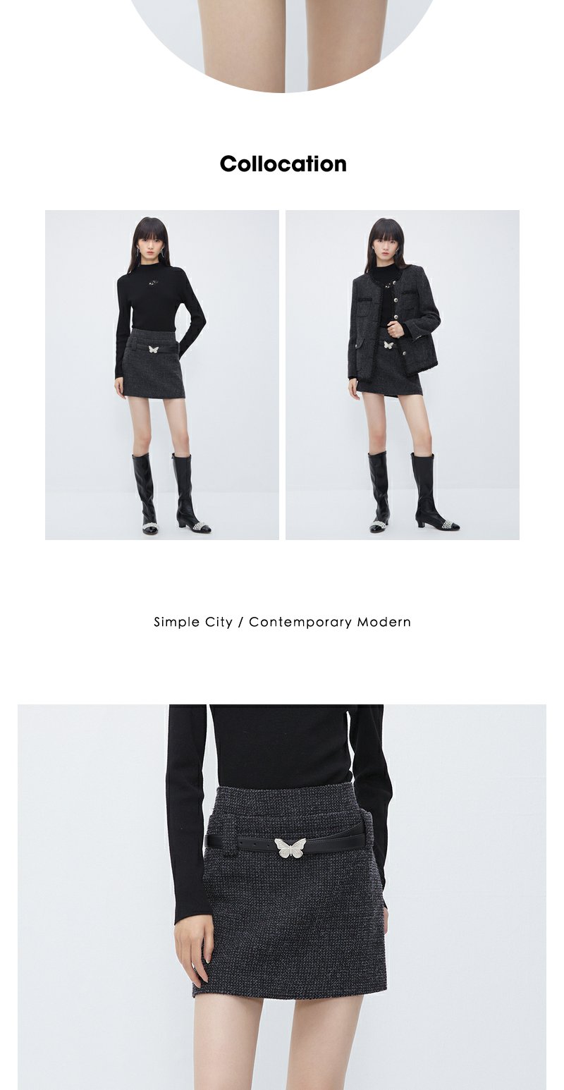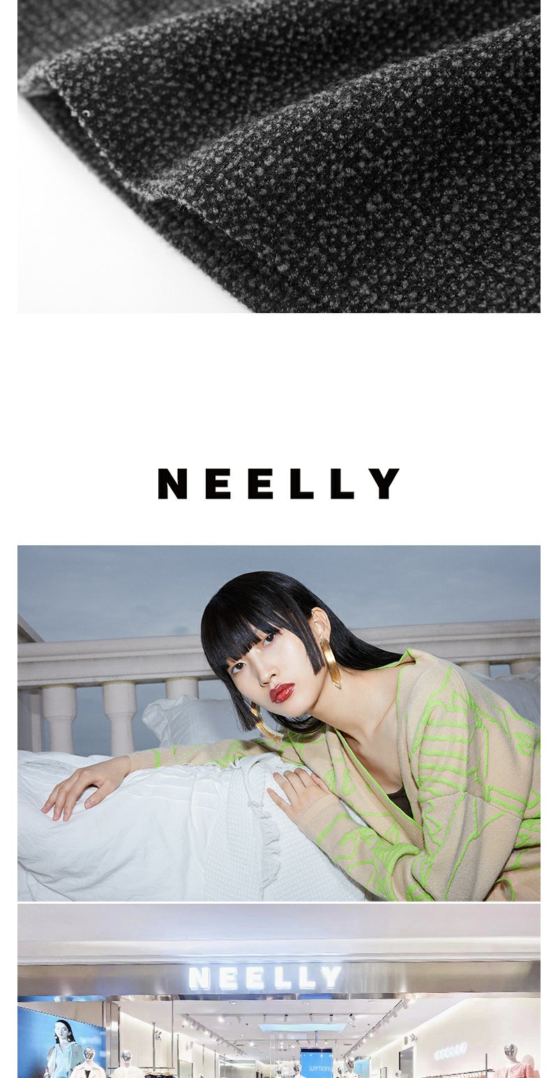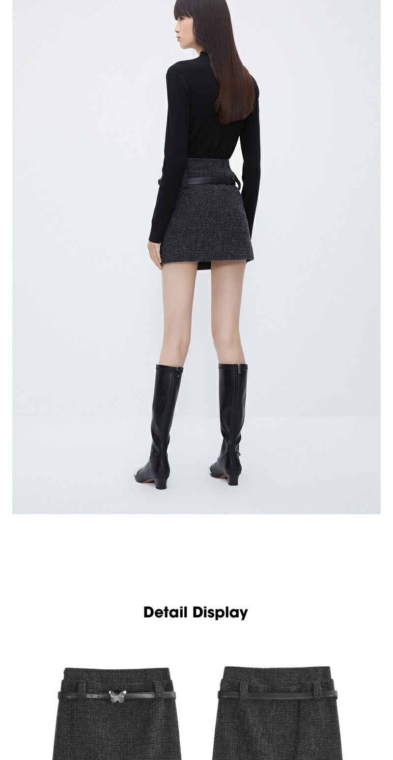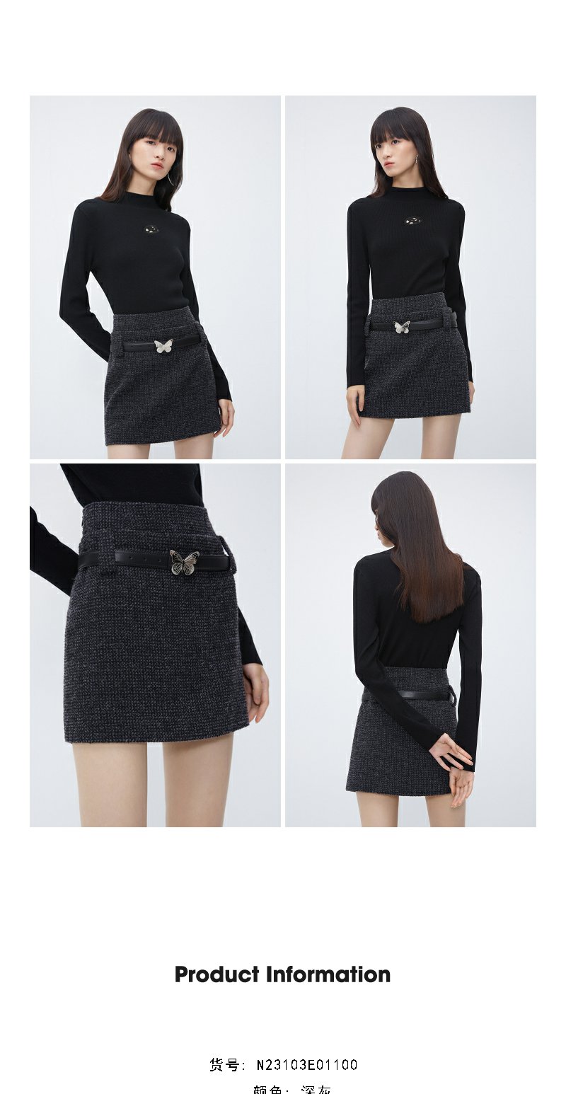 NEELLY纳俪商场同款高腰小香风A字裙 灰色高级感粗花呢短裙配腰带N23103E01100