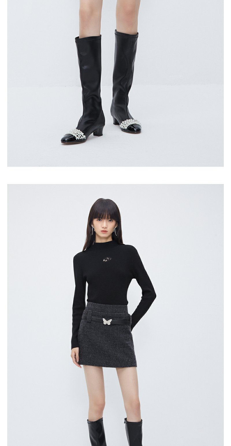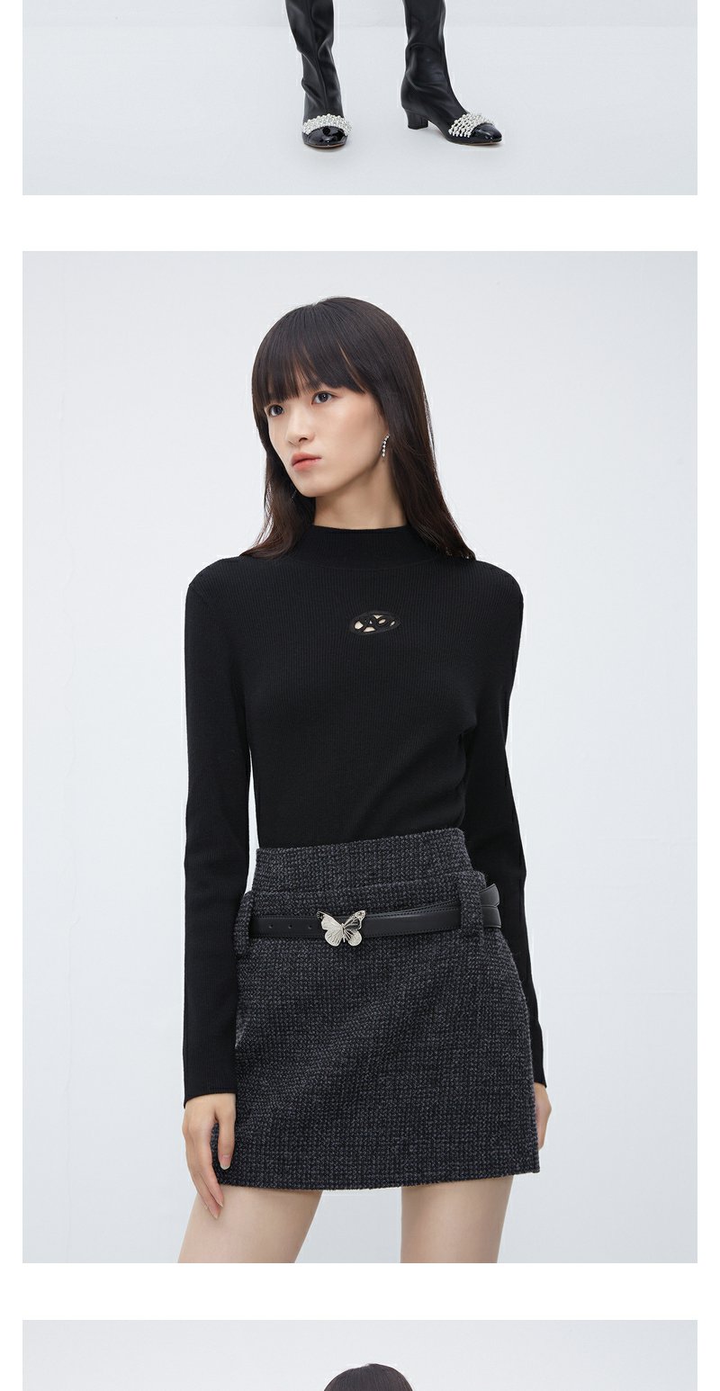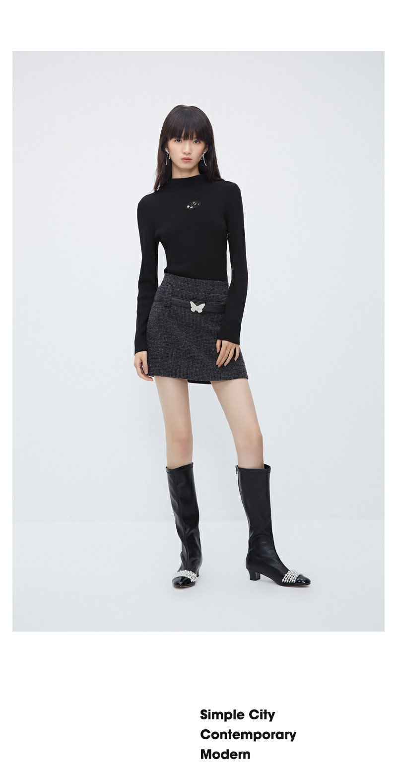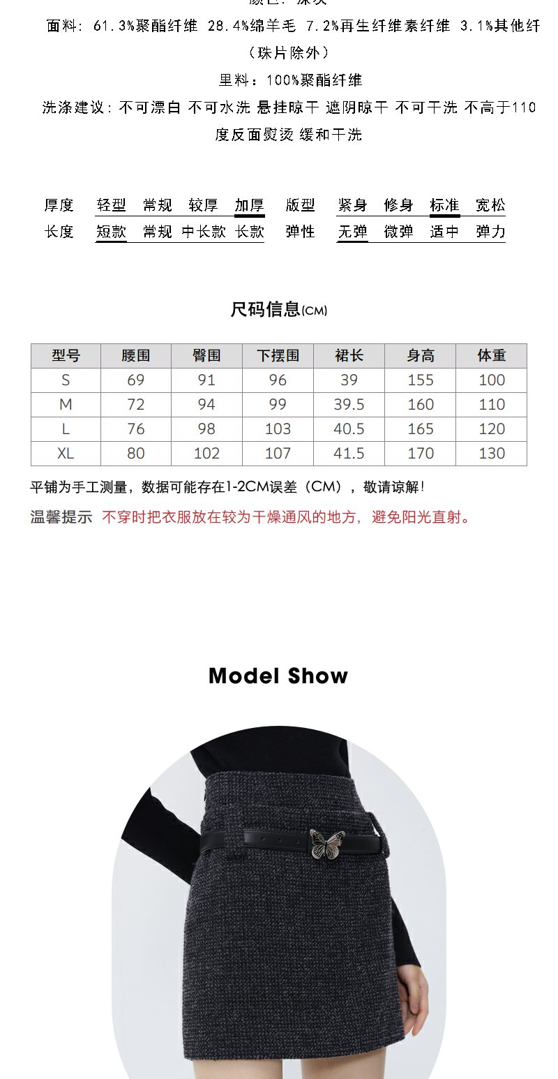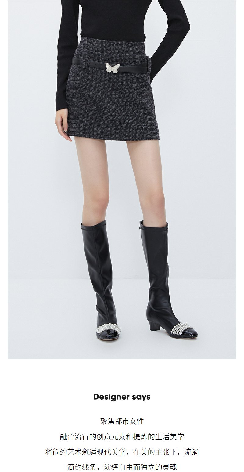 NEELLY纳俪商场同款高腰小香风A字裙 灰色高级感粗花呢短裙配腰带N23103E01100
