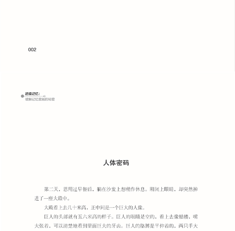 1.《超级记忆:破解记忆宫殿的秘密》是国内**部小说体裁的高效记忆术图书,文笔细腻、思路奇幻、逻辑严谨,既能当文学作品来欣赏,又可以作为标准教程来学习。