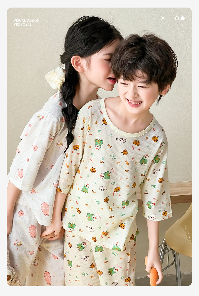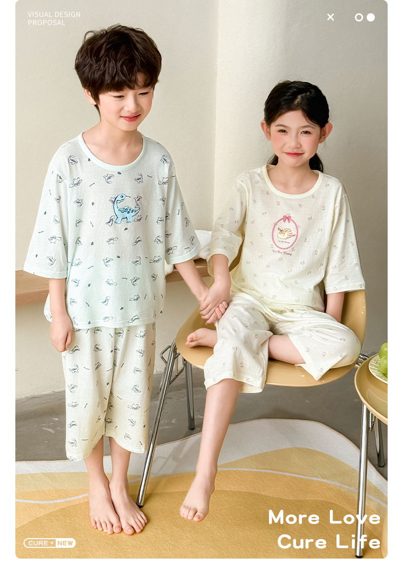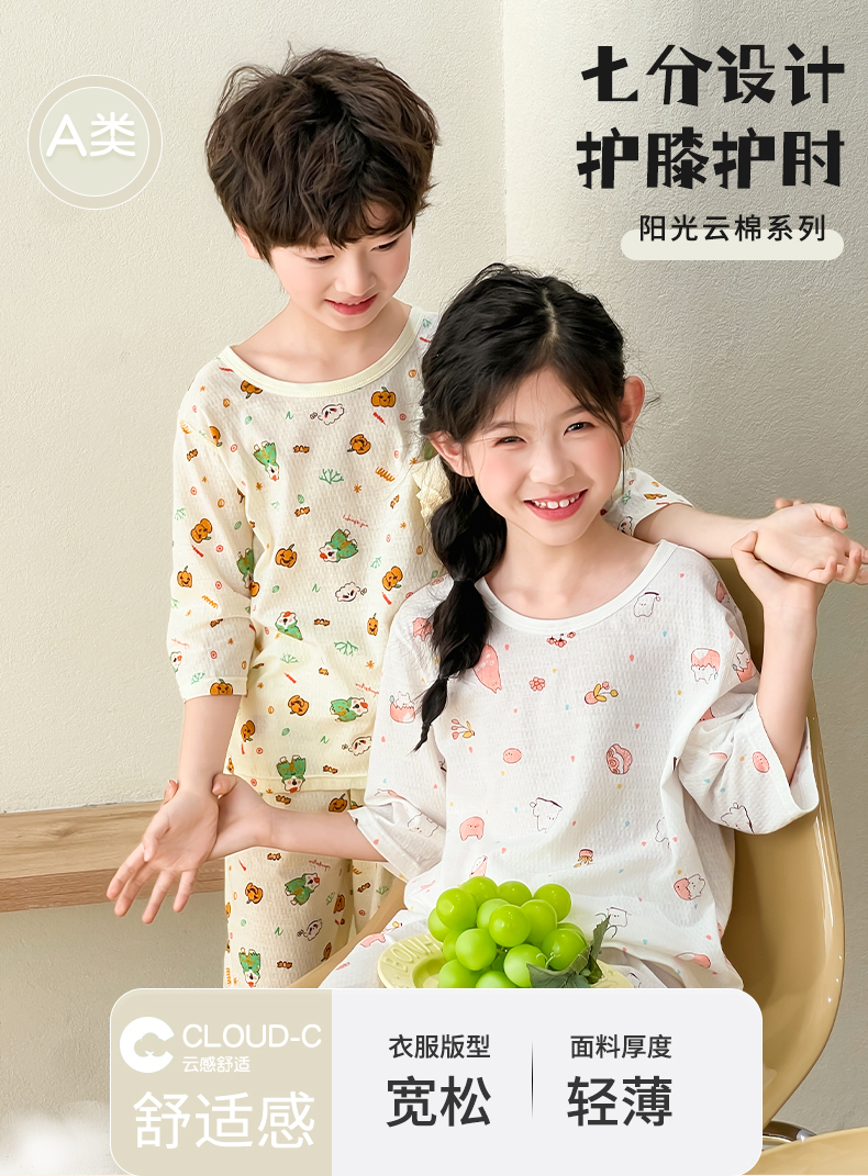 【商品名称】儿童A类纯棉七分袖家居服套装