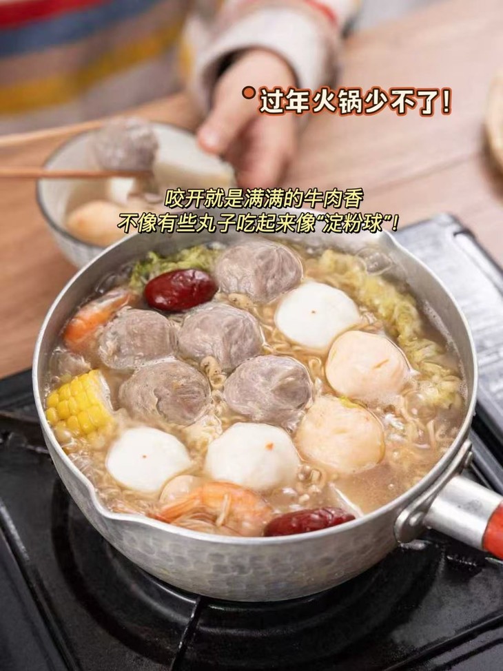 “咬开一颗潮汕牛肉丸,就像咬开了一整个新年的圆满——Q弹是祝福,爆汁是惊喜,90%的牛肉是我们对年味的实在承诺!”