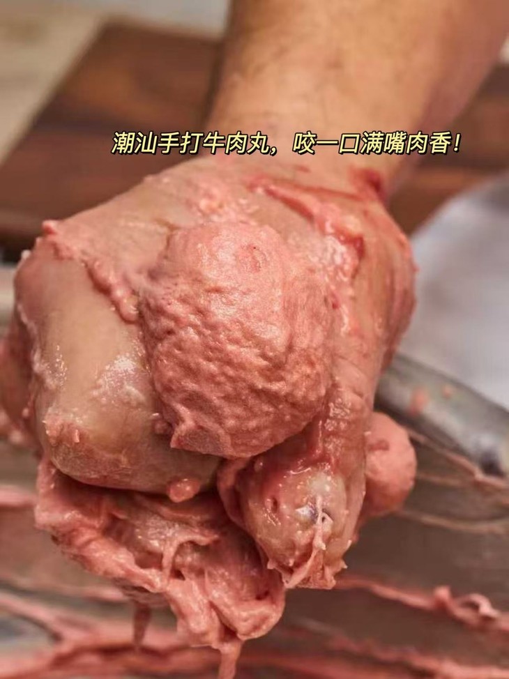 ✅ 非遗传统工艺:沿用潮汕百年捶打技艺,3000次人工捶打,让肉糜形成天然胶质,弹牙爆汁,Q弹不松散。