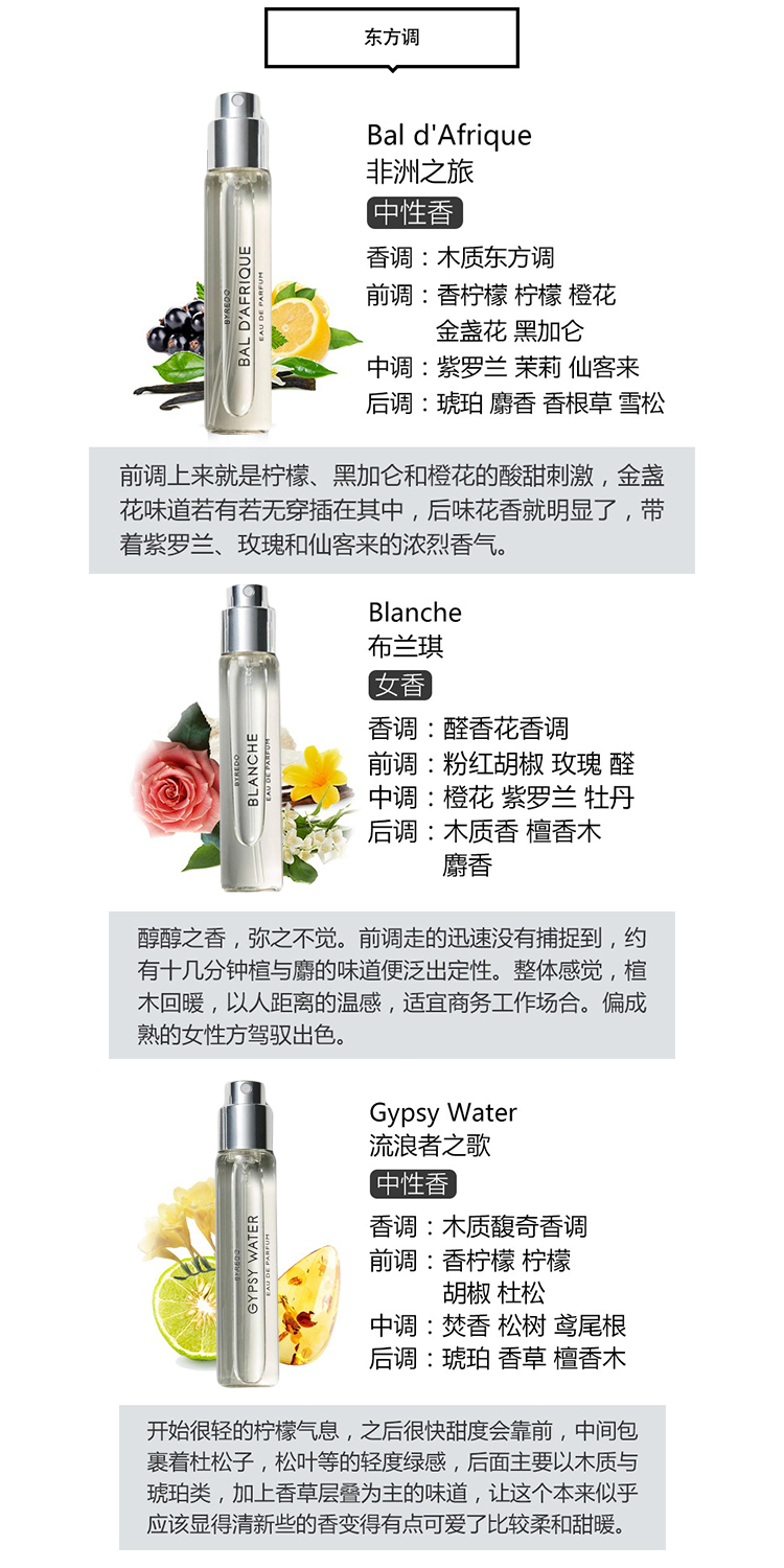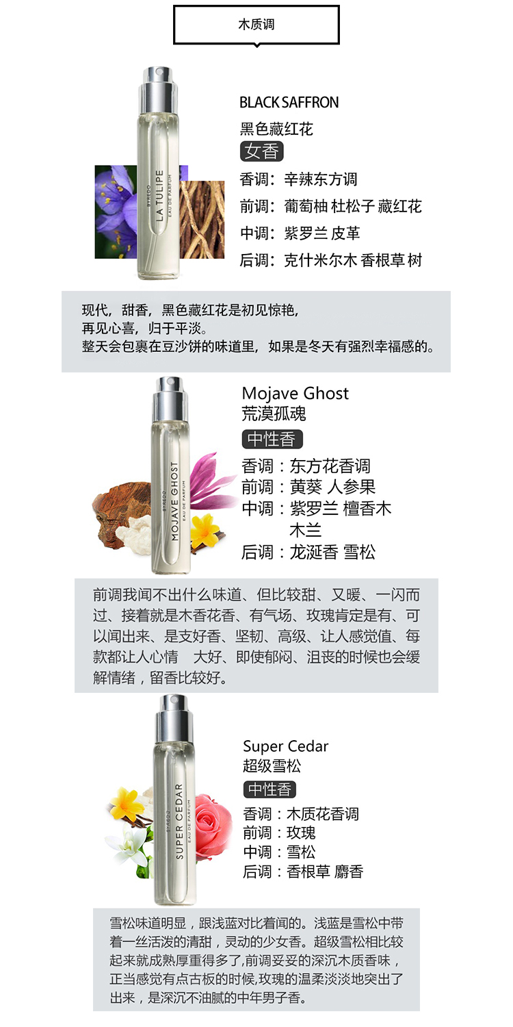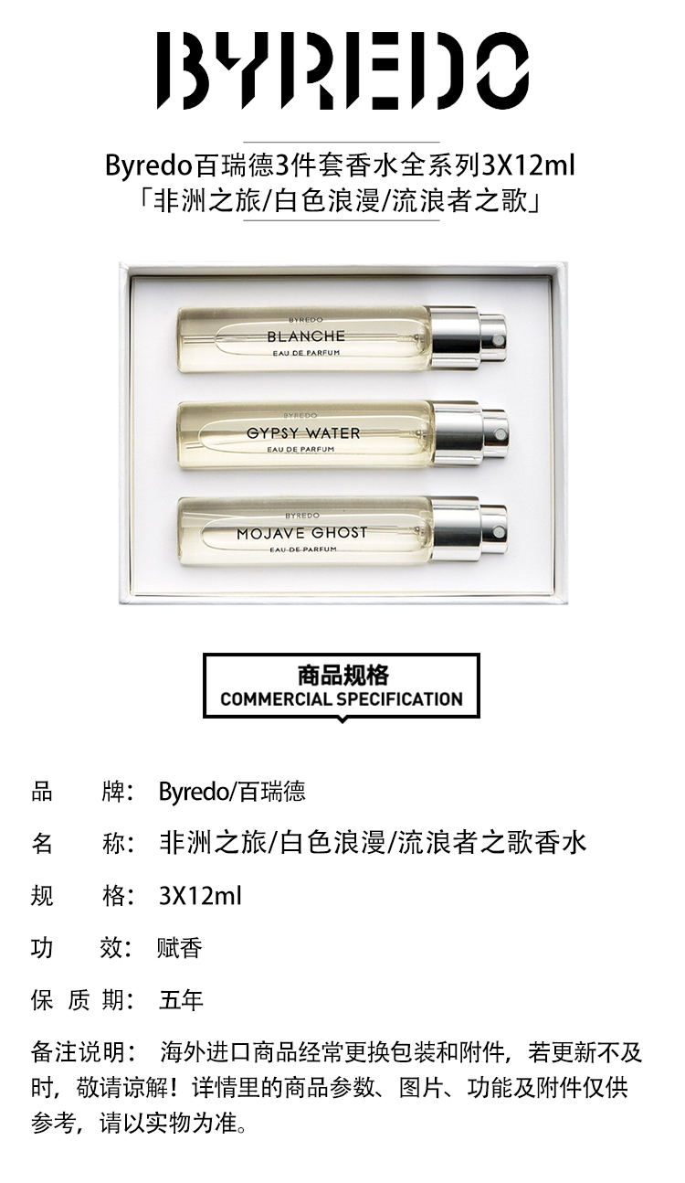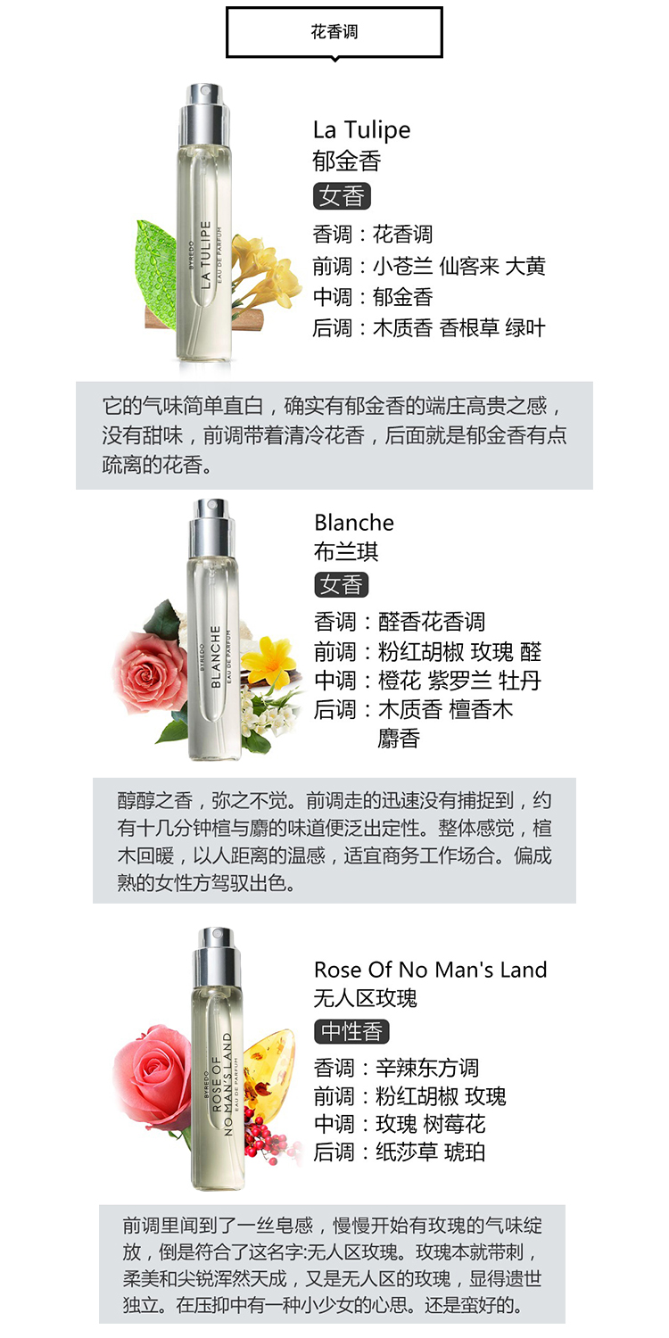 Byredo百瑞德香水套装3x12ml 花香组合 白色浪漫.郁金香.无人区玫瑰
