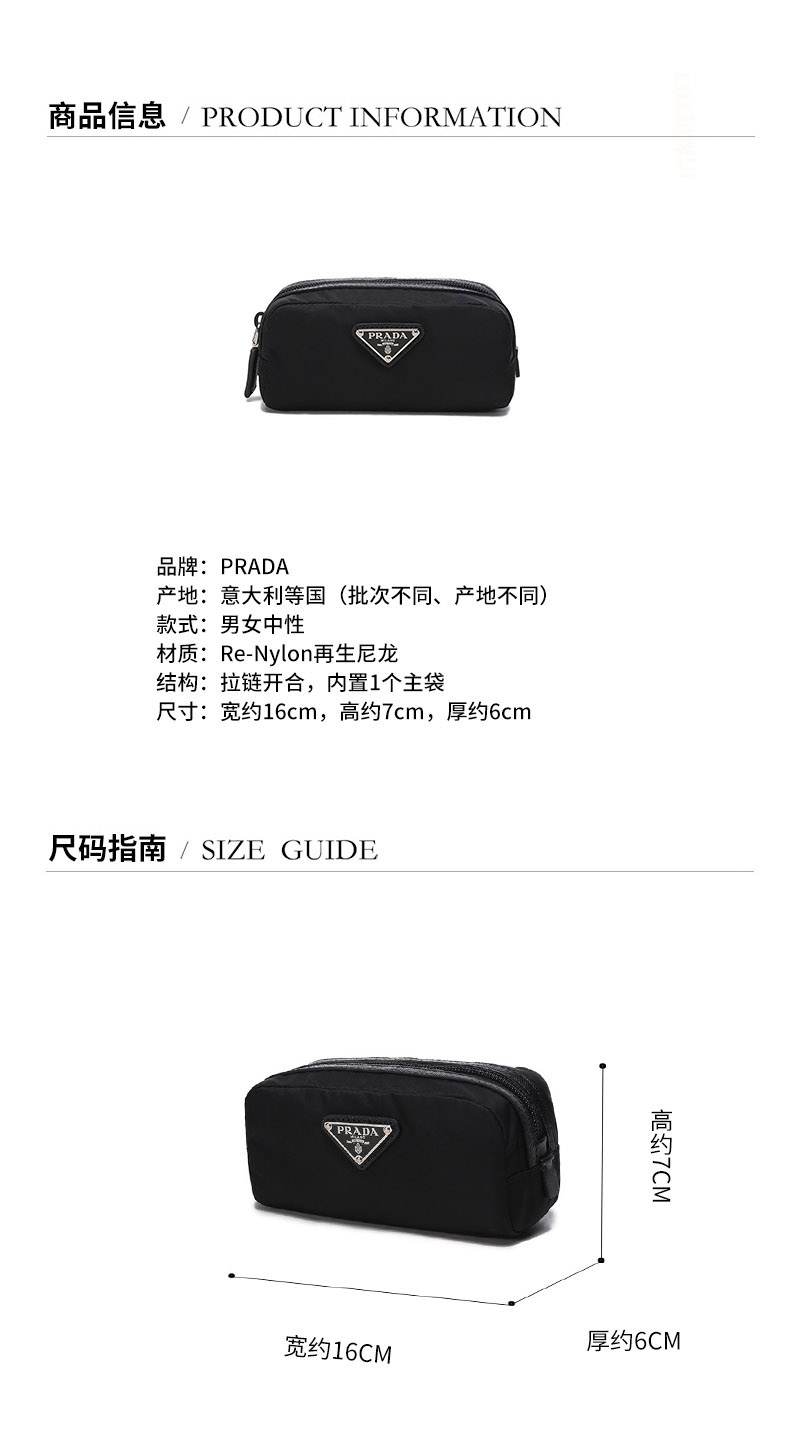 PRADA/普拉达【22春夏新款】 男女中性Re-Nylon再生尼龙手拿包洗漱包化妆包 2NA046 2DMH