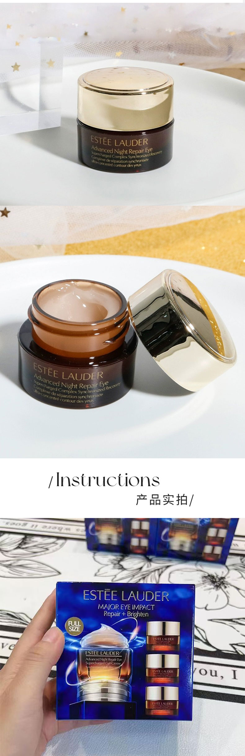 雅诗兰黛小棕瓶眼霜一拖三套盒 A-5772(眼霜15ml+眼霜5ml*3)效期28-7
