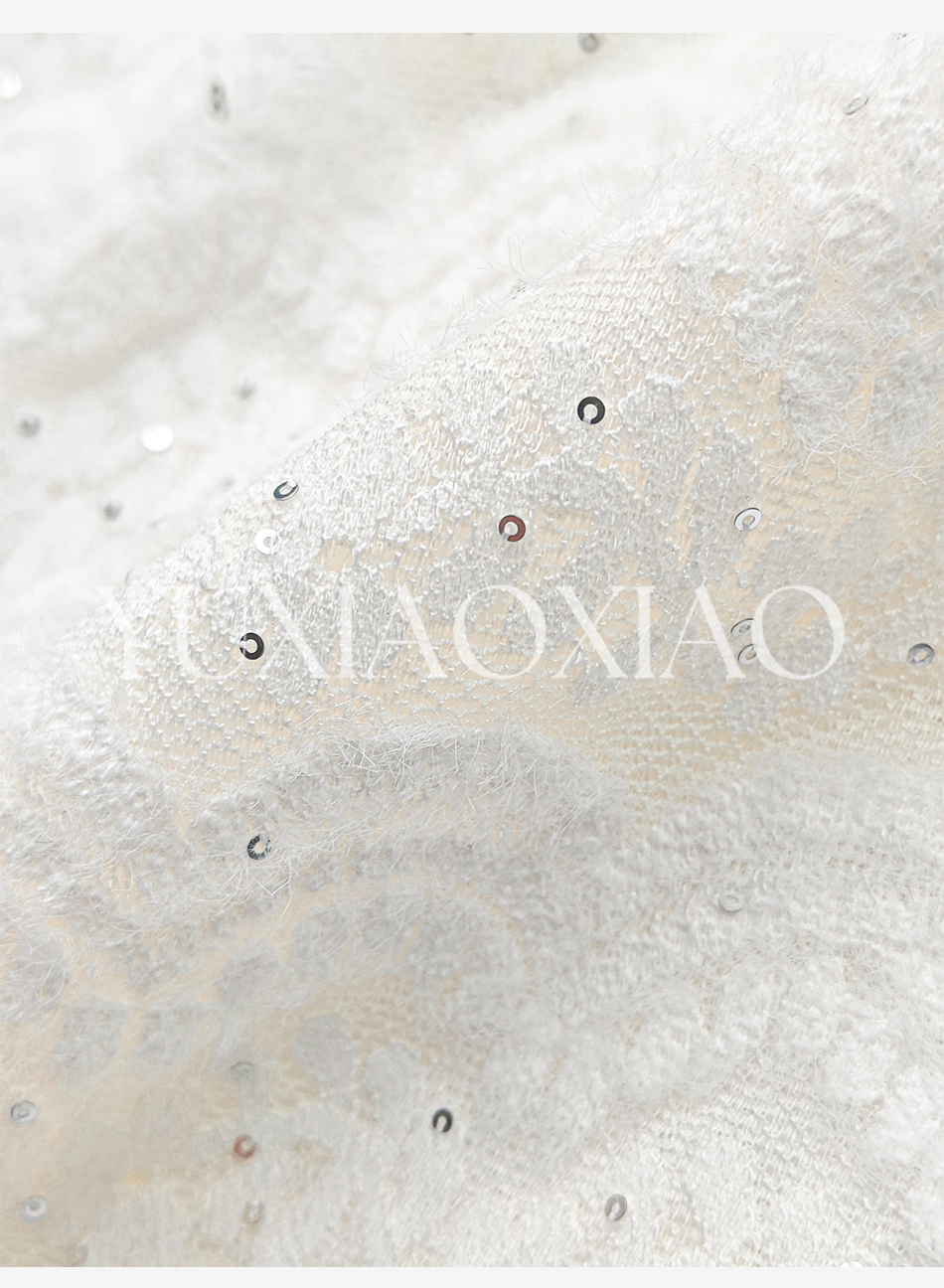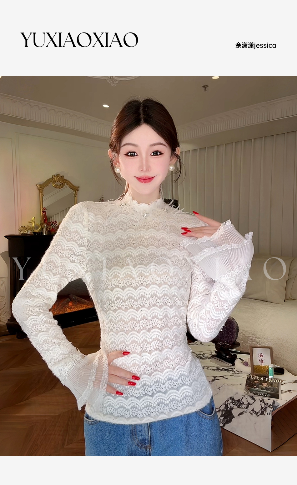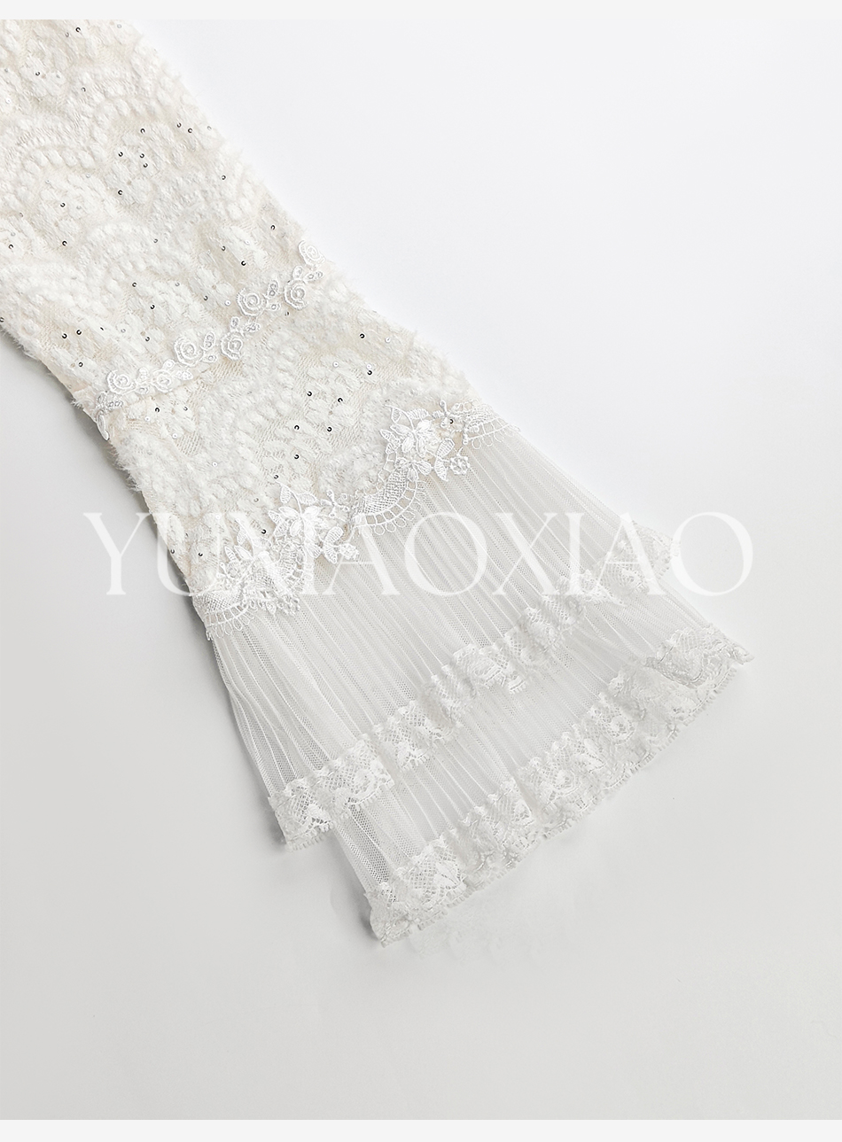 余潇潇【月神海浪】精致百搭高弹力拼接亮片立体花朵蕾丝打底上衣