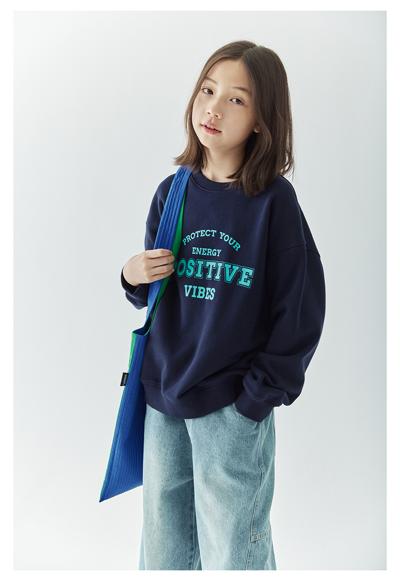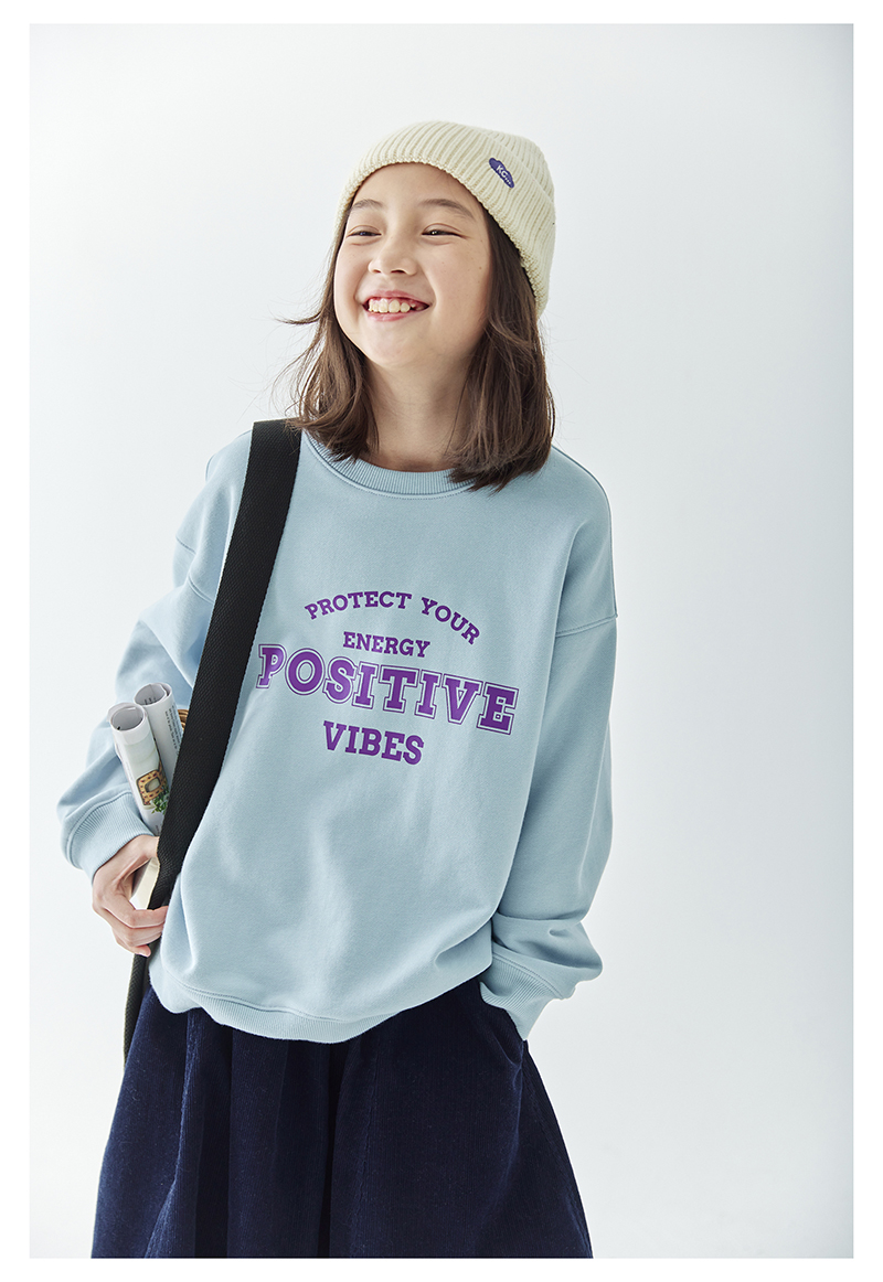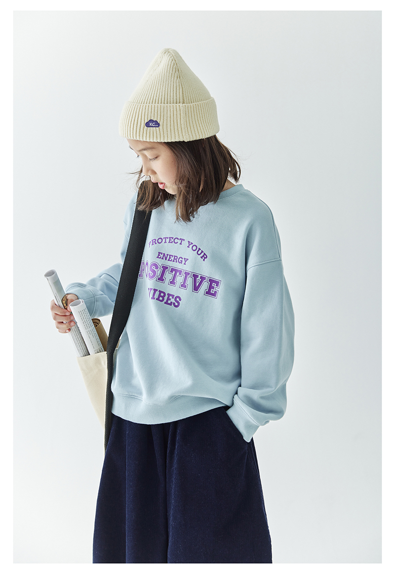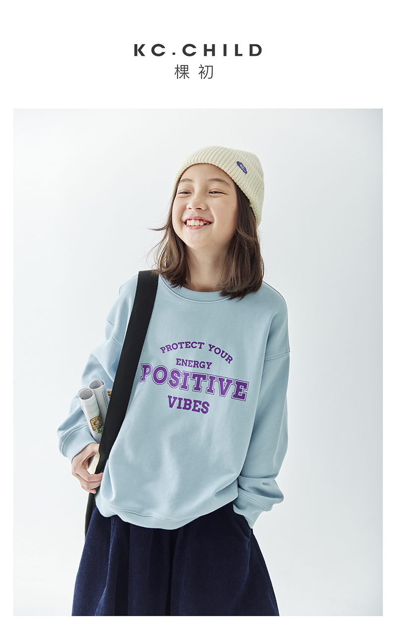 【代发】女款圆领印花卫衣 棵初童装春秋季童装圆领字母印花卫衣女童美式复古风简约百搭上衣