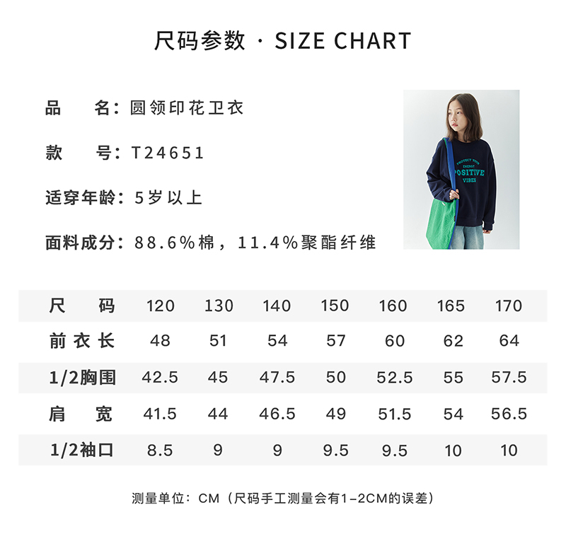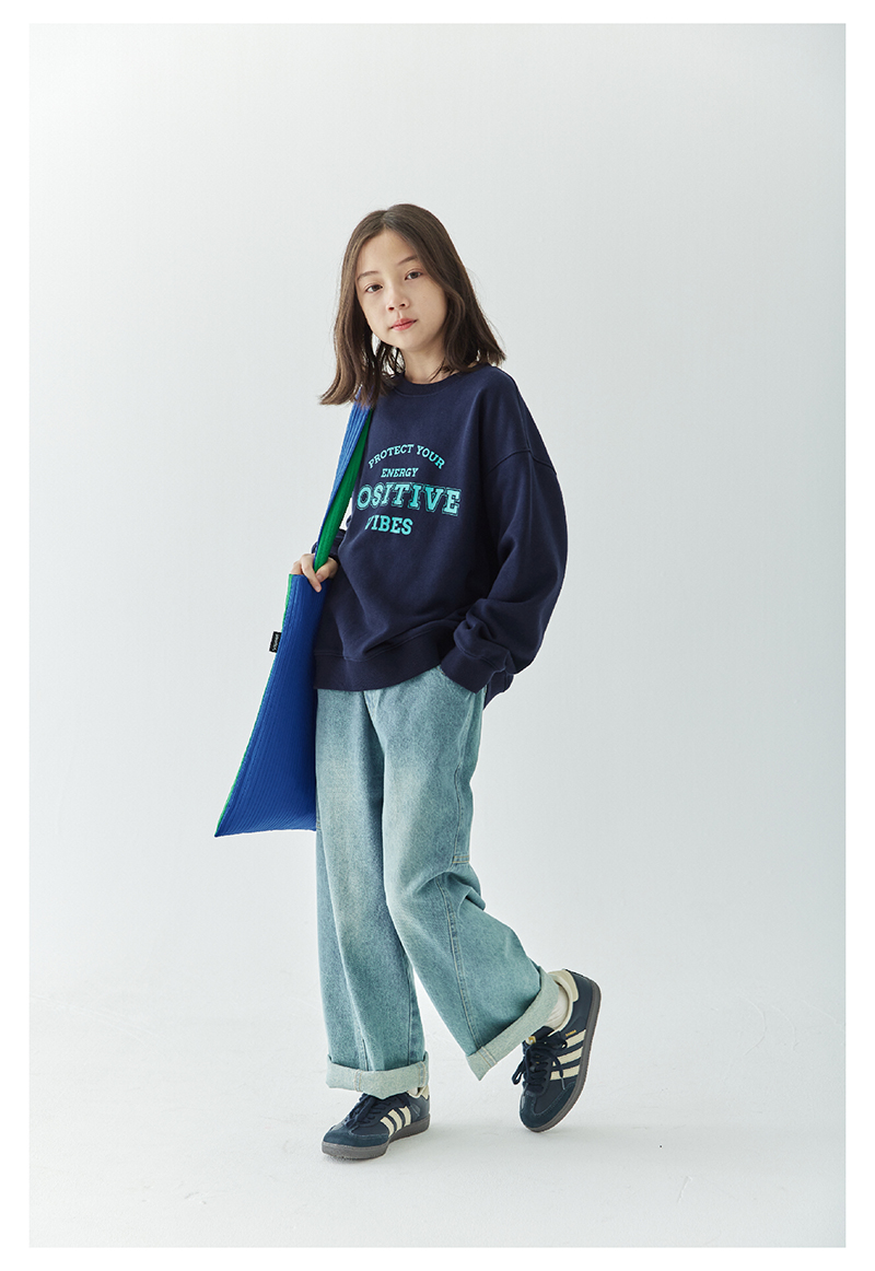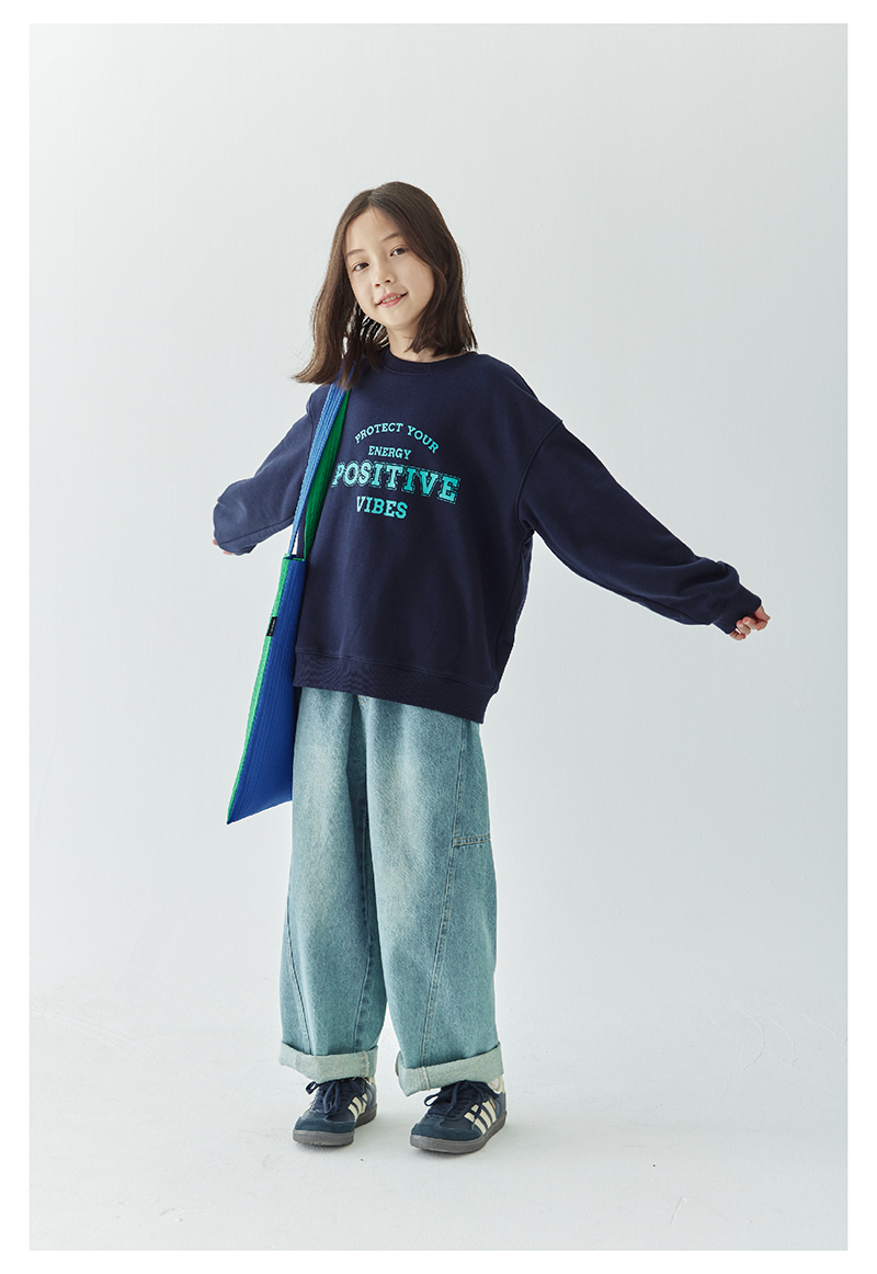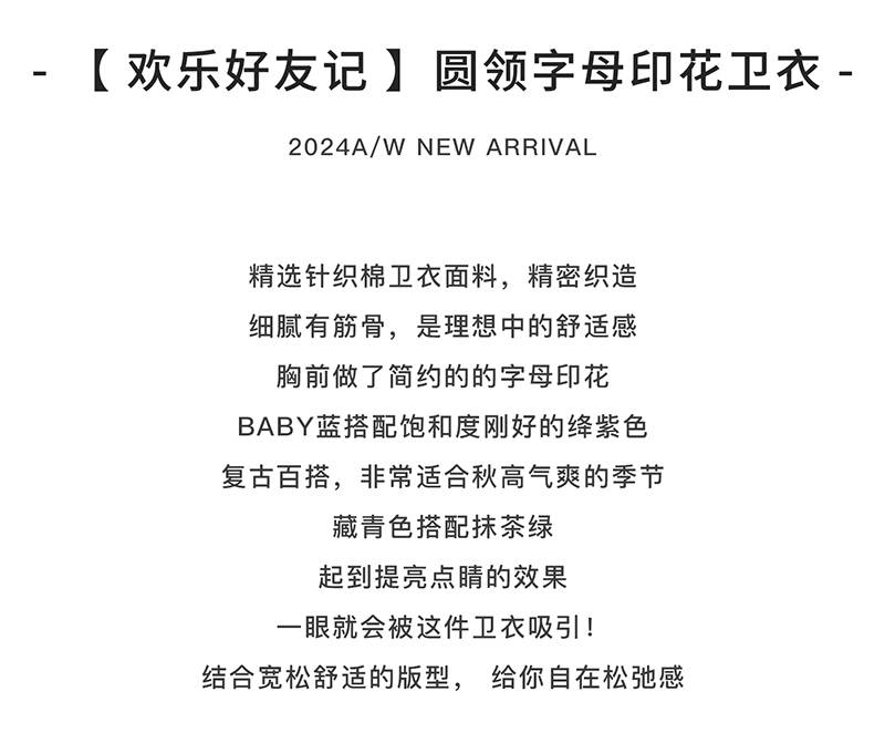 【代发】女款圆领印花卫衣 棵初童装春秋季童装圆领字母印花卫衣女童美式复古风简约百搭上衣