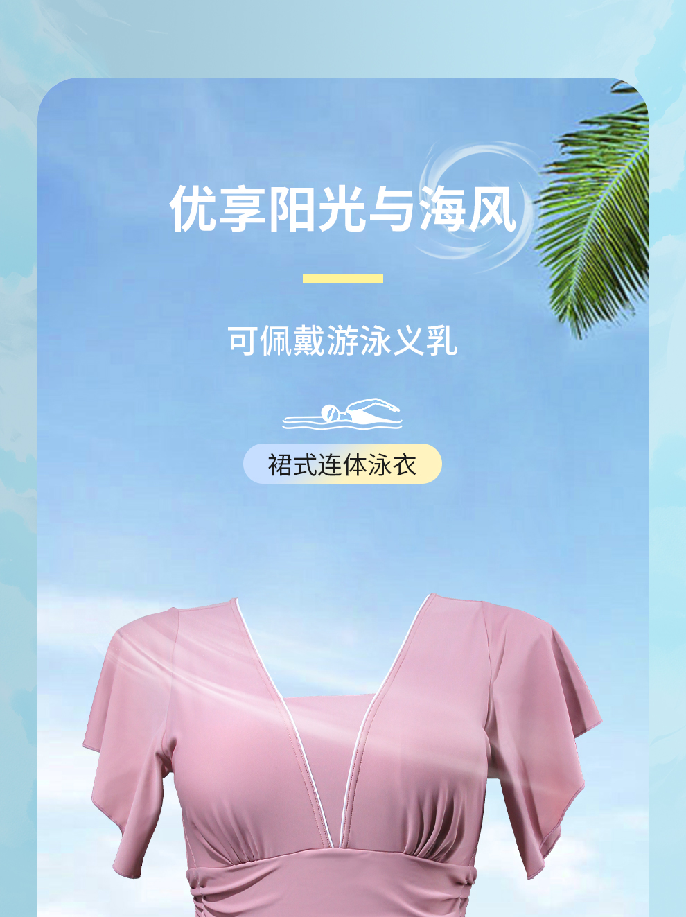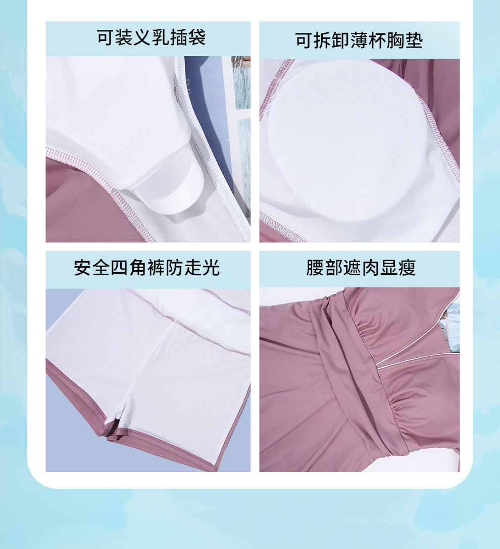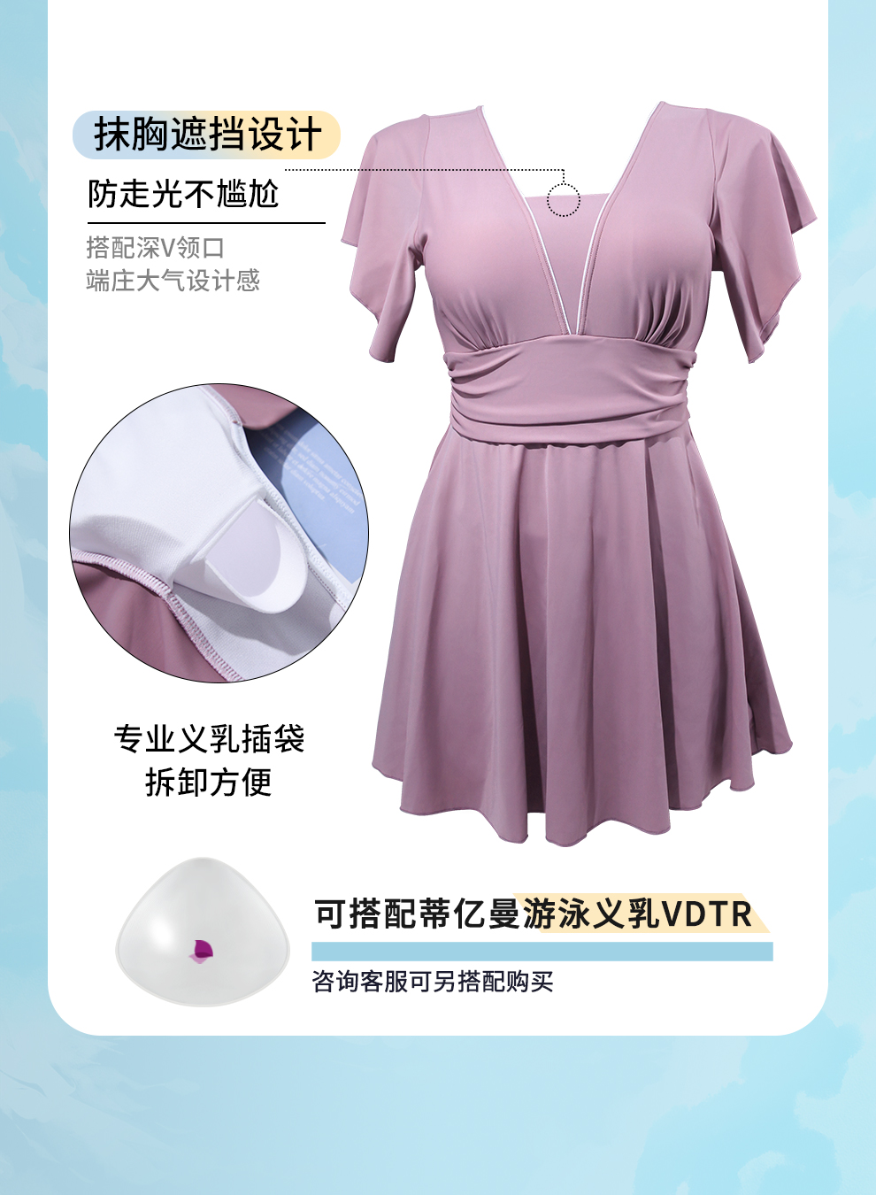 【若初】蒂亿曼义乳泳衣修身游泳温泉专用 假乳假胸连体裙式无钢圈泳衣