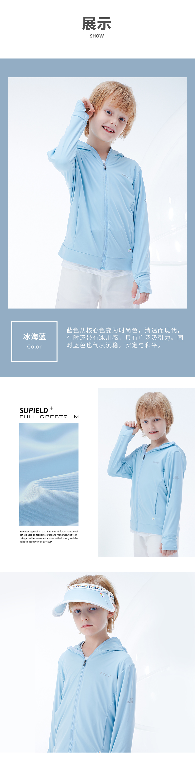Supield素湃黑科技全波段防紫外线儿童皮肤衣童装防晒服夏季薄款