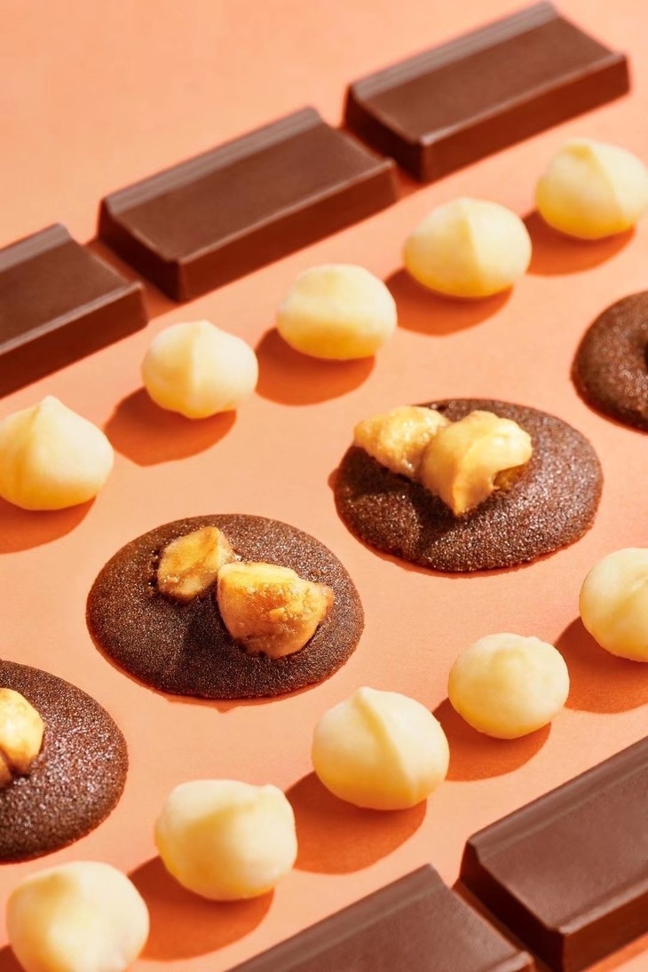 小麦粉、白砂糖、海盐、鸡蛋、无盐黄油、夏威夷果、100%法芙娜可可粉