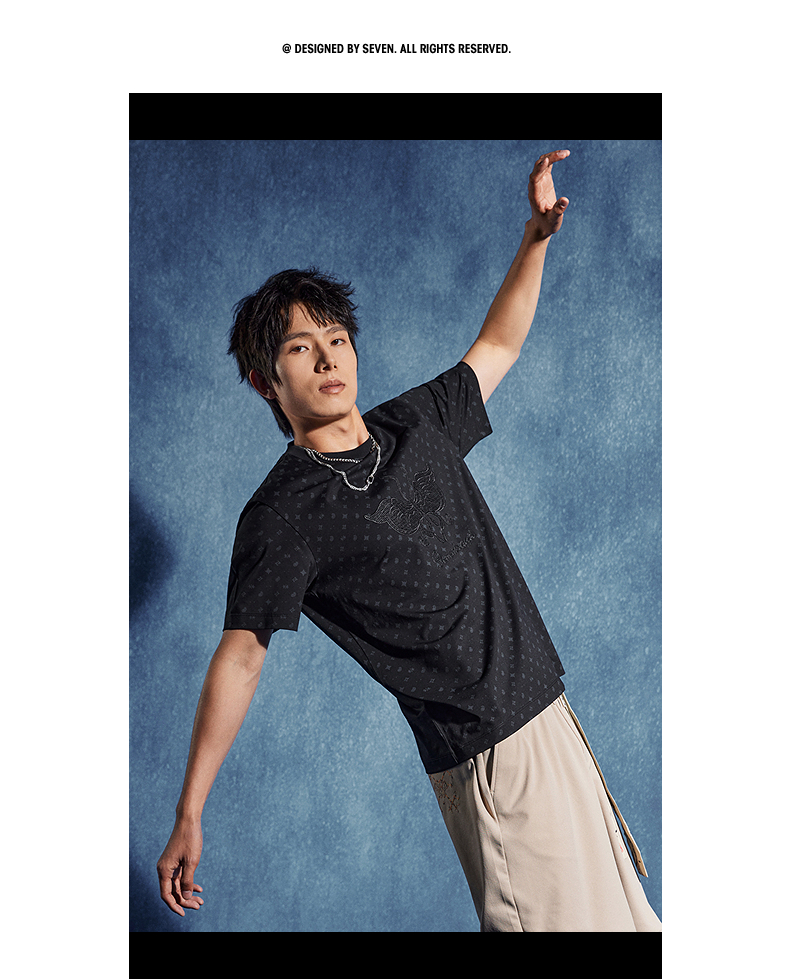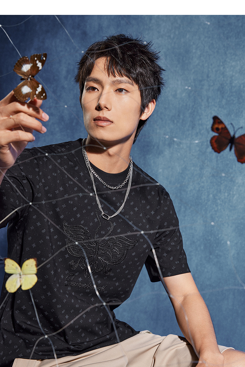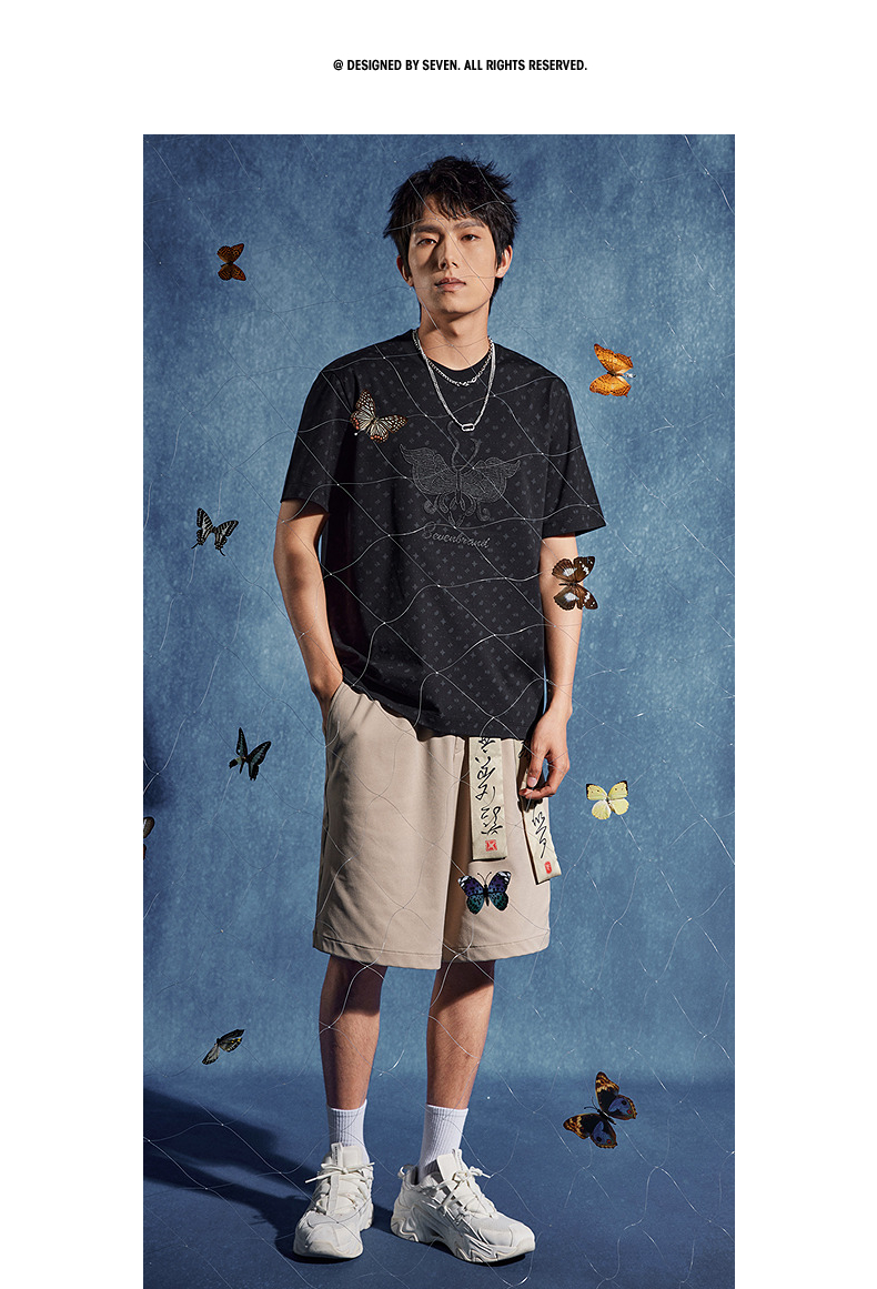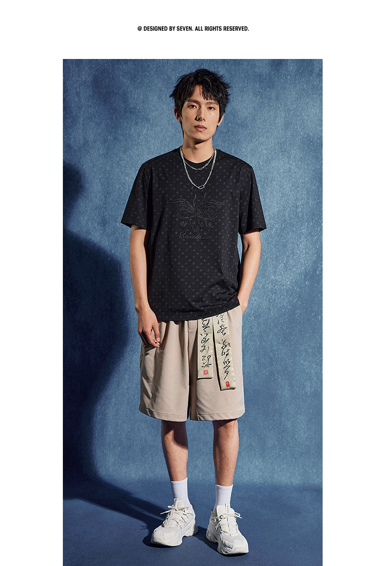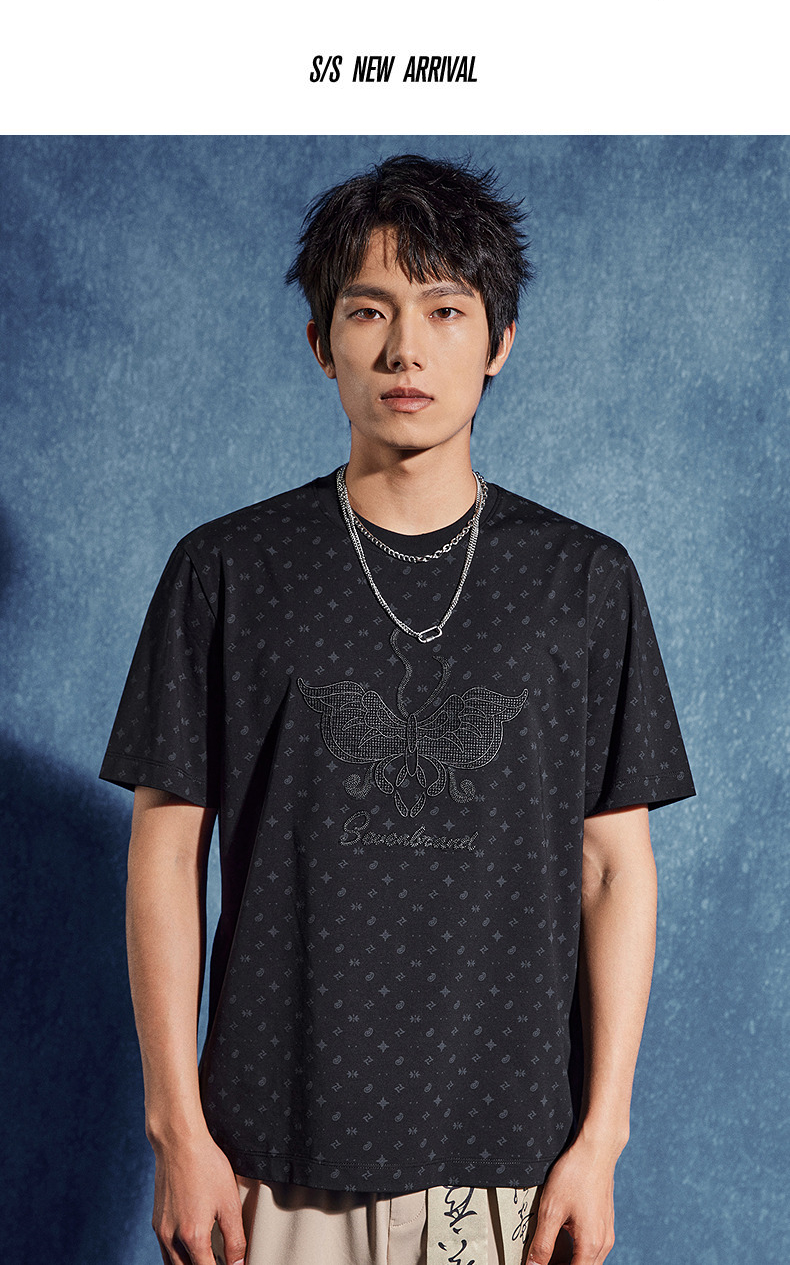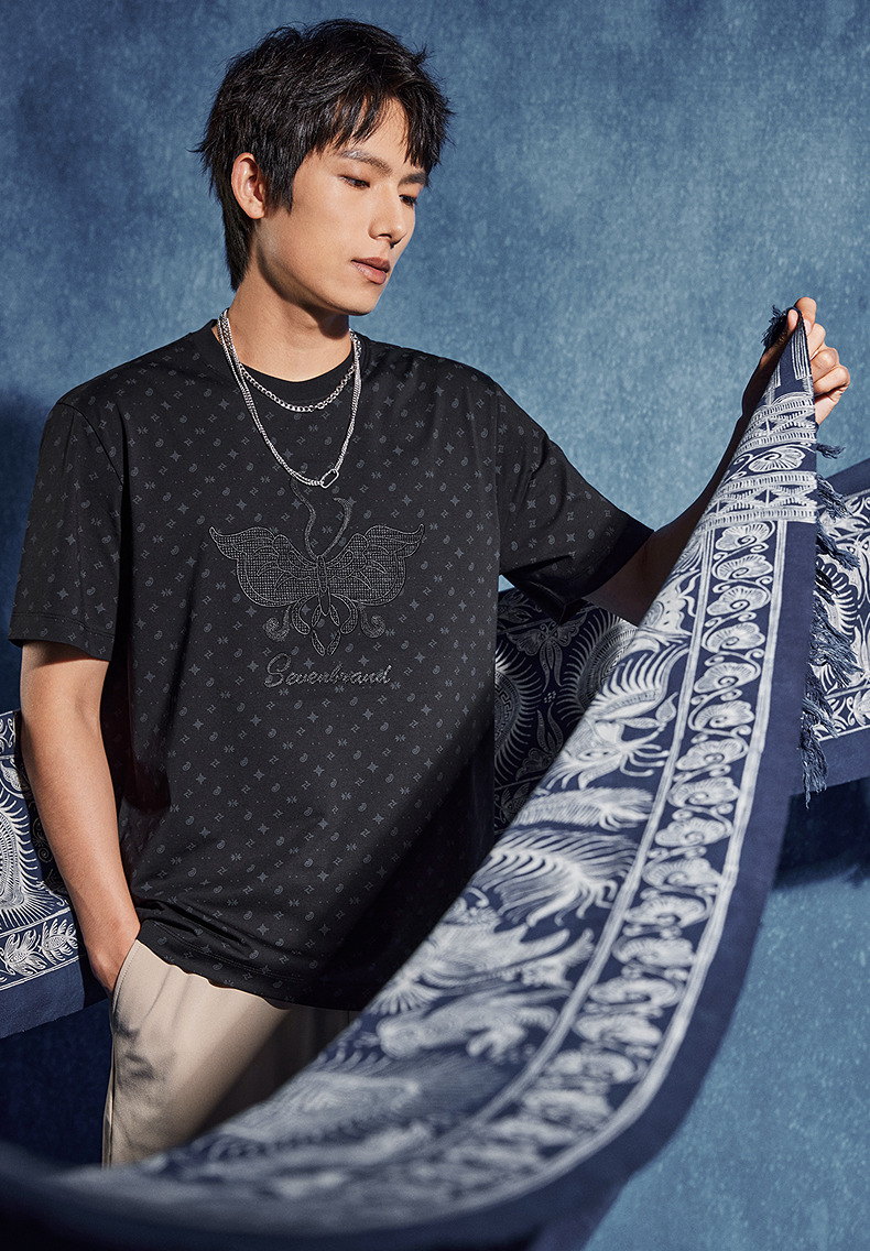 【非遗苗绣蝴蝶妈妈系列】柒牌短袖T恤男夏季新款时尚满印体恤衫 126T72790