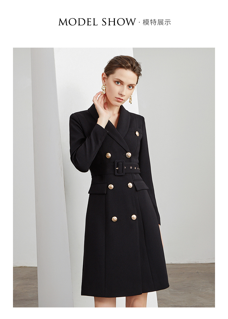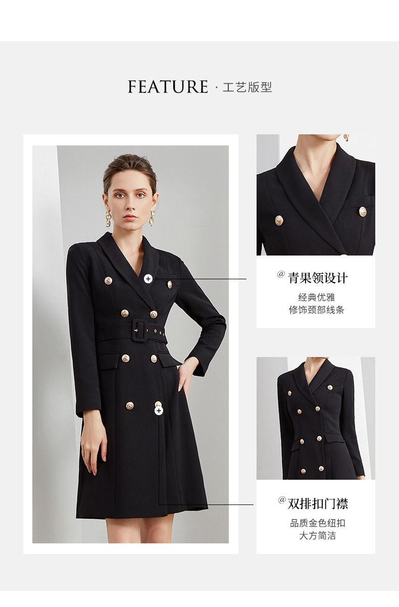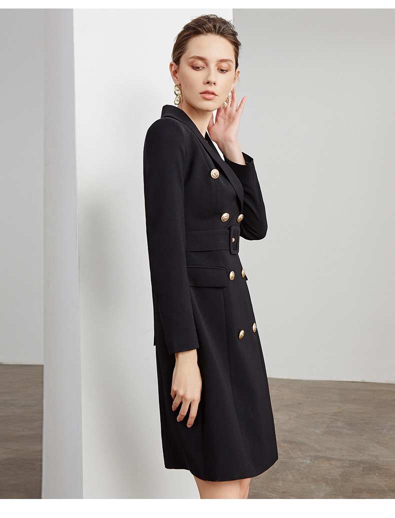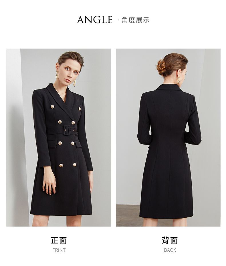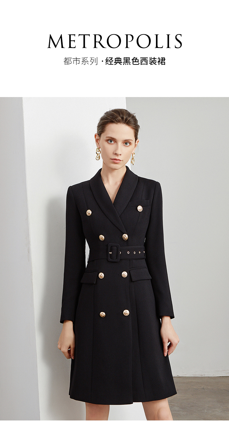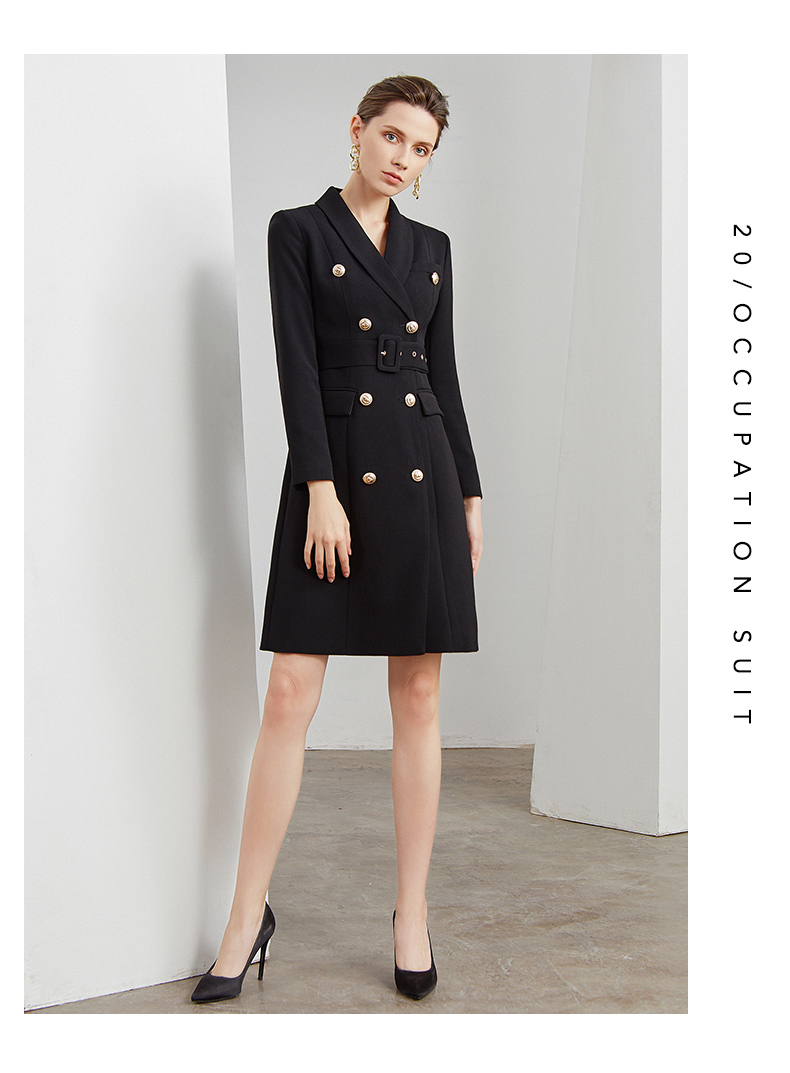 IWY/商务通勤式黑色连衣裙女双排扣腰带收腰高端韩版OL职业装Q501