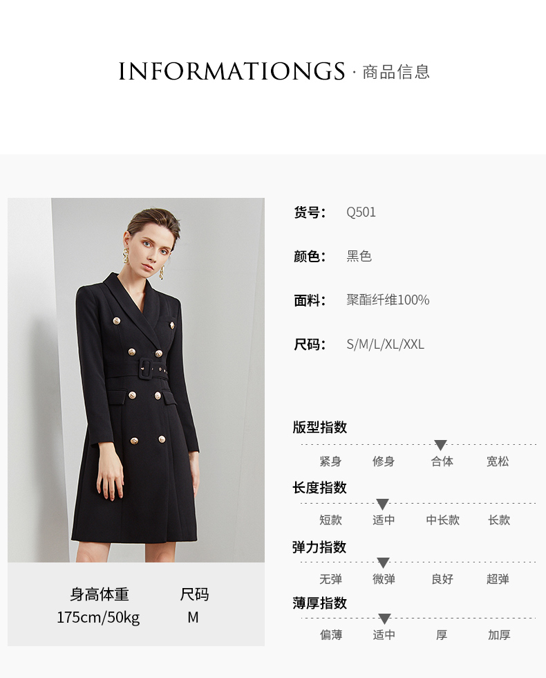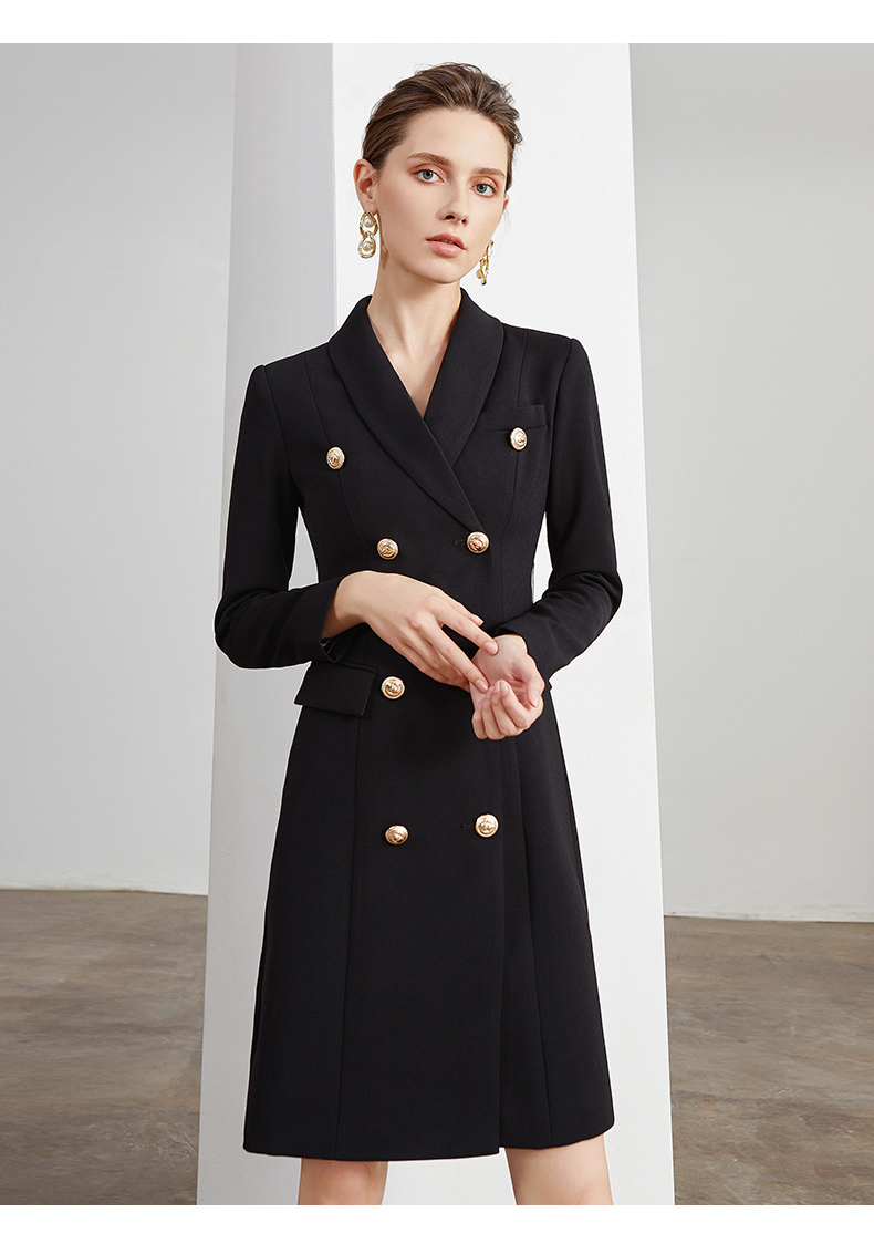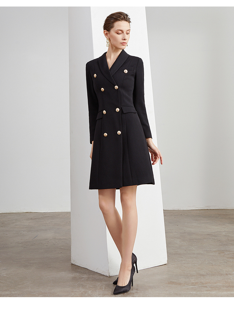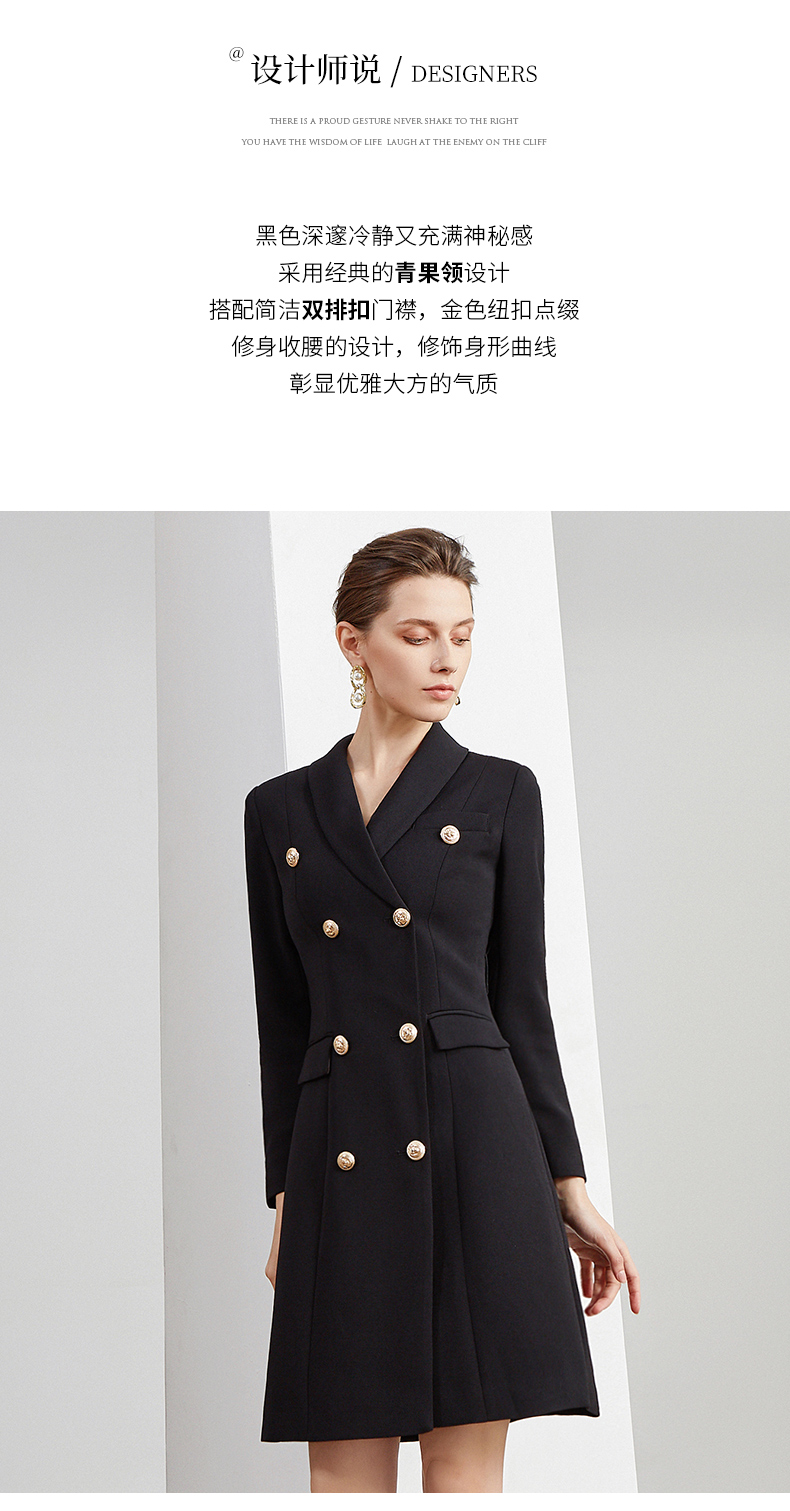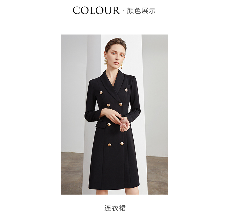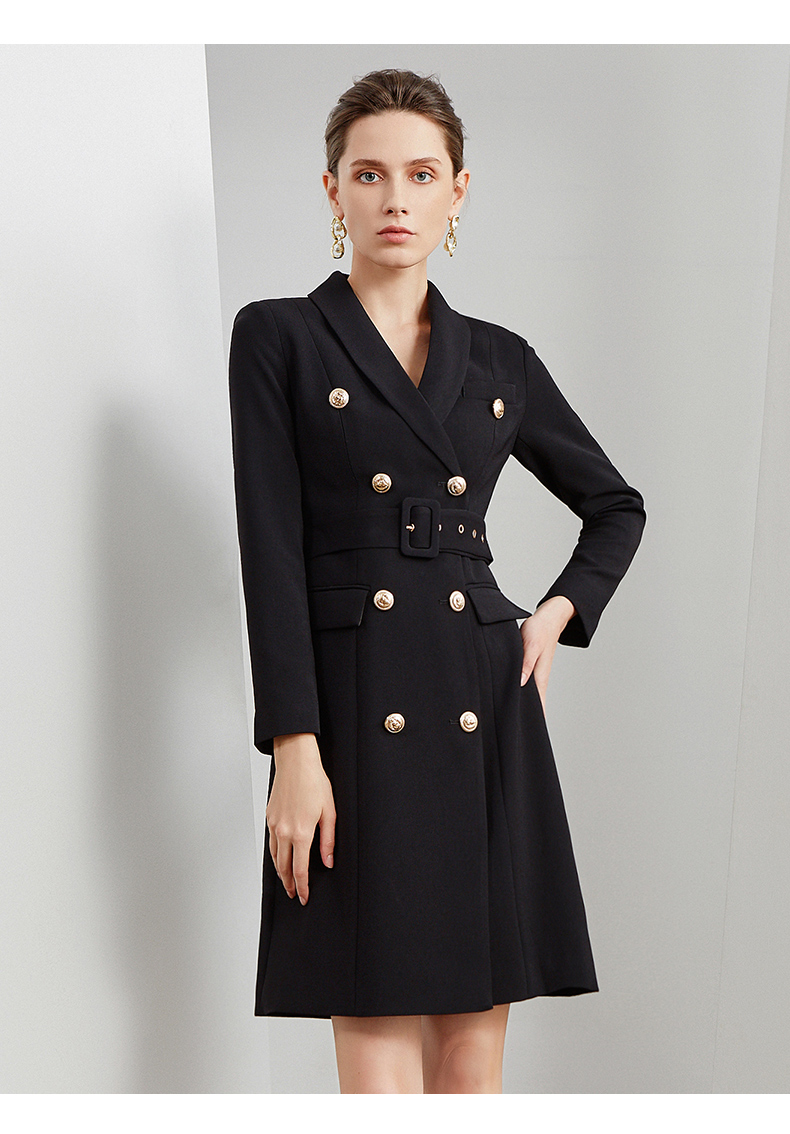 IWY/商务通勤式黑色连衣裙女双排扣腰带收腰高端韩版OL职业装Q501