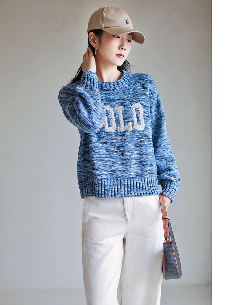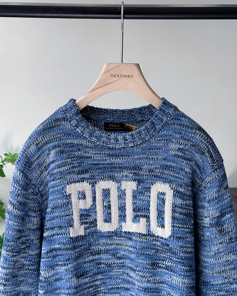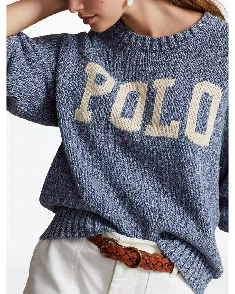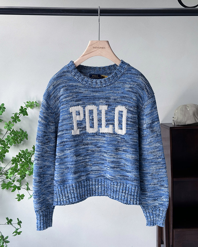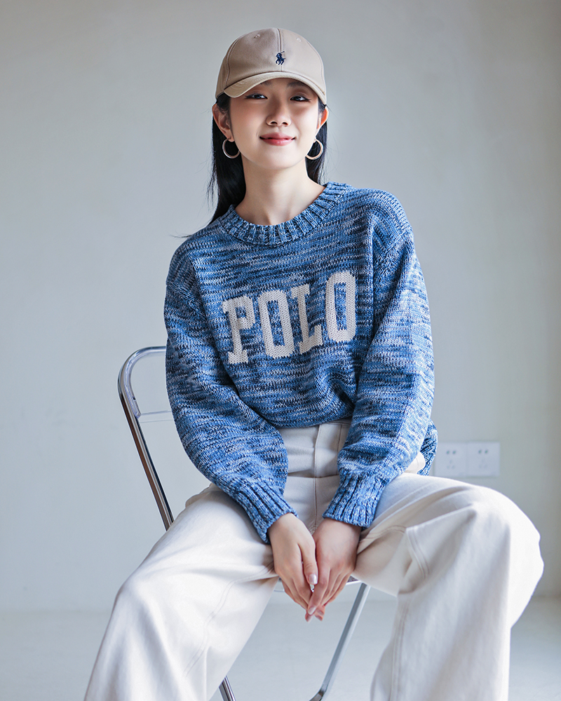 单品包邮现货 THS 9.21-无 RL家马球家 波斯宝石蓝PRL有机棉混纺花纱嵌花宽松针织衫 BM3172