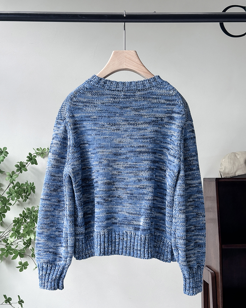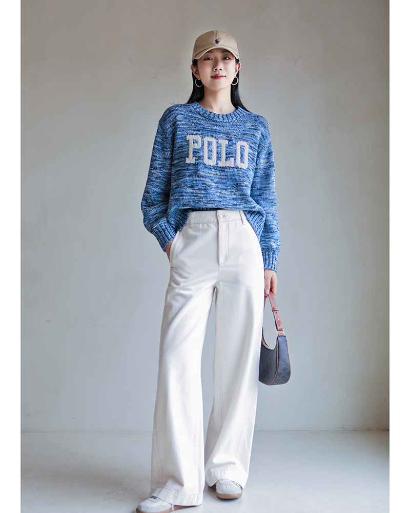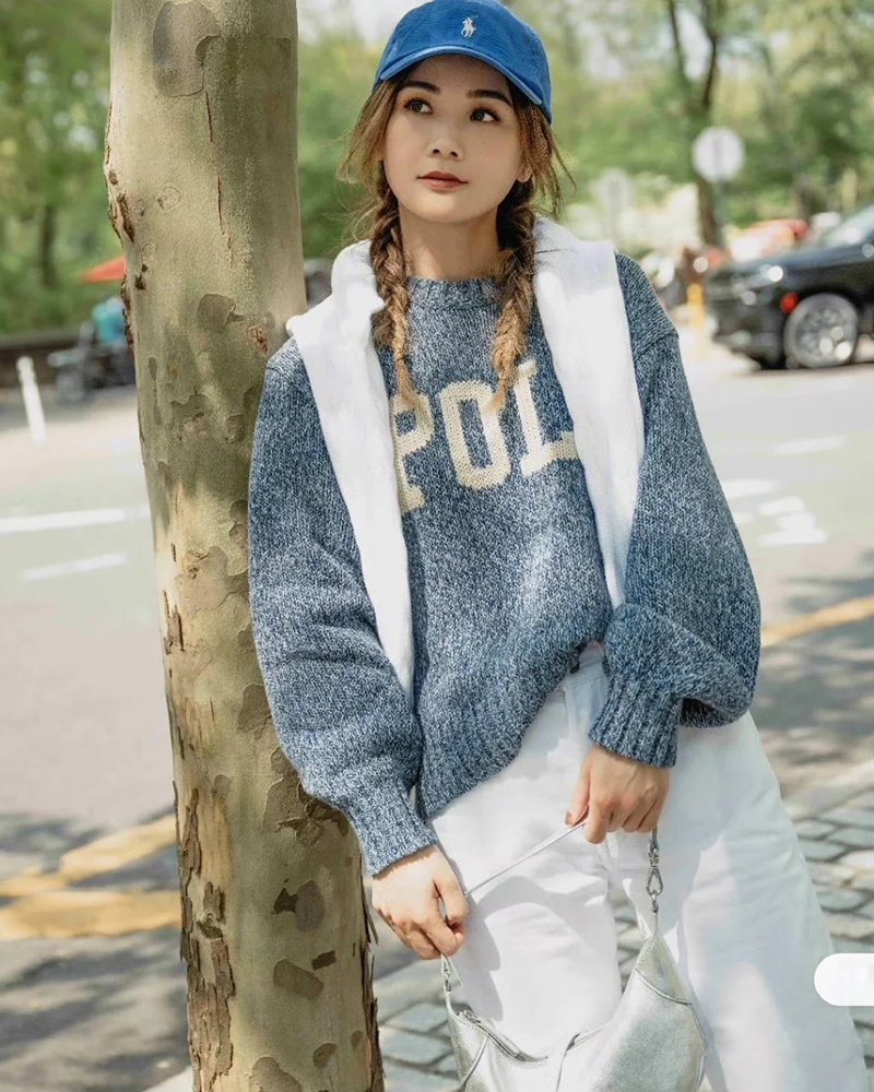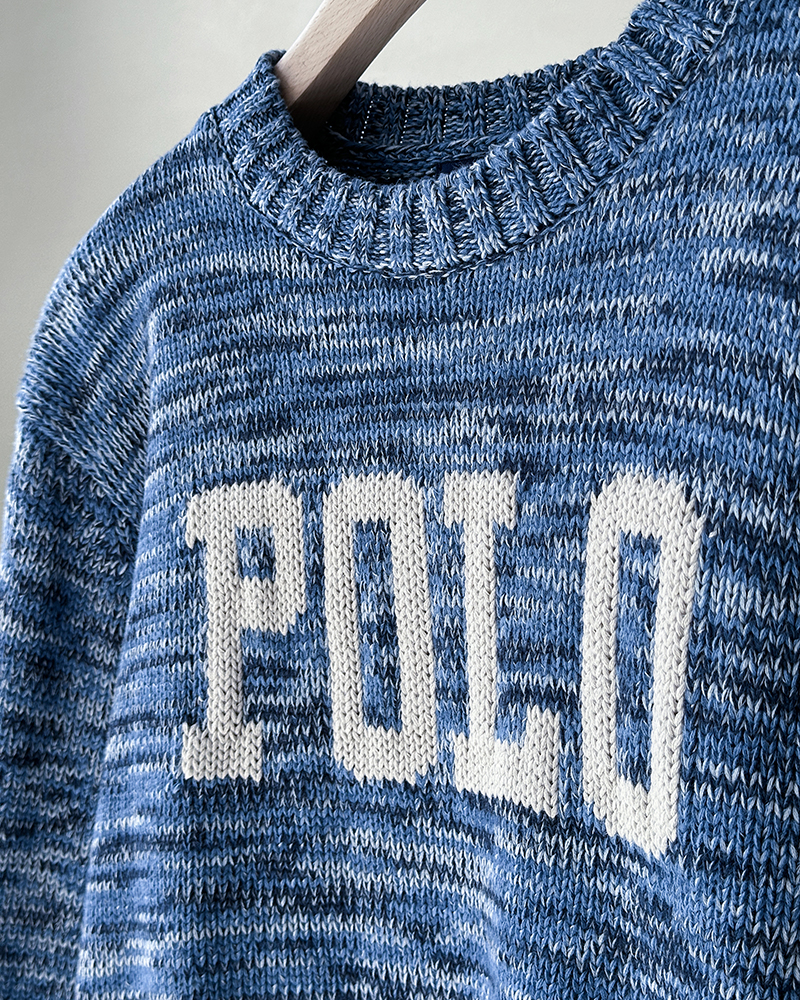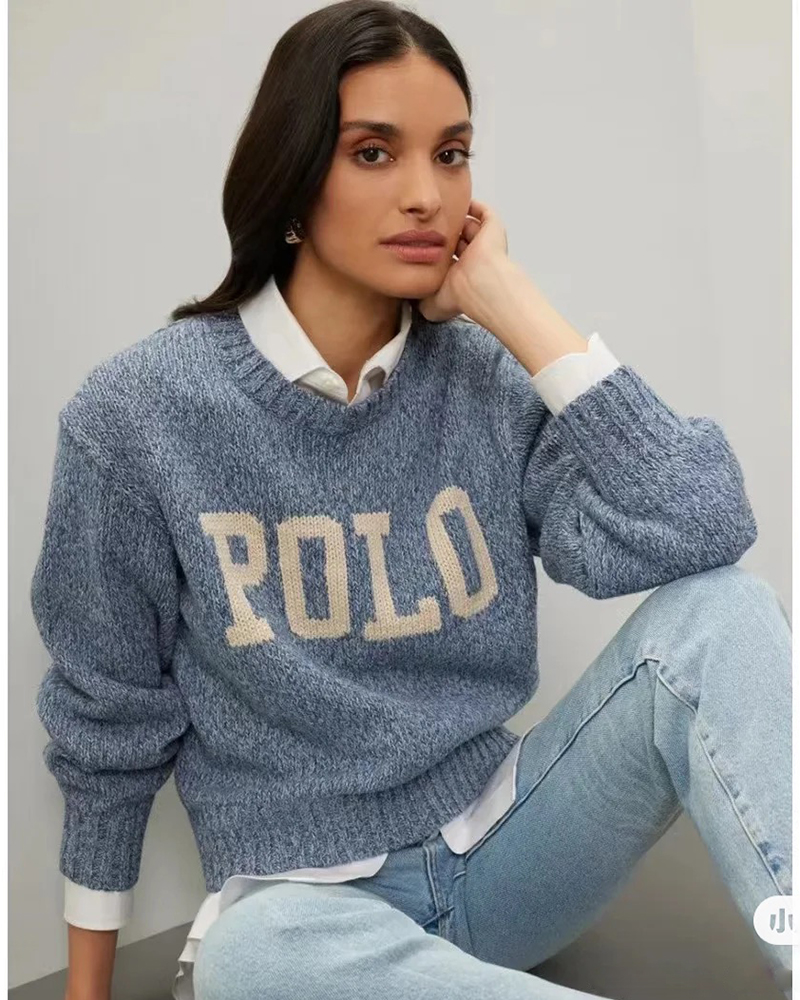 单品包邮现货 THS 9.21-无 RL家马球家 波斯宝石蓝PRL有机棉混纺花纱嵌花宽松针织衫 BM3172