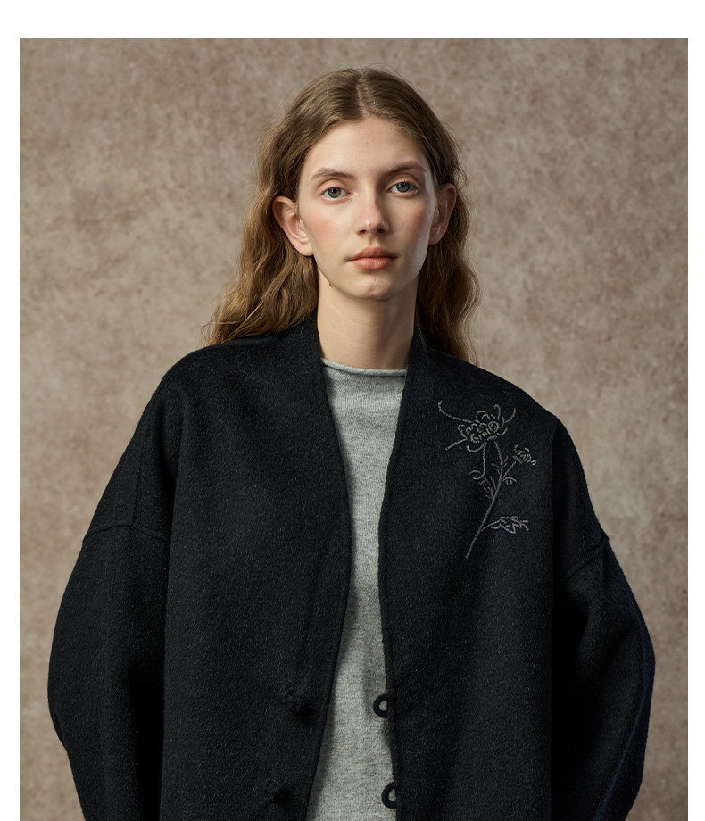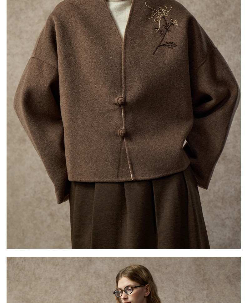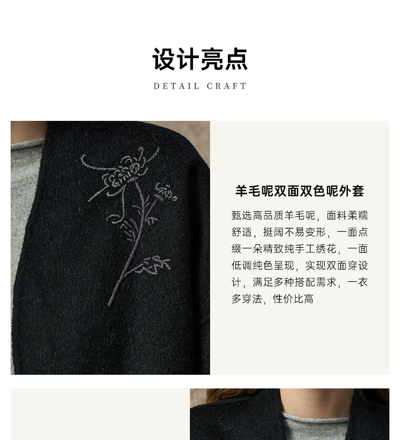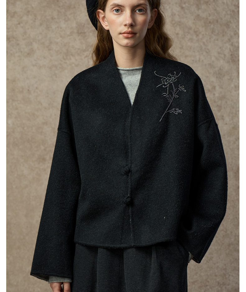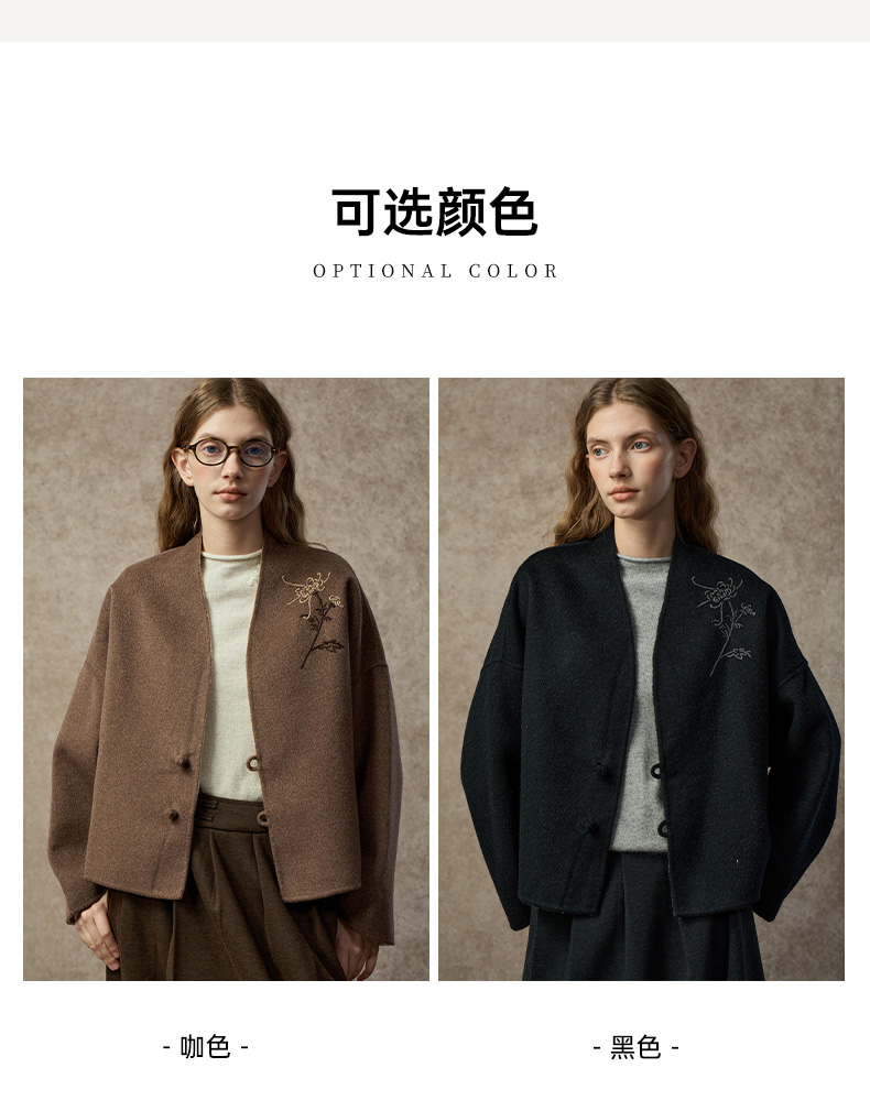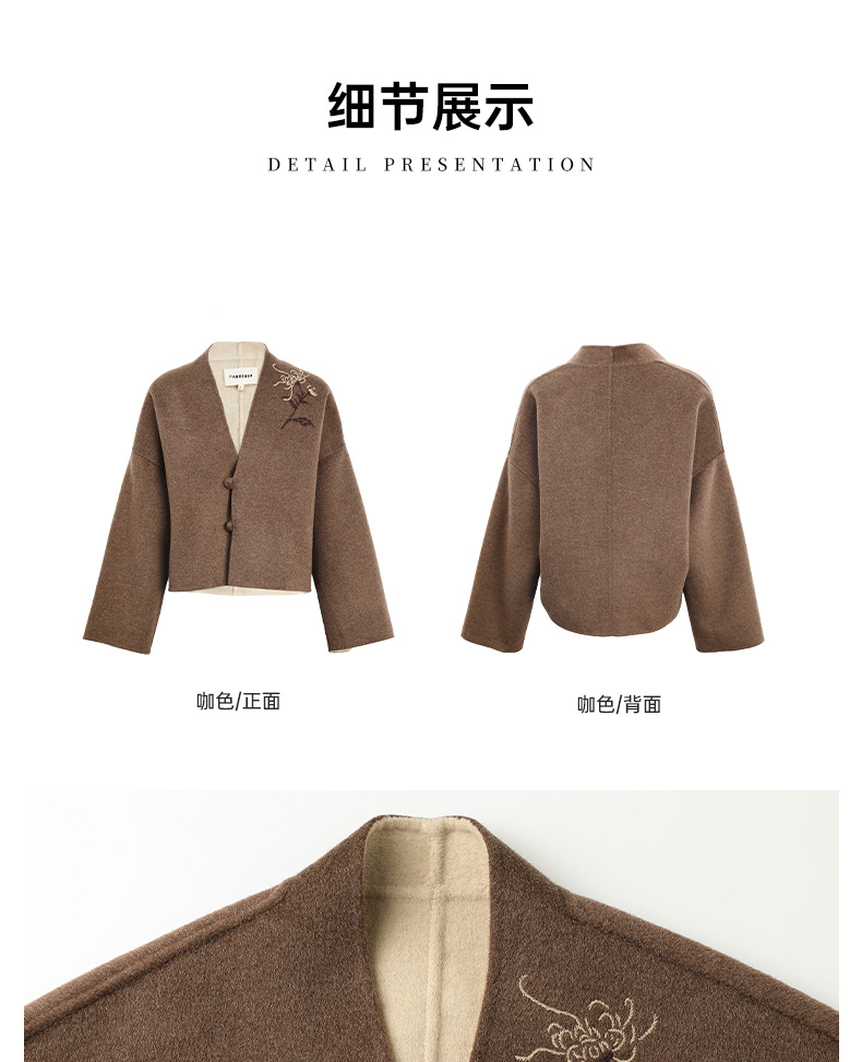 Famecoco范可儿中式刺绣双面毛呢短外套两面穿FAC8AS001