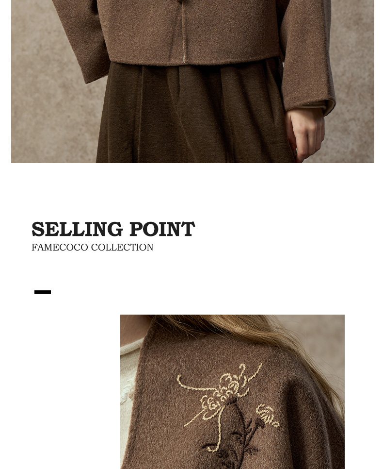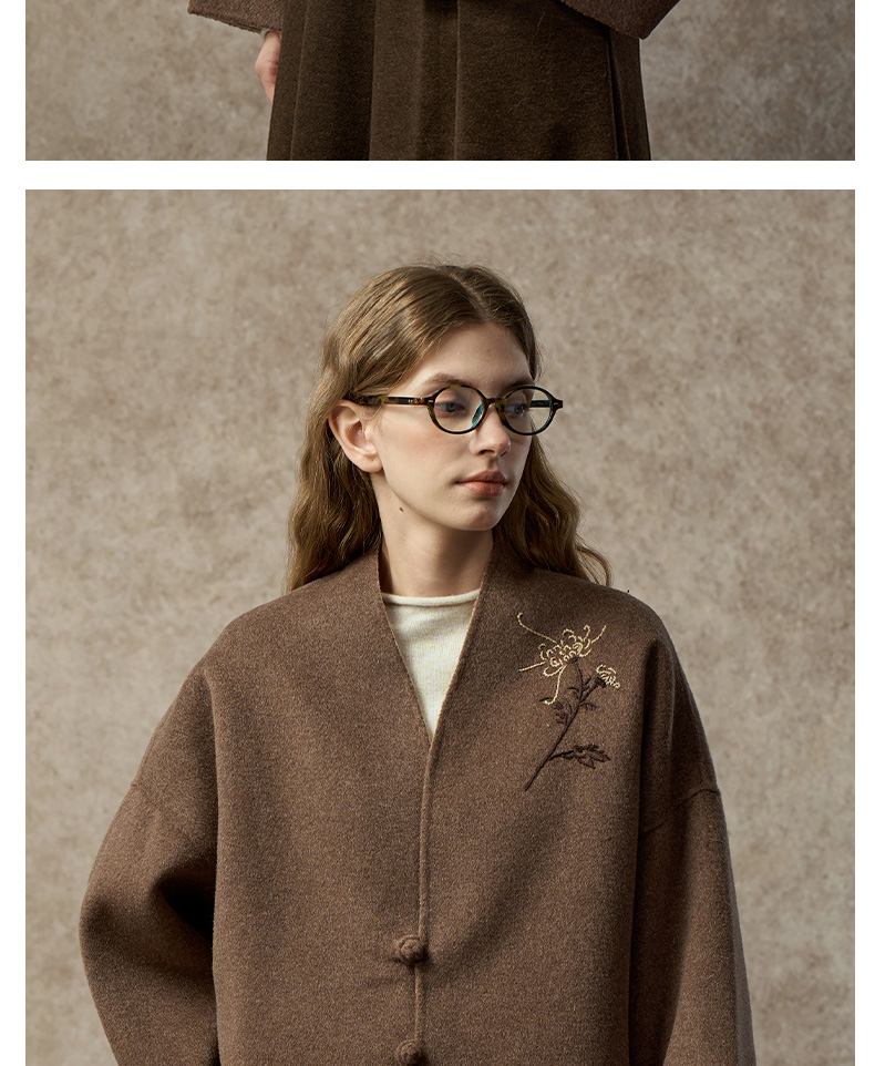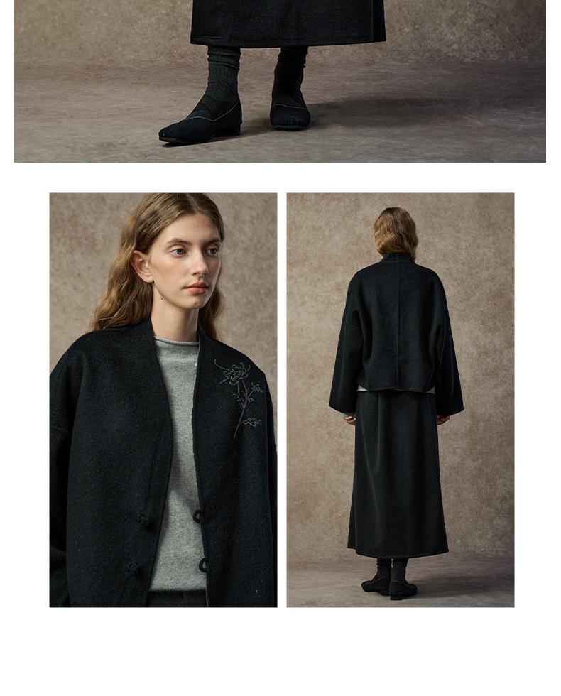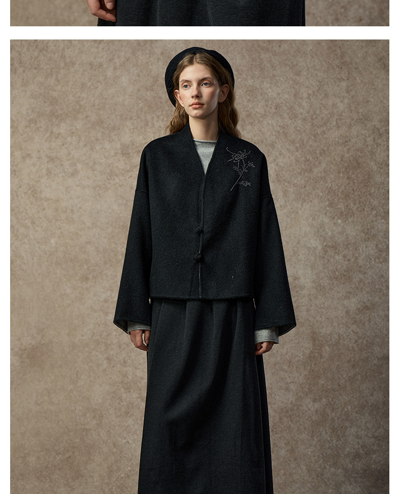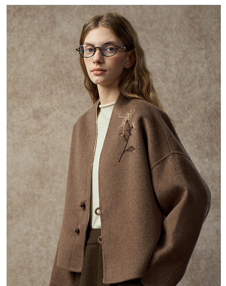Famecoco范可儿中式刺绣双面毛呢短外套两面穿FAC8AS001