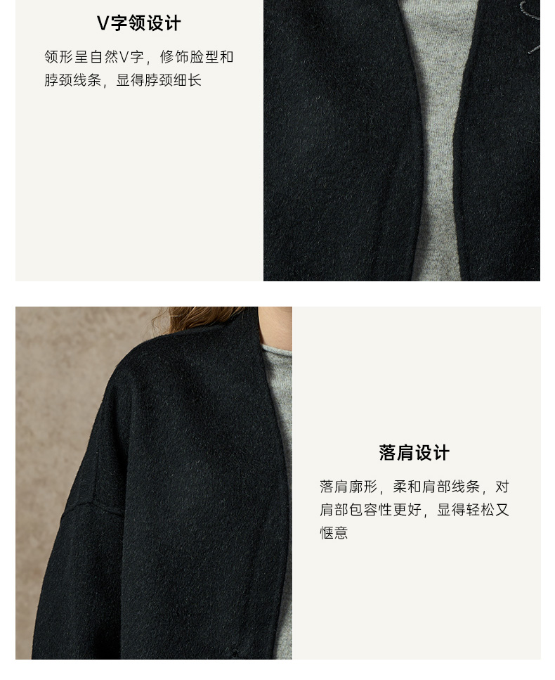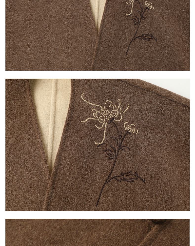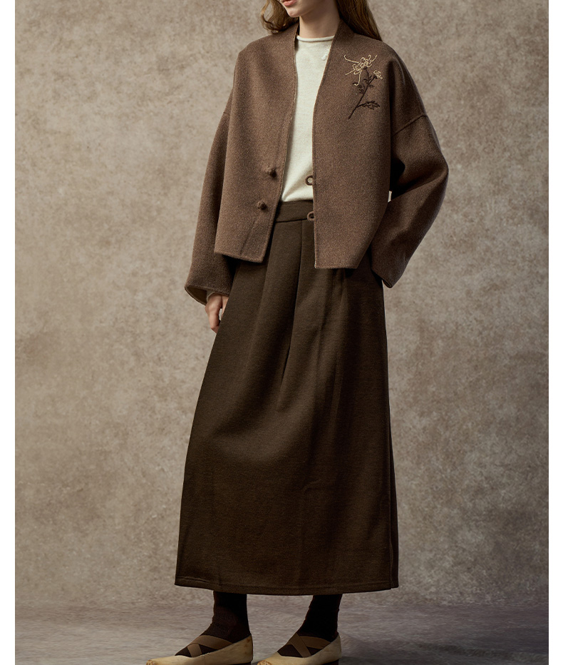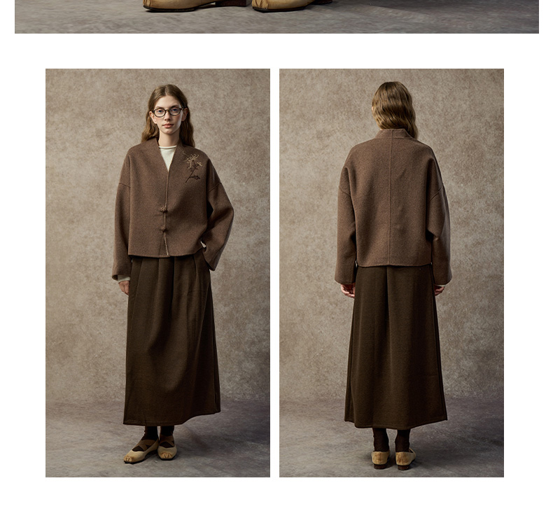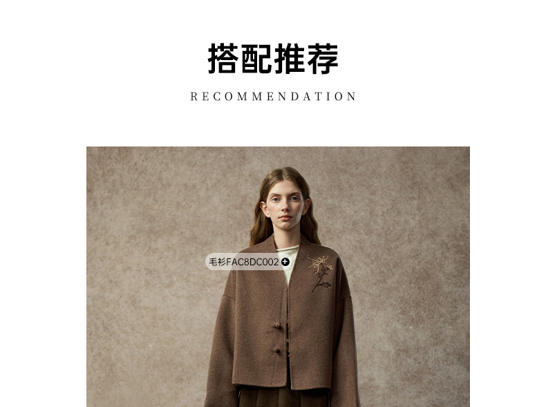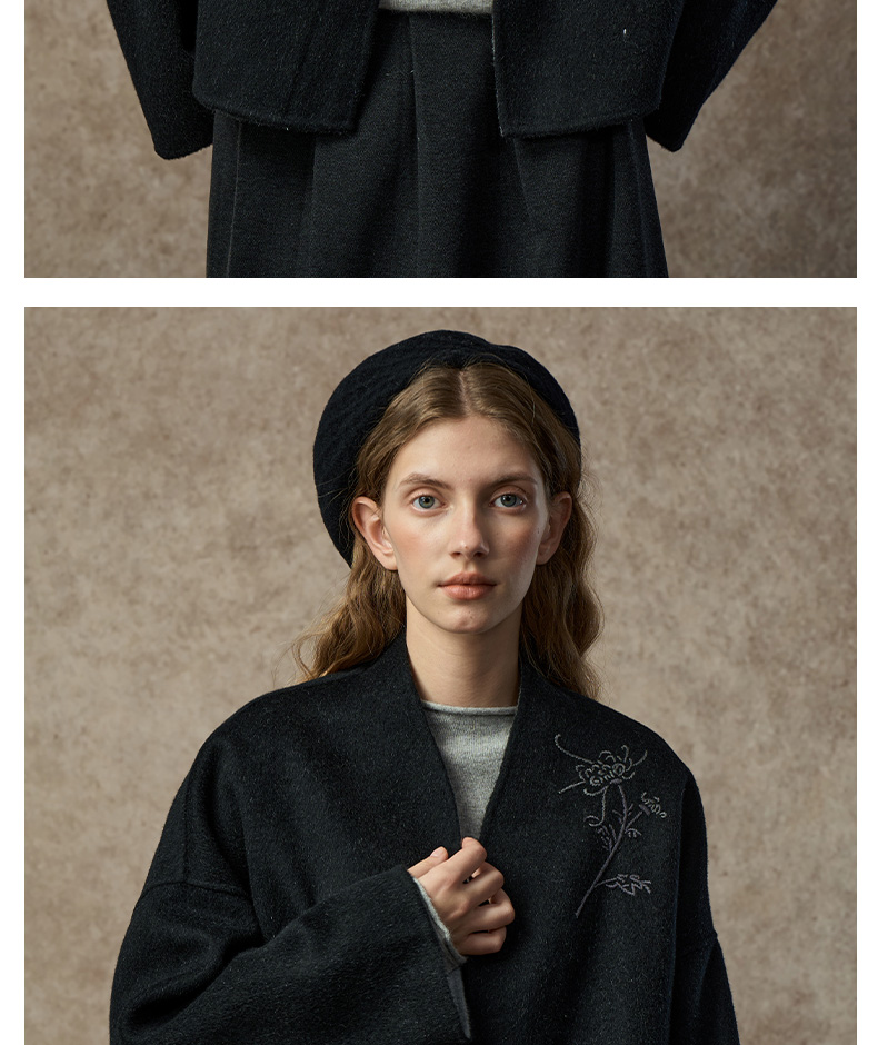 Famecoco范可儿中式刺绣双面毛呢短外套两面穿FAC8AS001