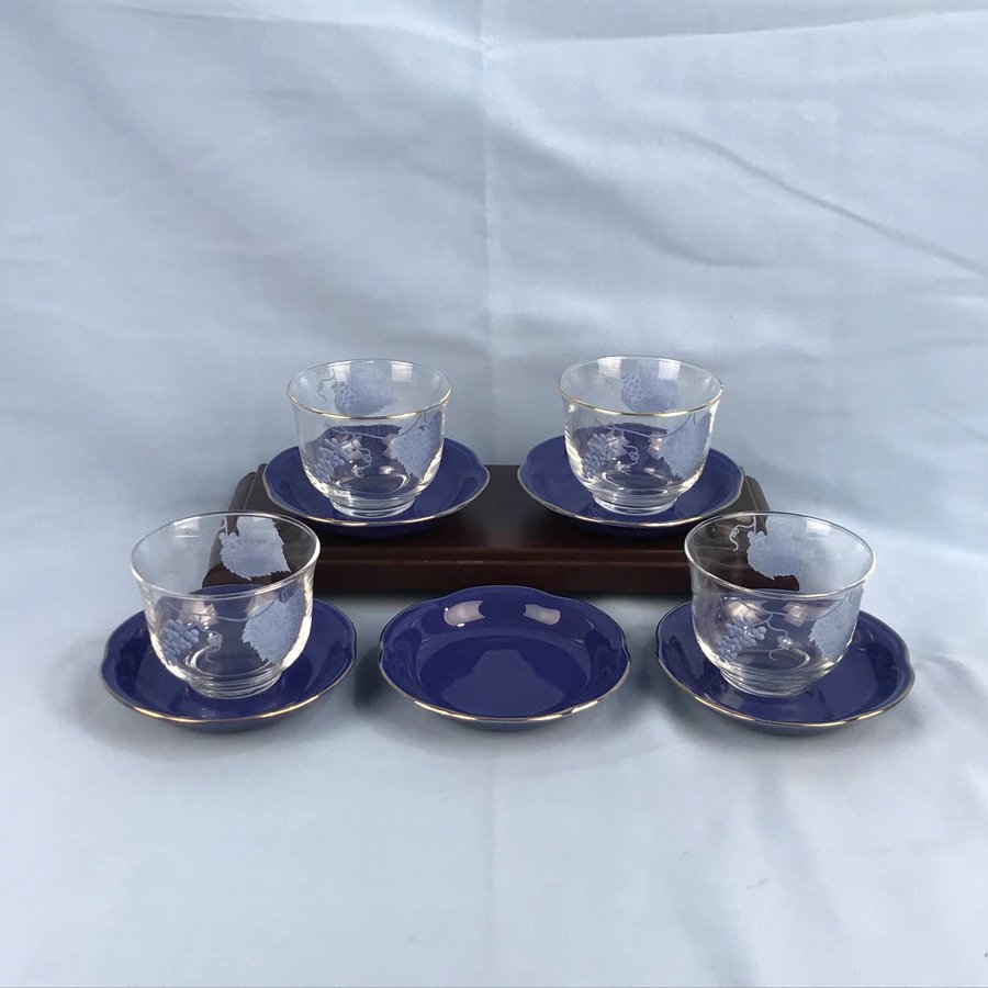 日本野葡萄玻璃茶杯 存9件 原盒保留 实物见视频