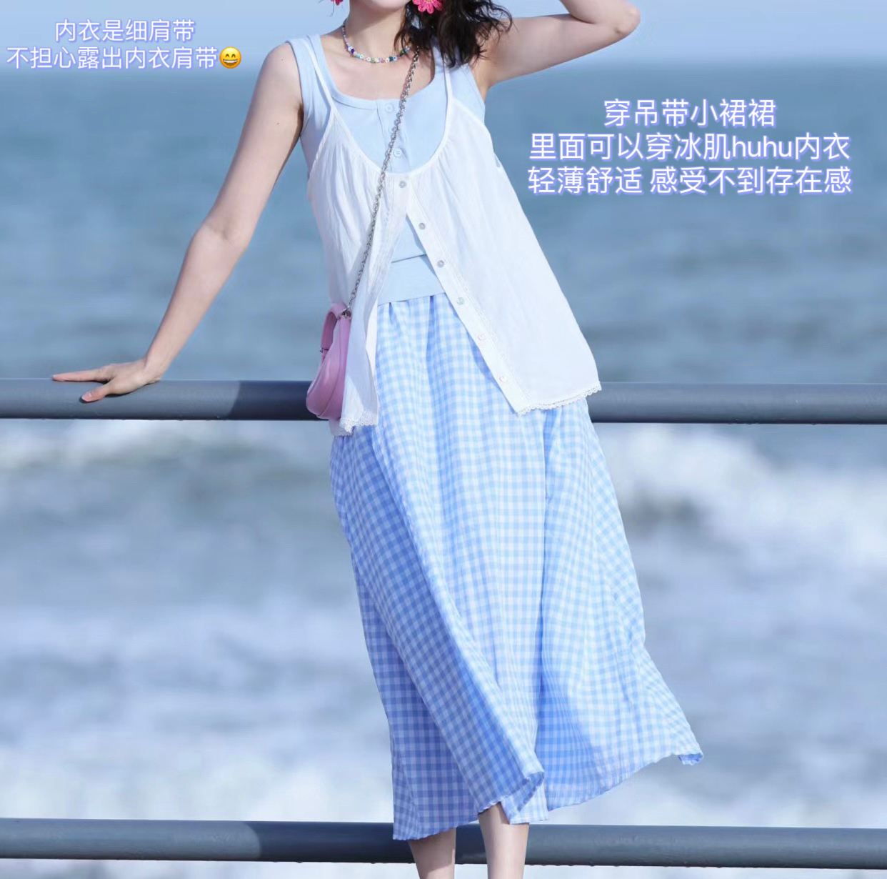 ✅ 去海边穿宽肩带的吊带裙裙