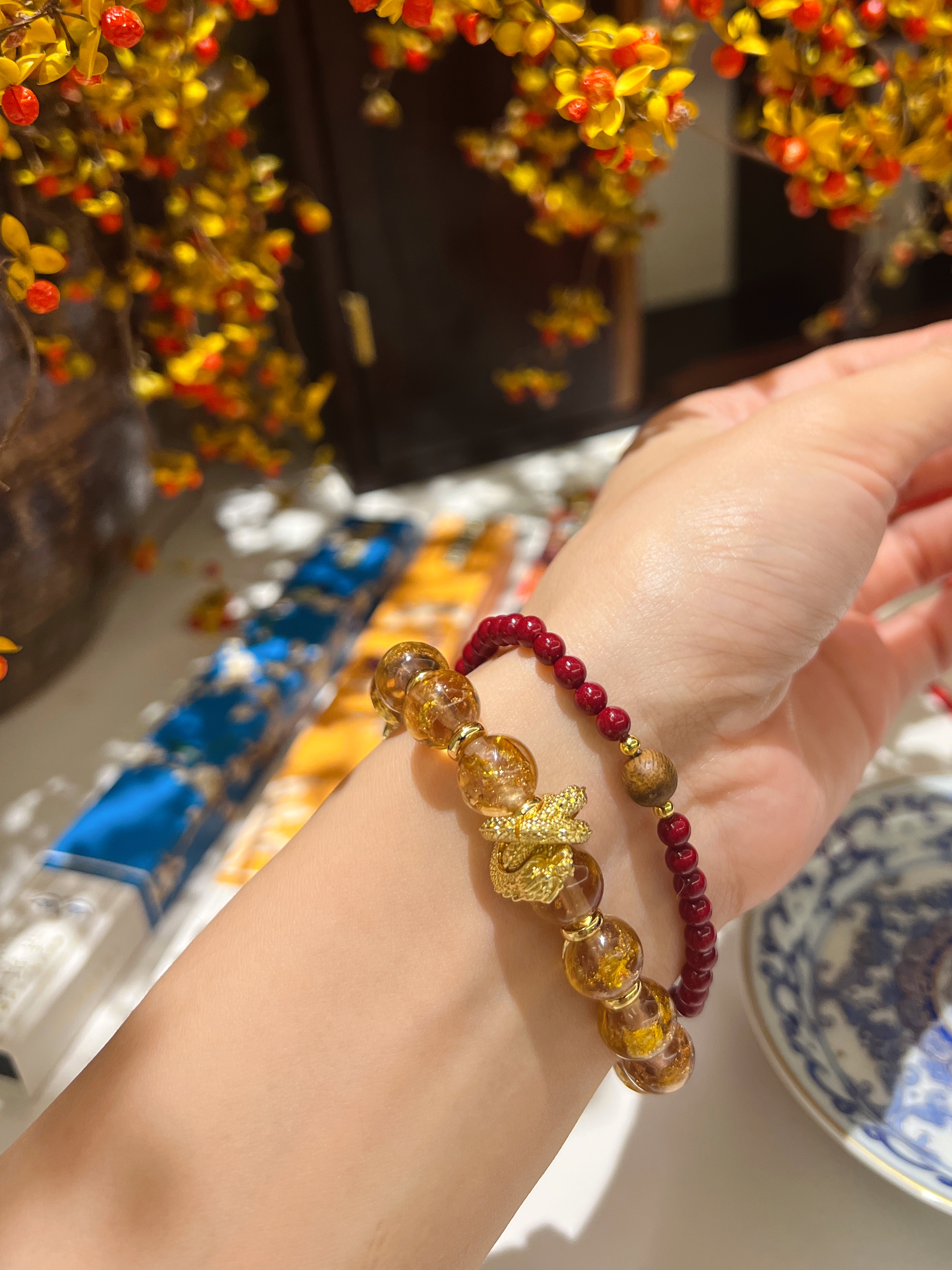 采用非遗古法琉璃烧制工艺,专门定制的紫色金箔琉璃珠,寓意紫气东来,前程似锦。
