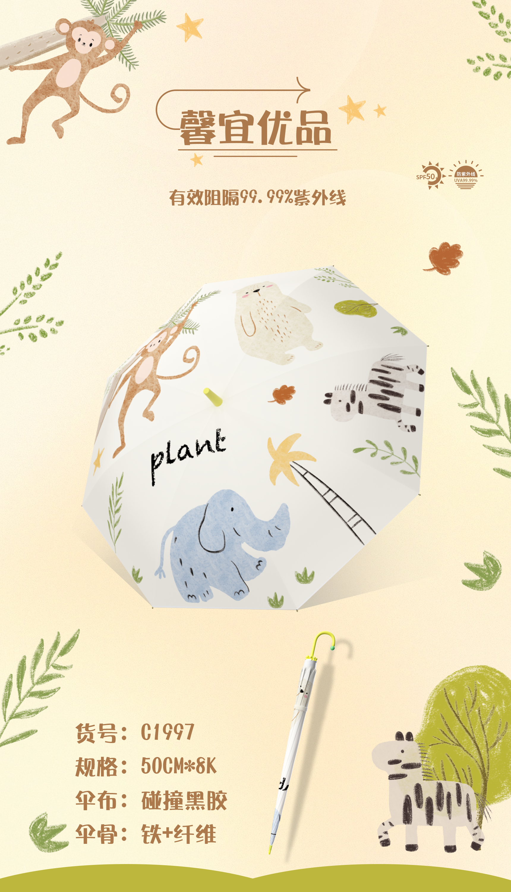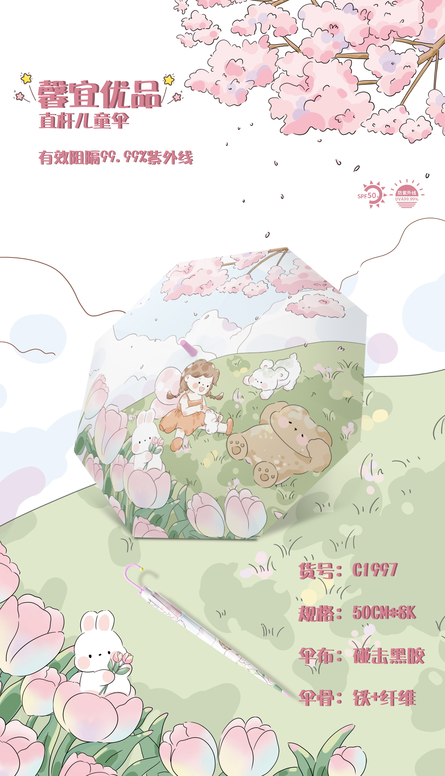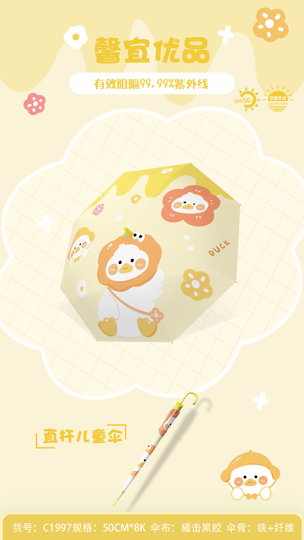 馨宜优品直杆儿童防晒伞(250269)随机发货