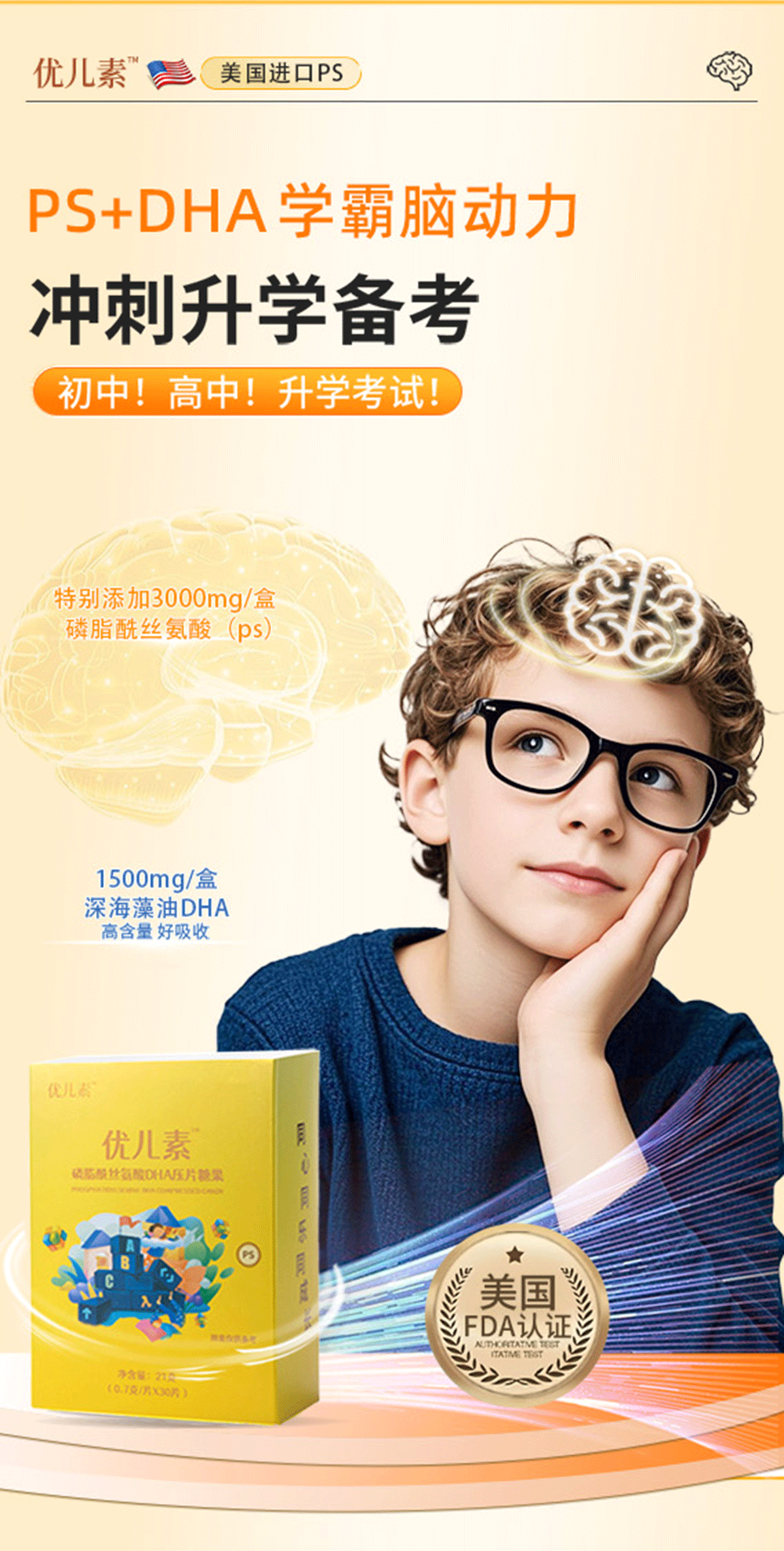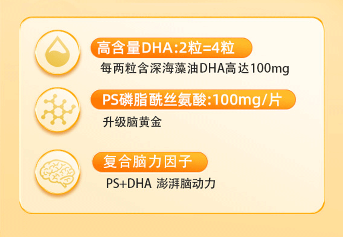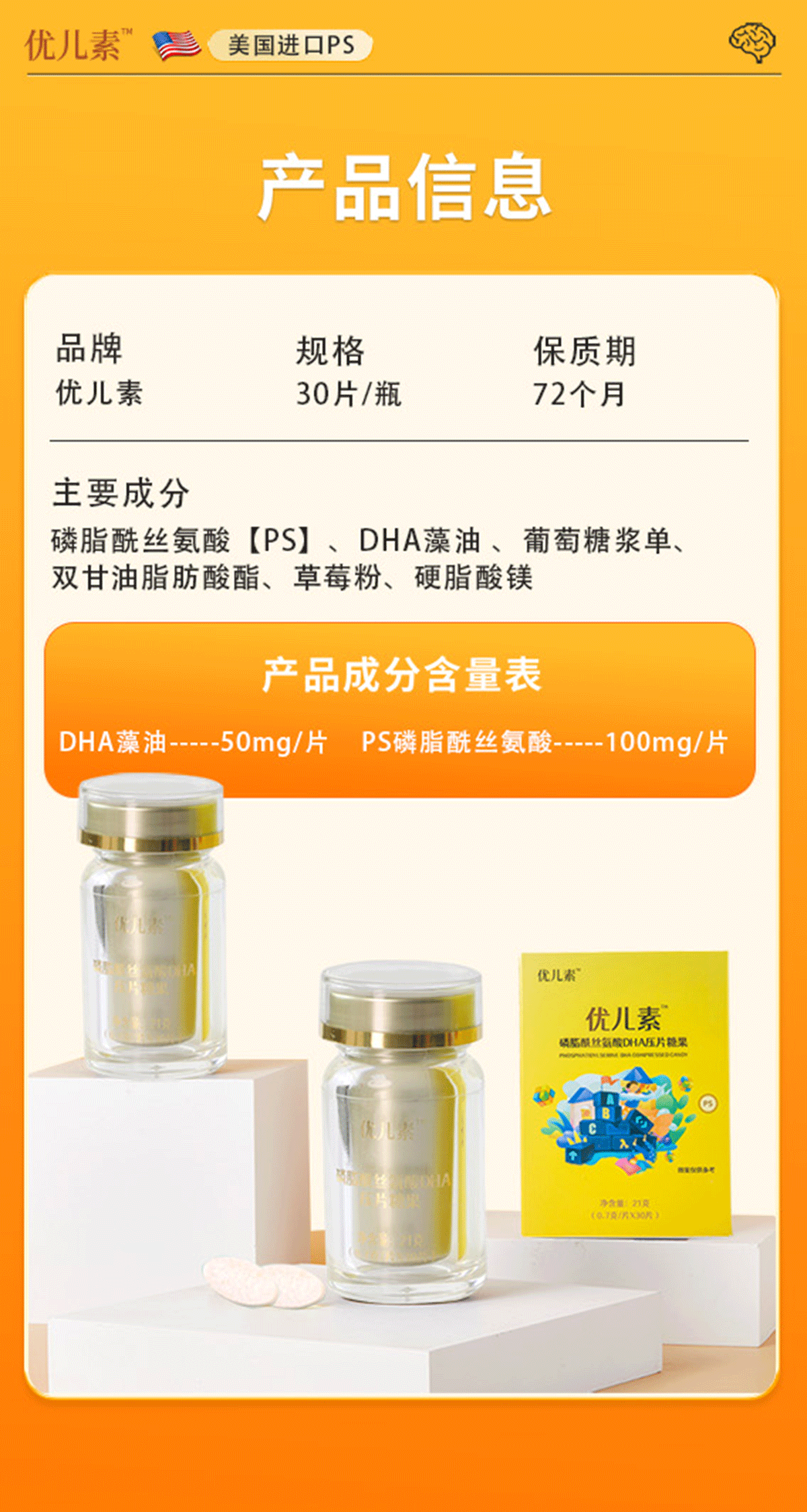 优儿素PS磷脂酰丝氨酸儿童青少年海藻专注DHA咀嚼片