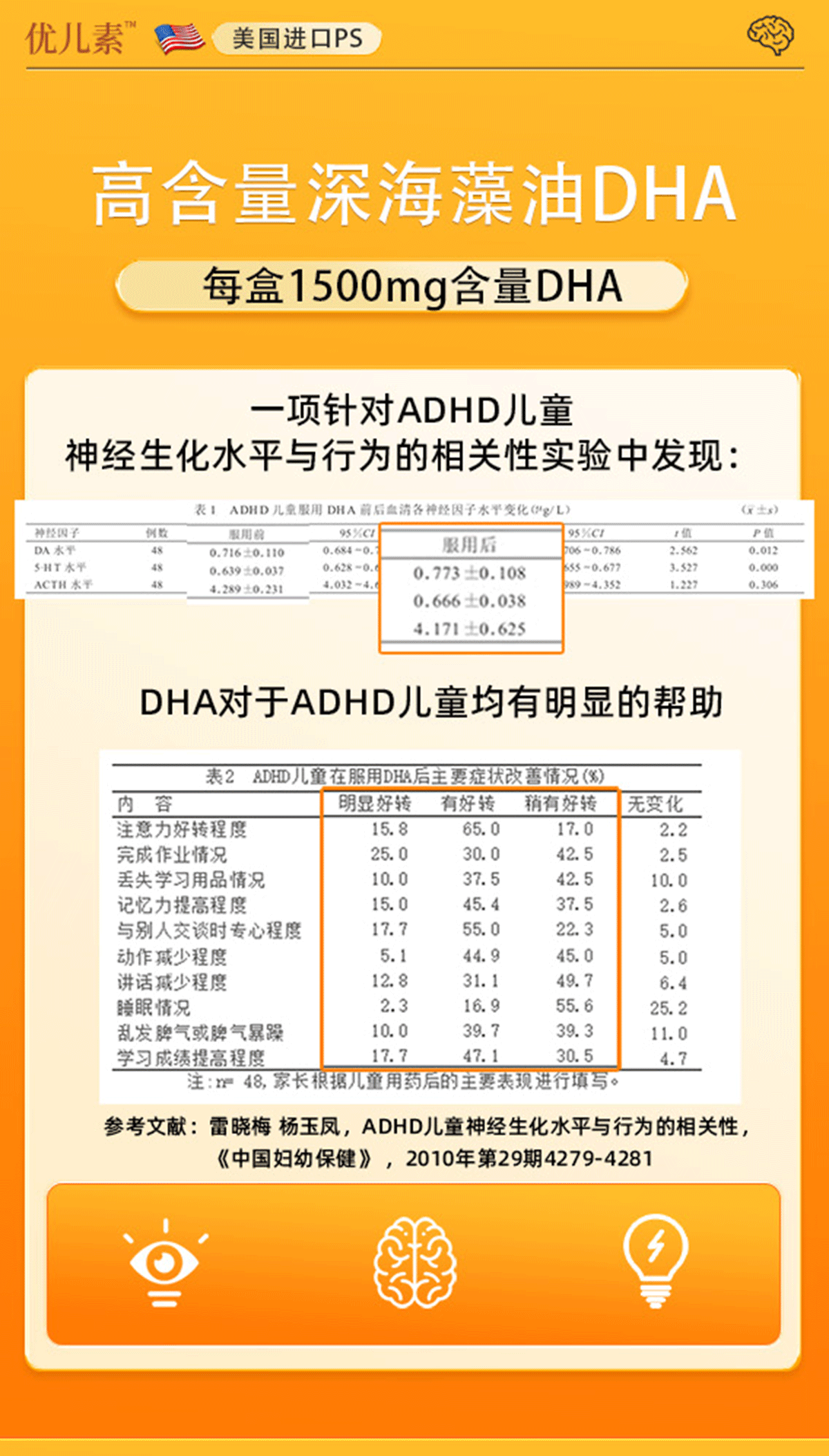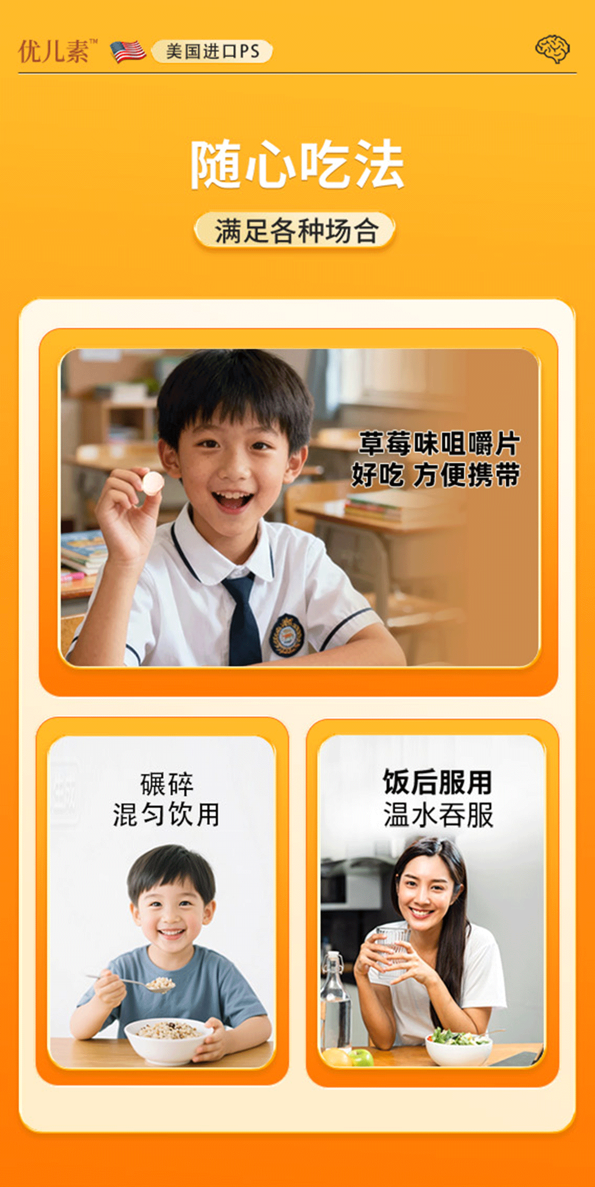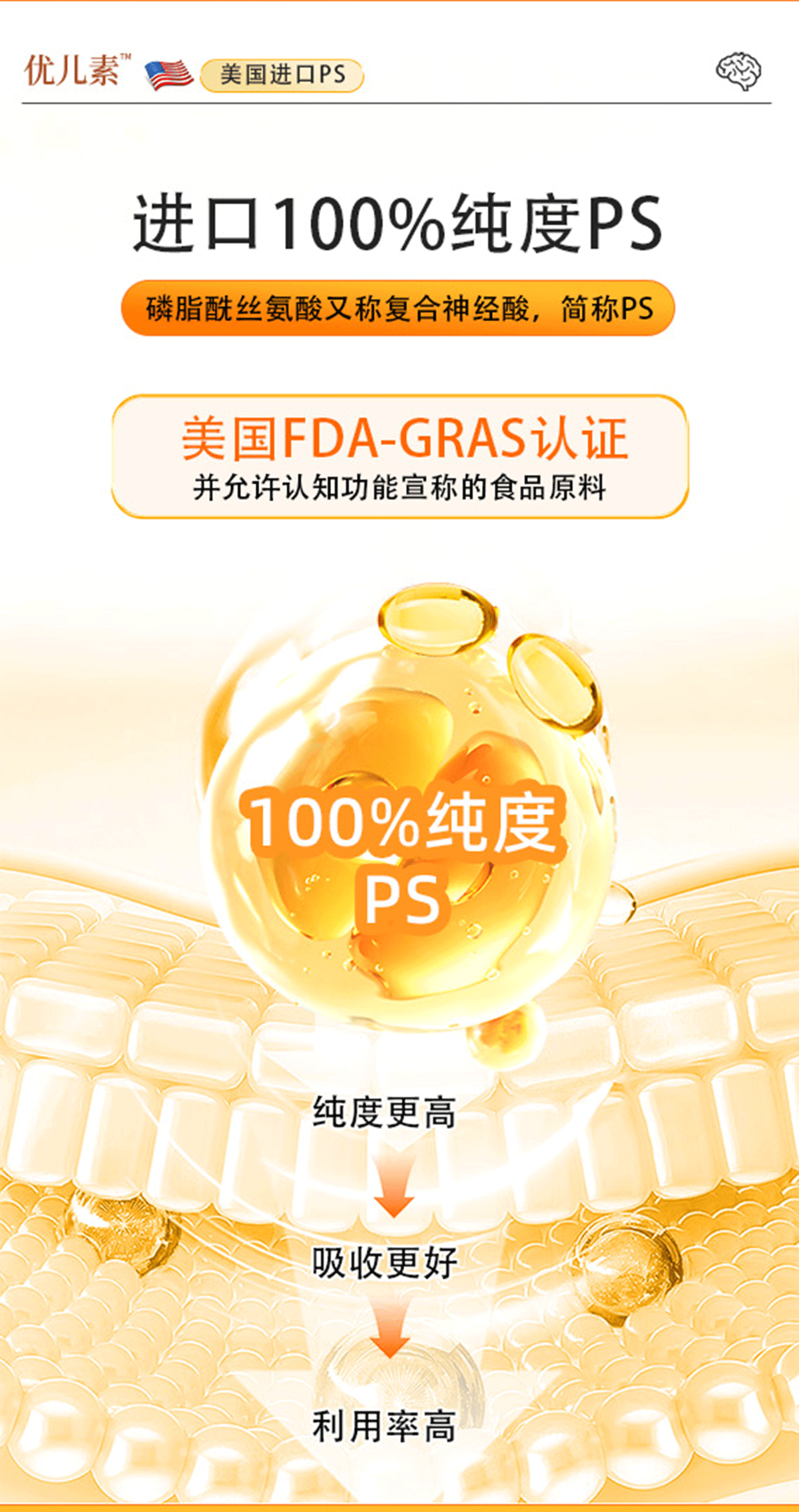 优儿素PS磷脂酰丝氨酸儿童青少年海藻专注DHA咀嚼片