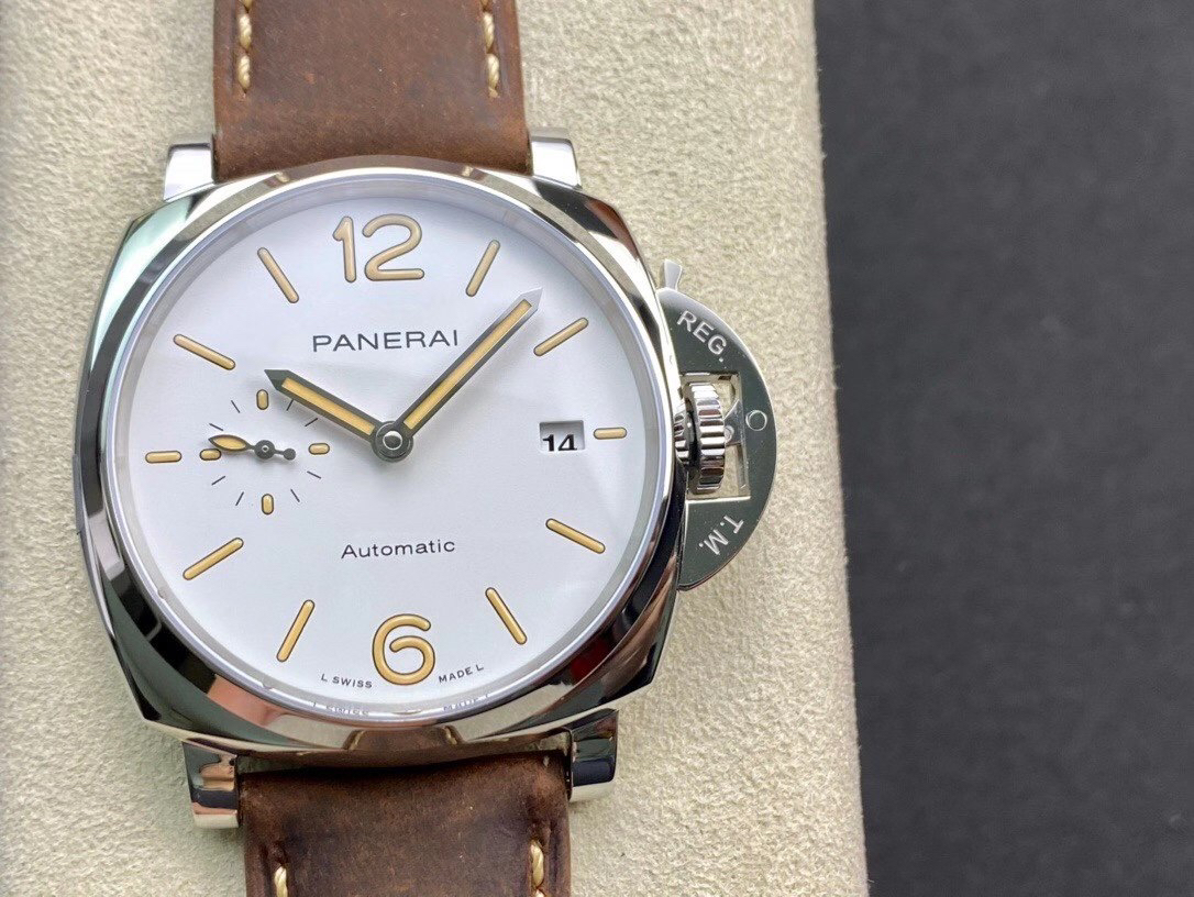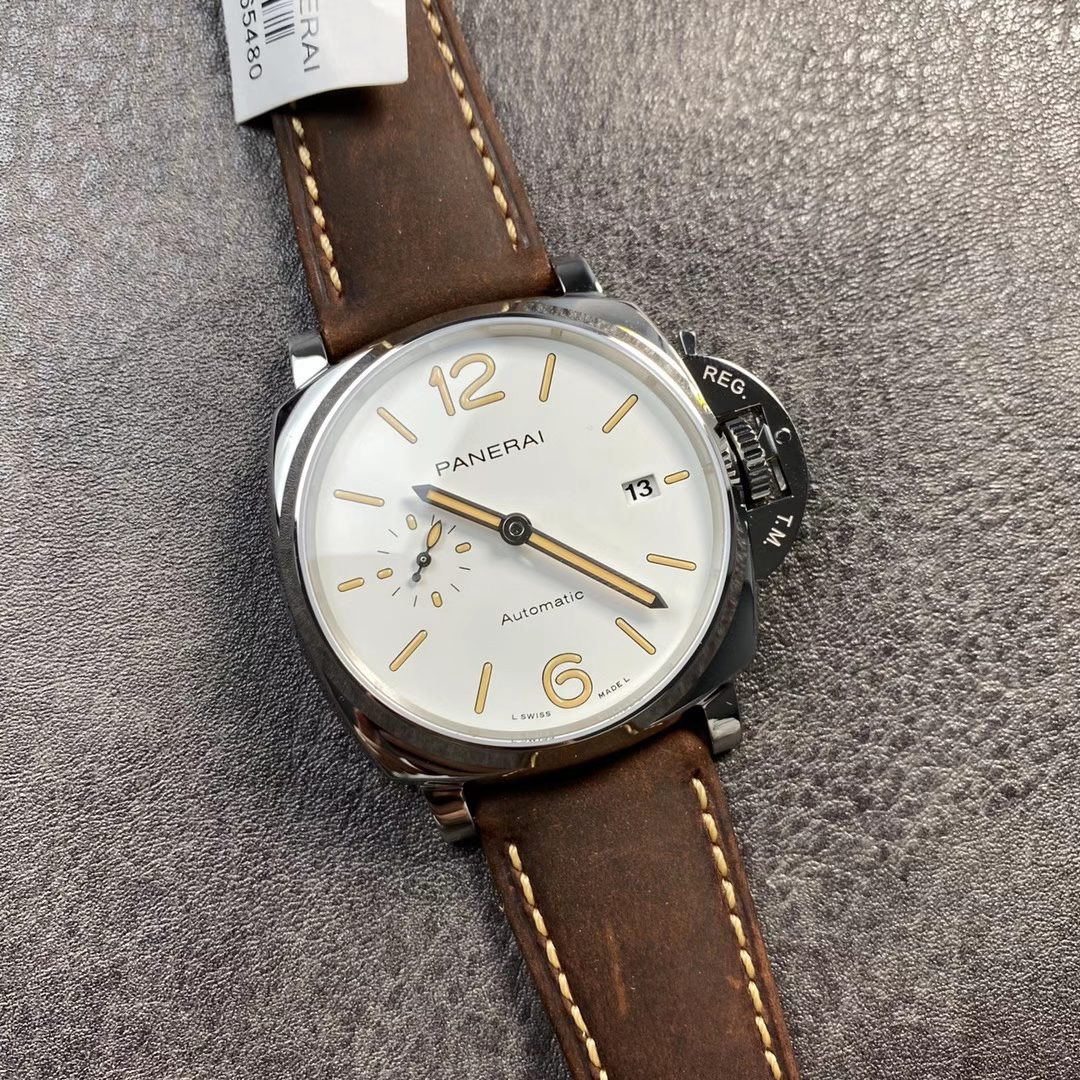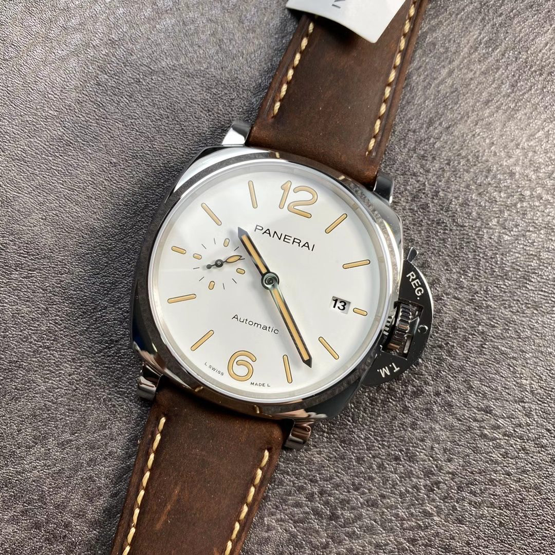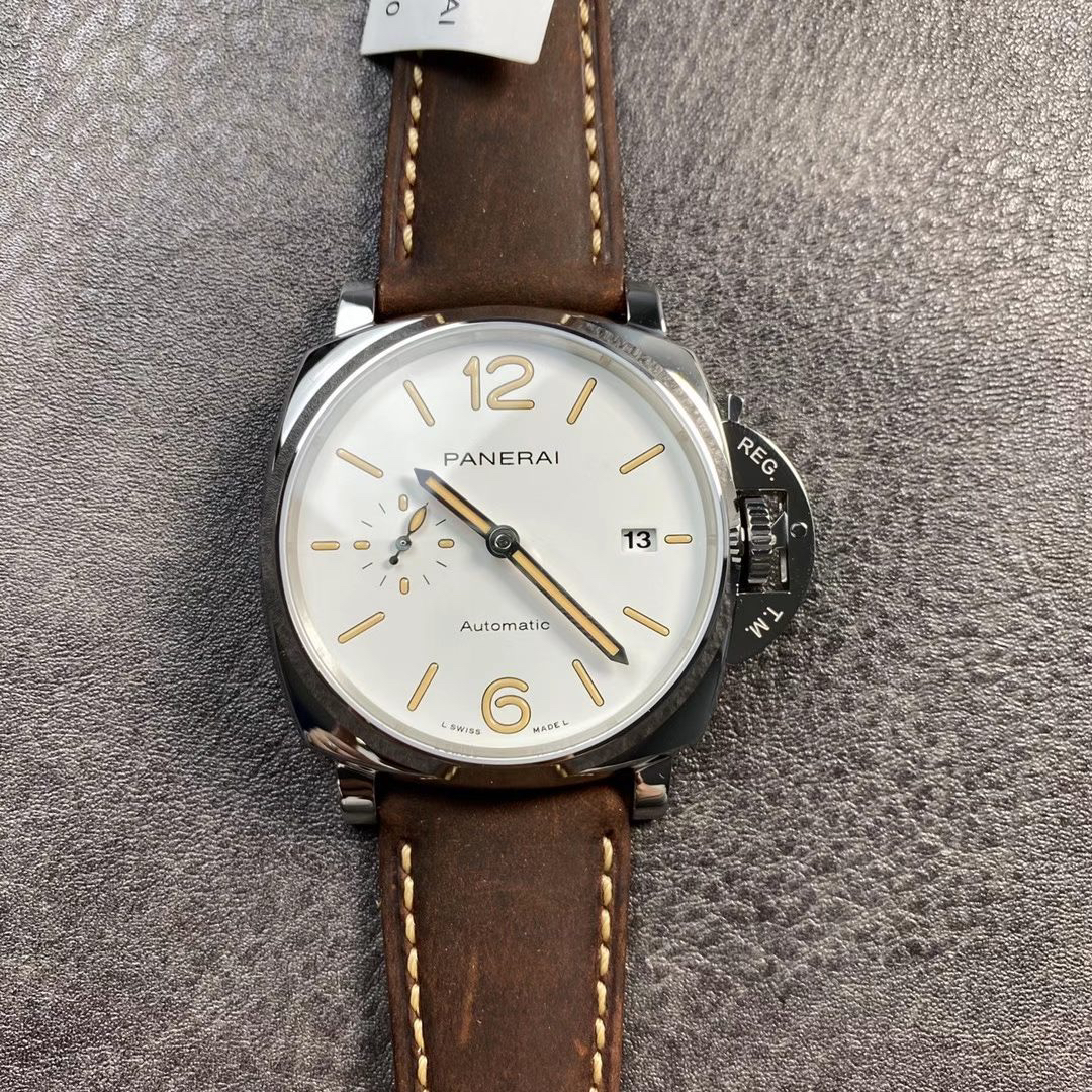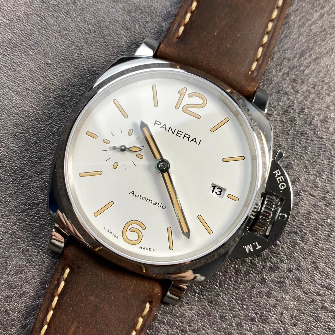 VS新品:沛呐海 Luminor Due 庐米诺杜尔-42毫米PAM1046 超级纤薄表壳 经典三文治米色表盘,上手舒适,不厚重男女均可佩戴!情侣腕表首选~