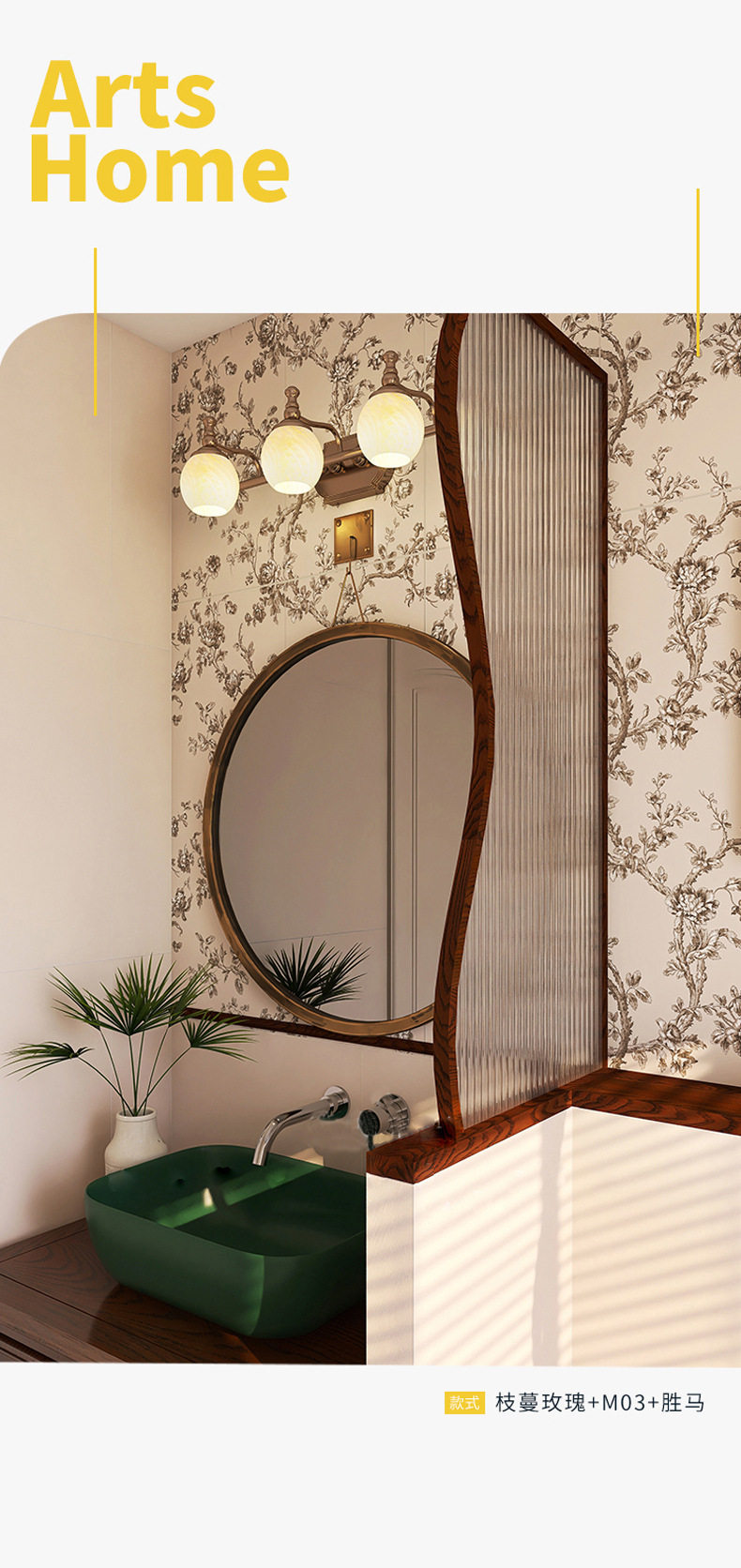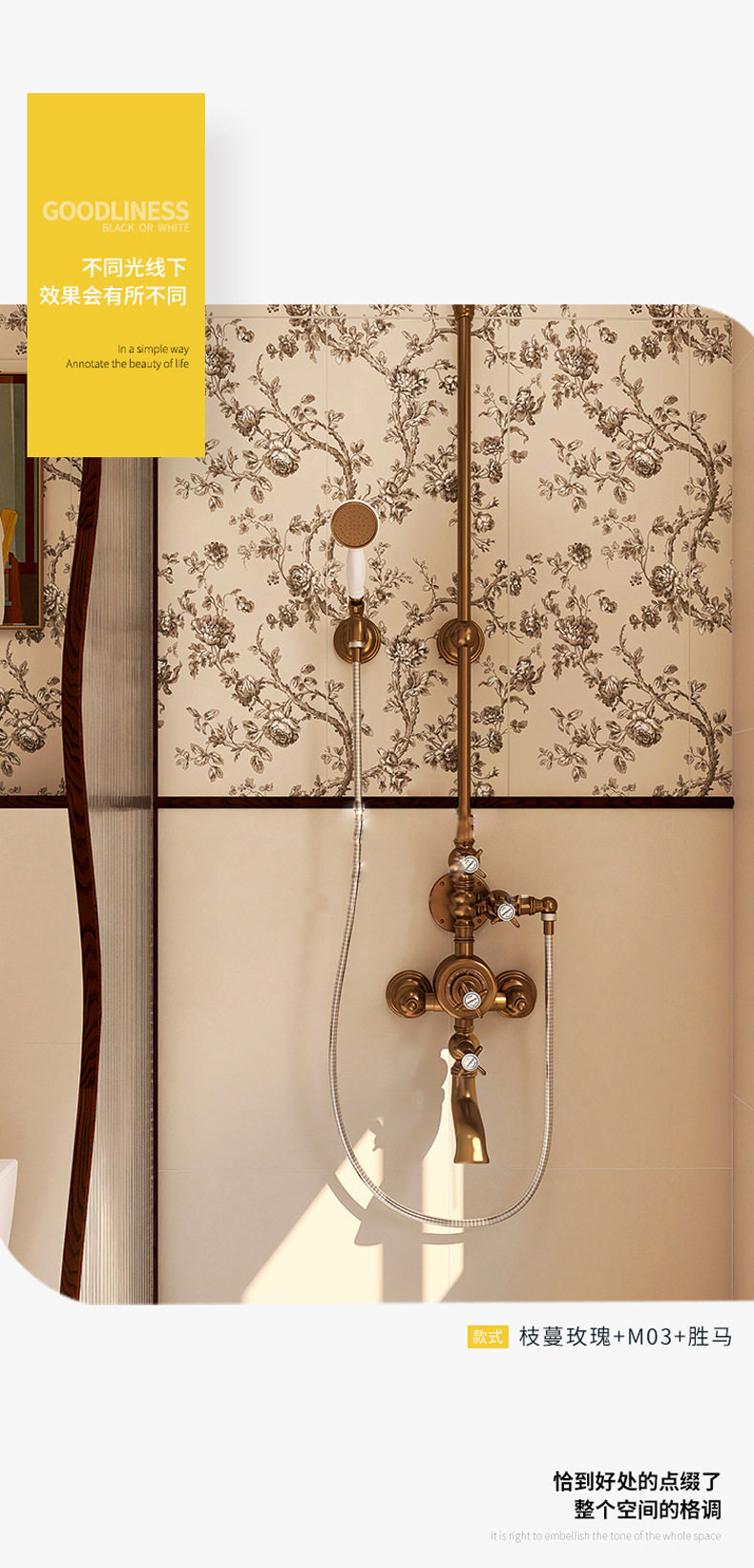 奶油厕所浴室风复古地砖砖300x900mm法式瓷墙砖玫瑰花卫生间 商品图4