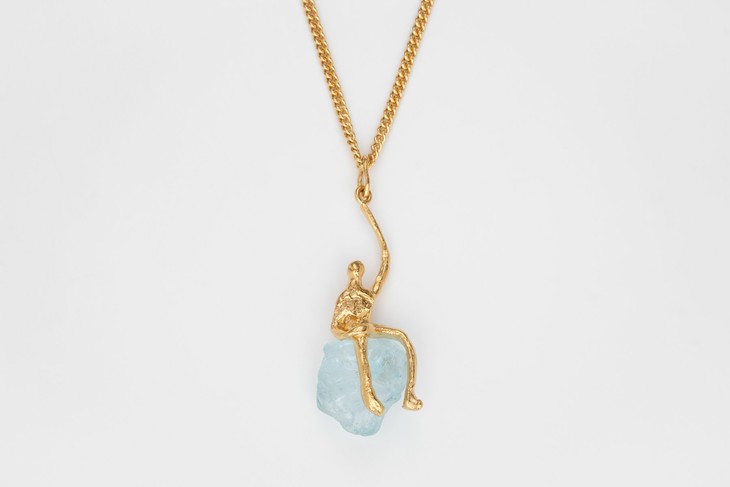 材质:Hand crafted necklace in 925 silver with 18k gold plating and a rough Blue Topaz.