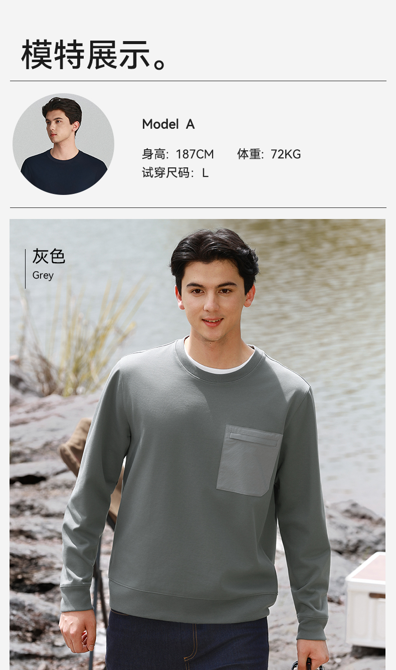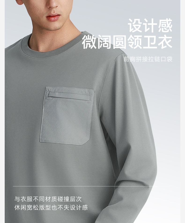 秋冬针织保暖圆领远红外口袋款休闲卫衣-LS04-03