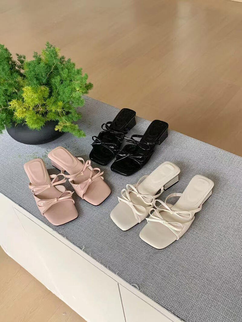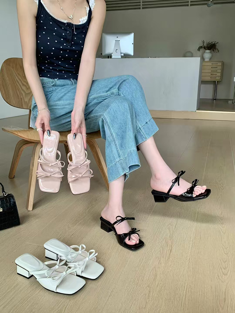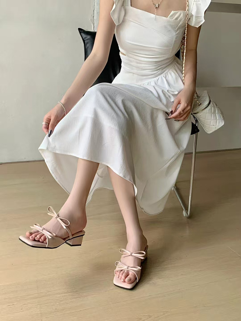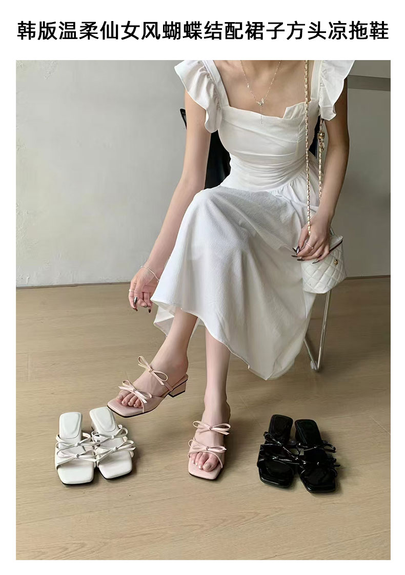 纪念日百货韩版温柔仙女风蝴蝶结配裙子方头凉拖鞋(LH)(LD)163143508