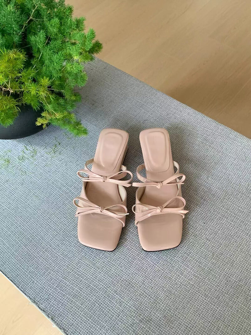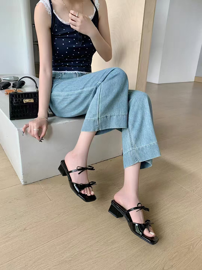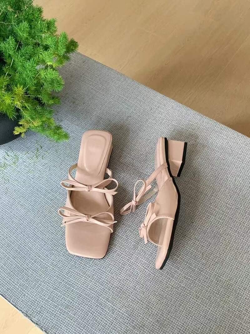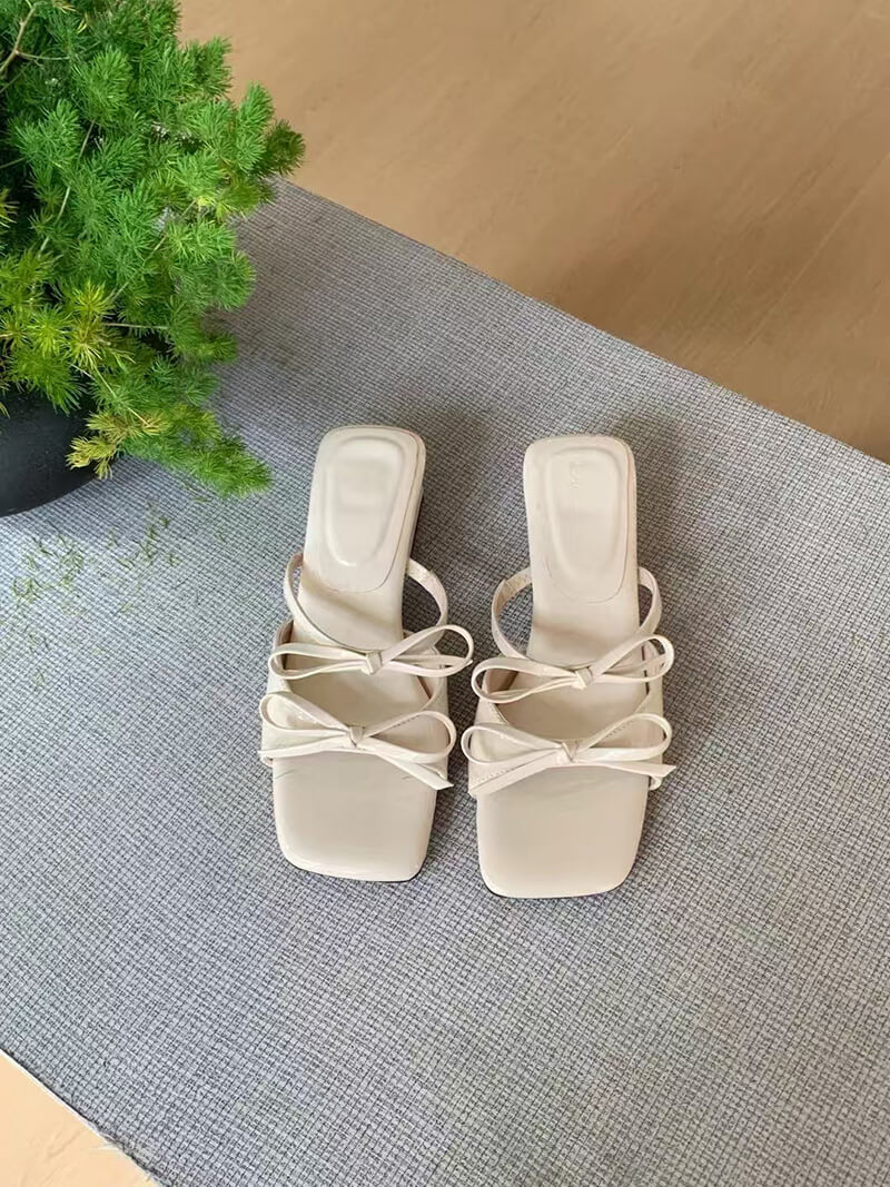 纪念日百货韩版温柔仙女风蝴蝶结配裙子方头凉拖鞋(LH)(LD)163143508