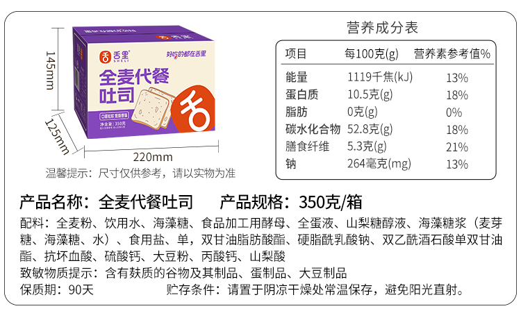 【舌里藜麦全麦吐司1000g/箱】 独立包装 一箱约20小袋