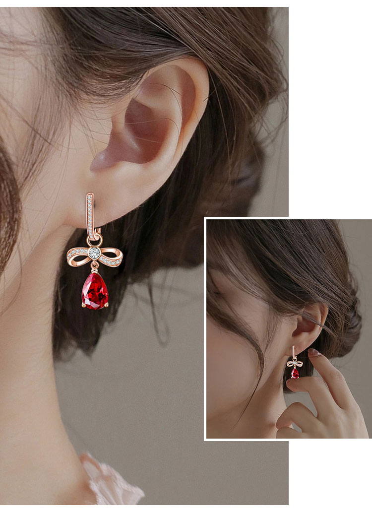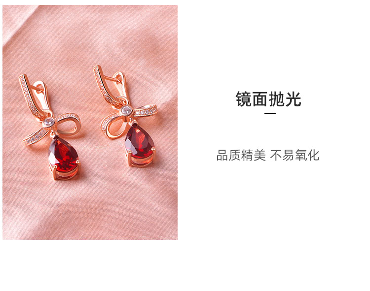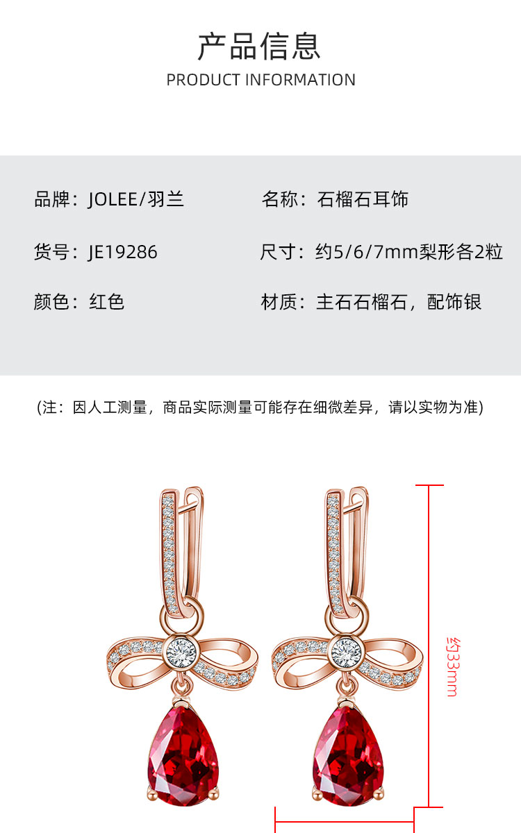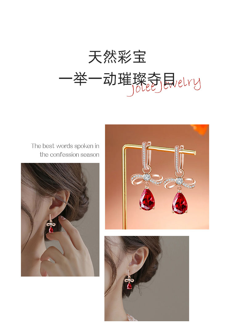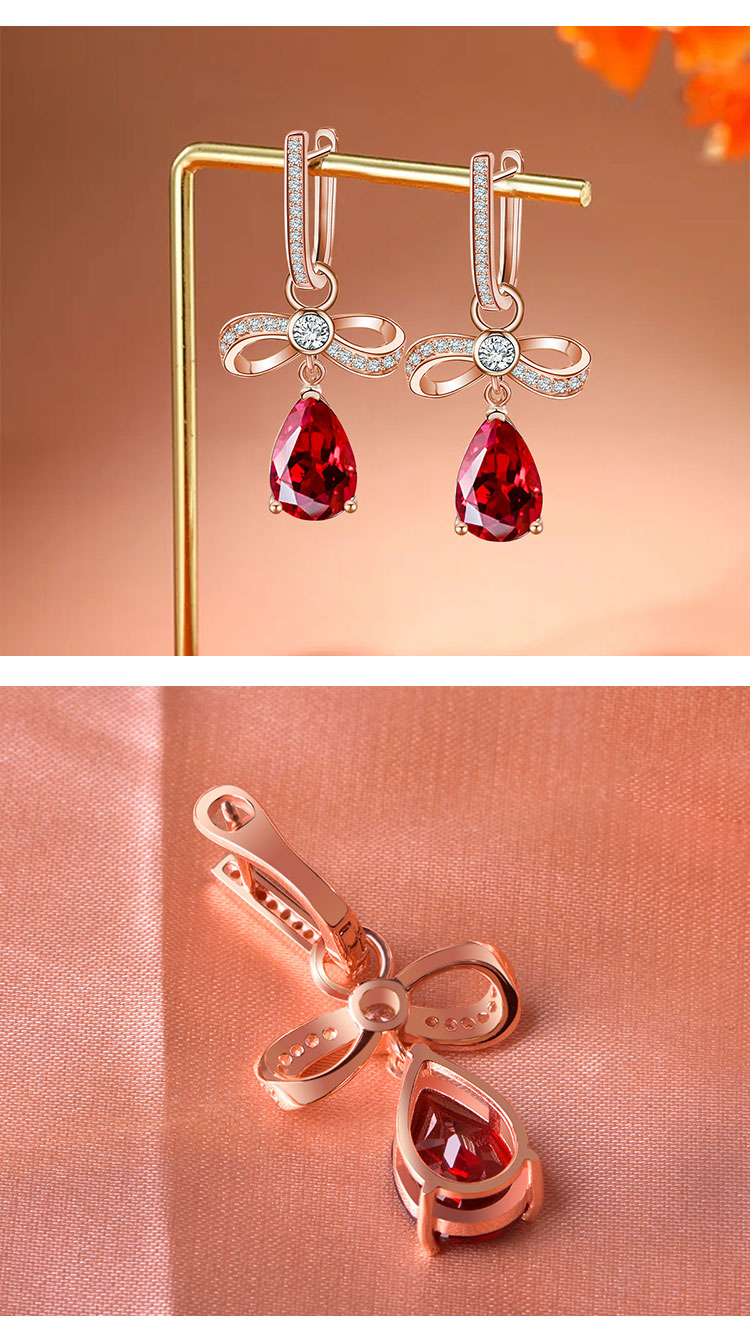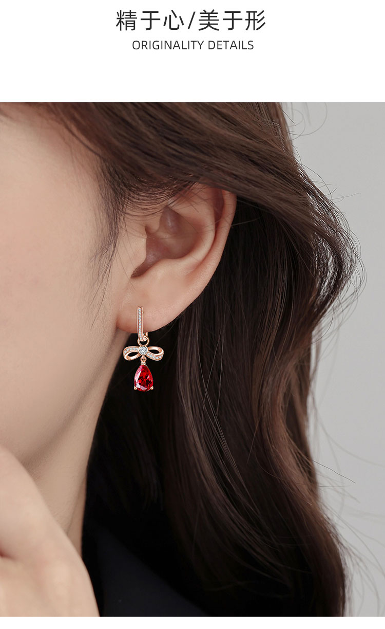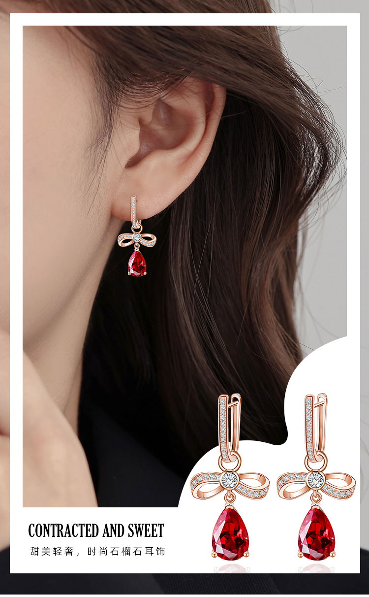 【石榴石耳环】S925银酒红石榴石彩色宝石蝴蝶结耳饰品耳坠JE19285