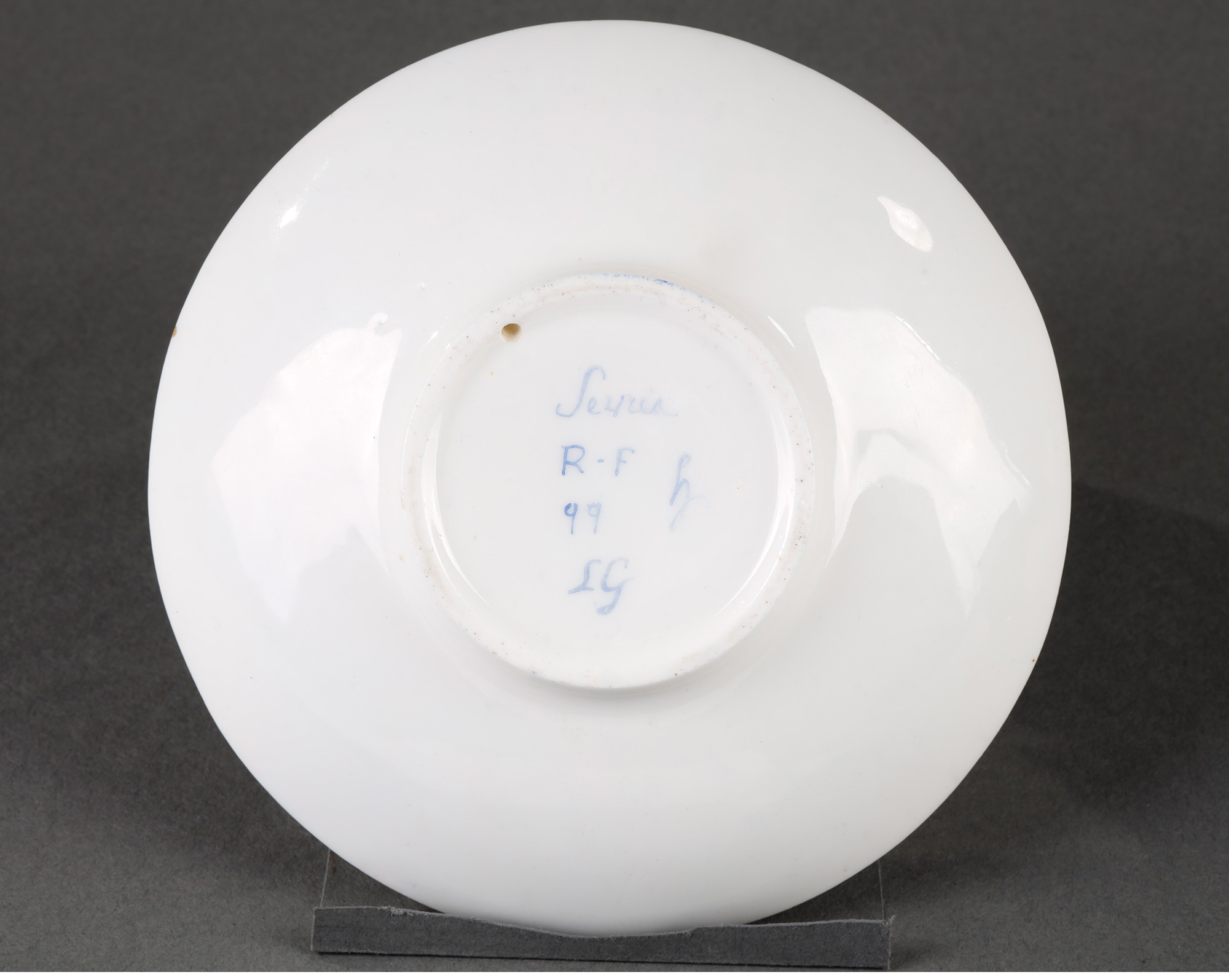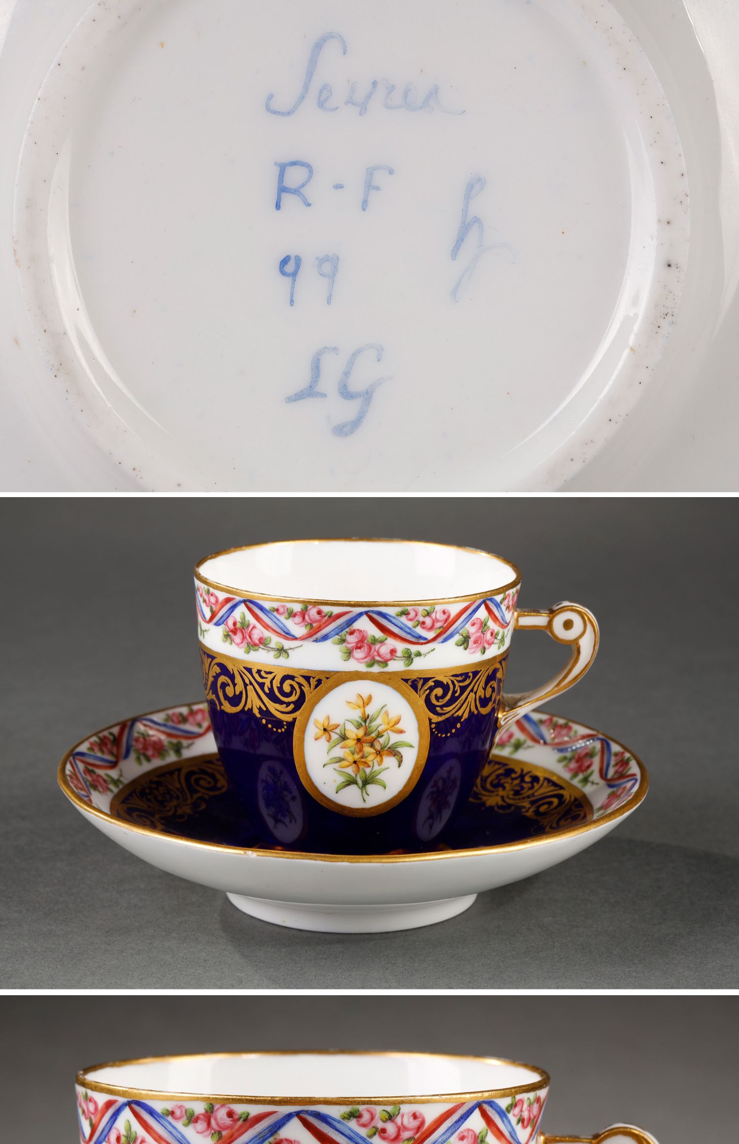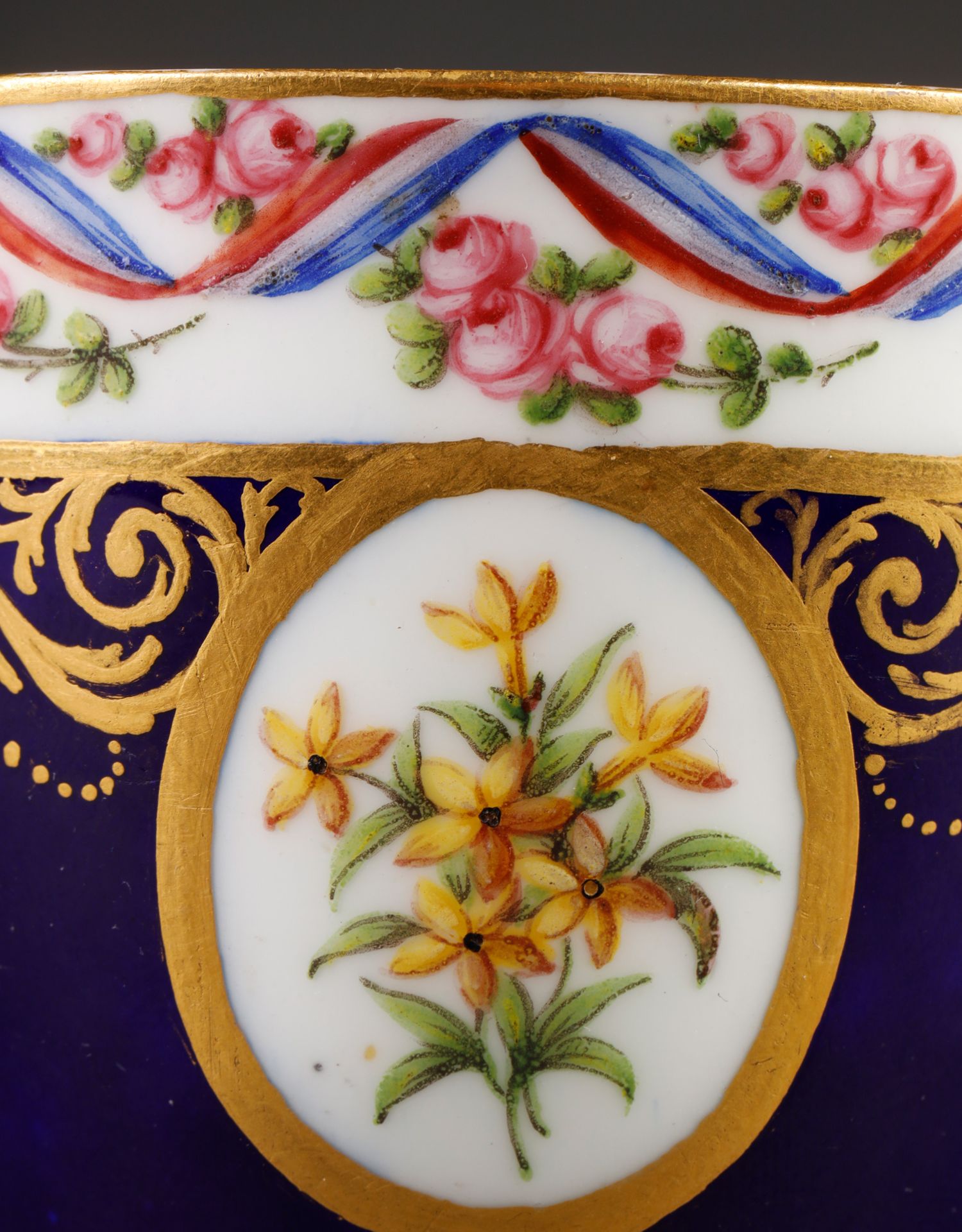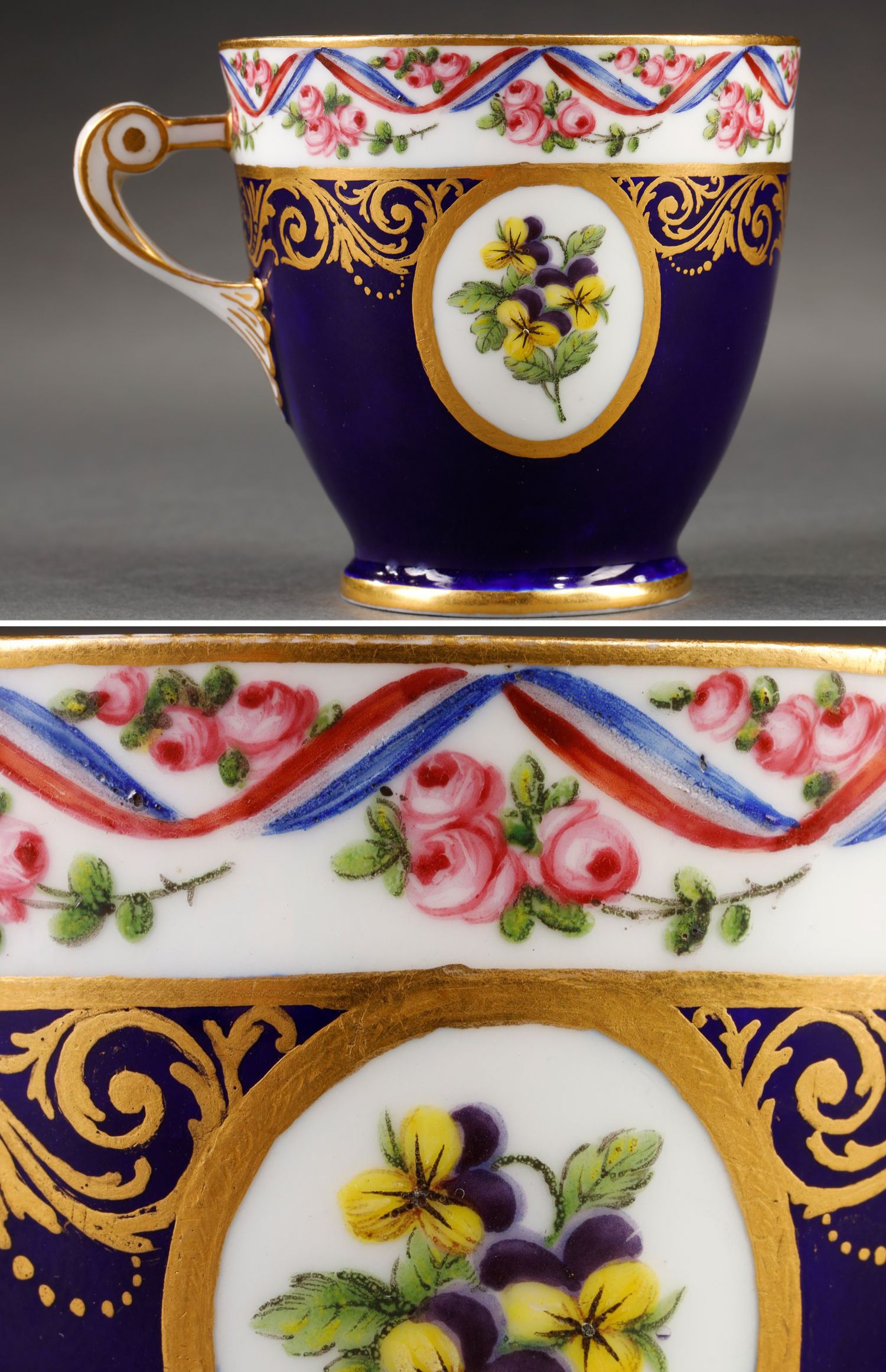 独角鹿西洋古董塞弗尔瓷器帝王蓝釉手绘描金彩色花卉茶杯托盘杯碟
