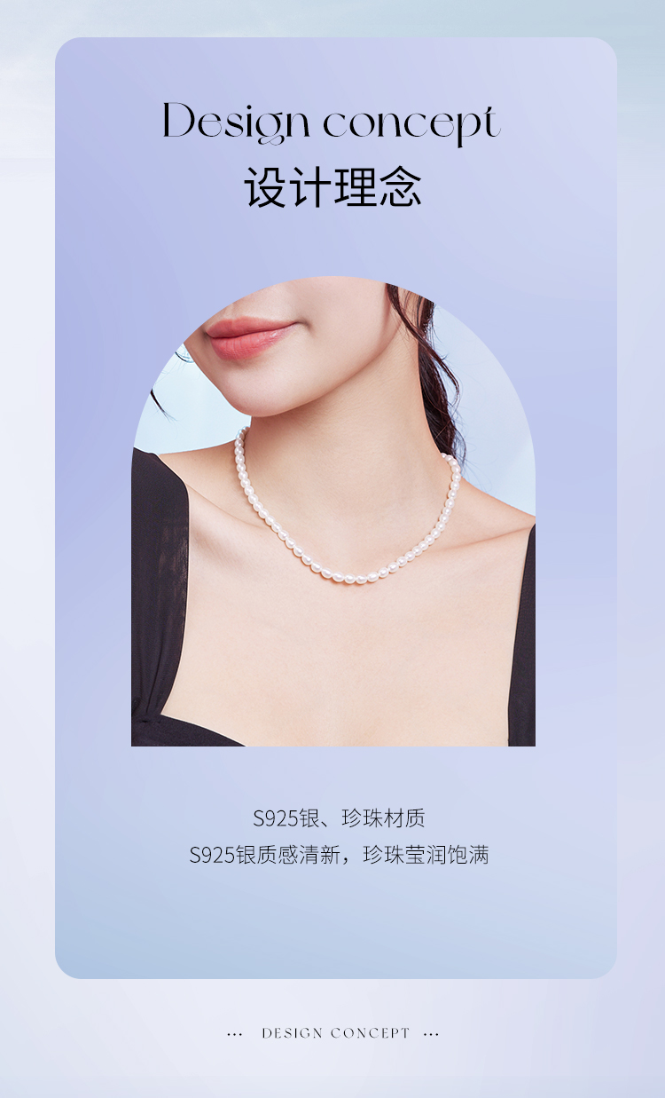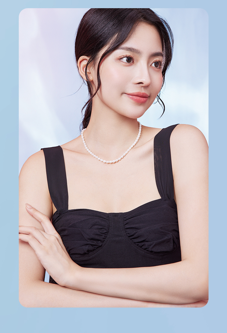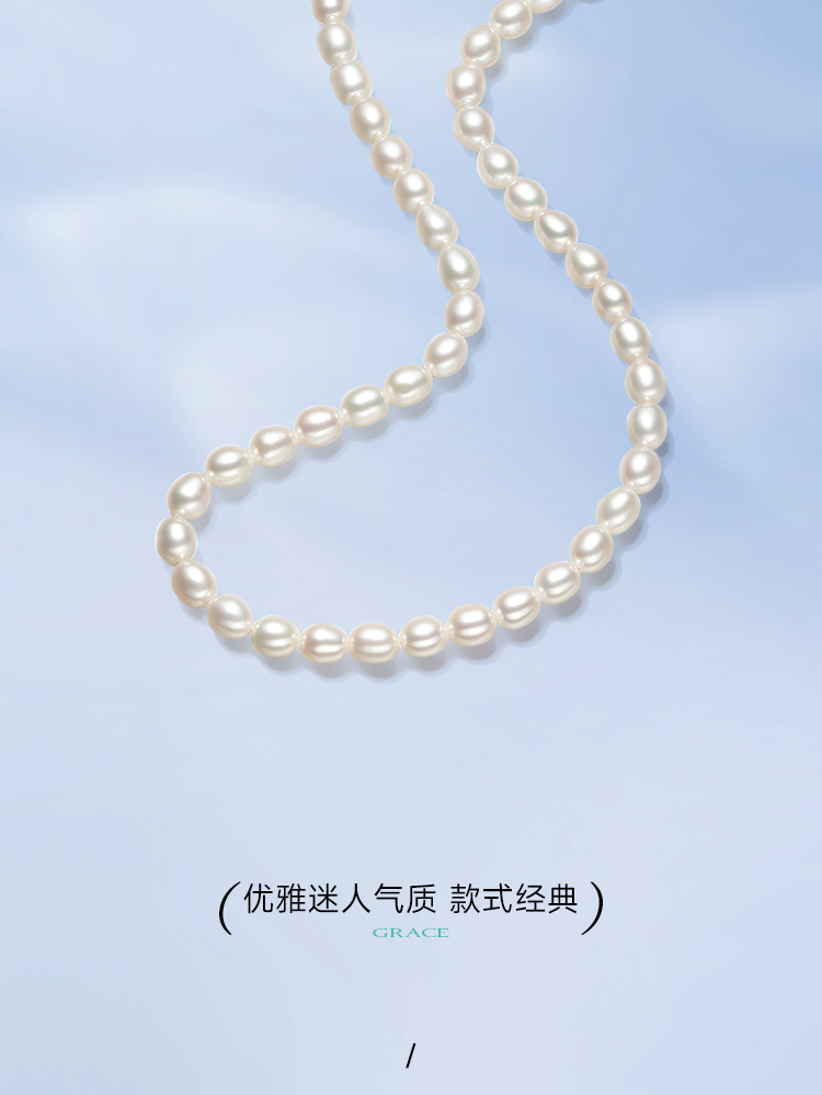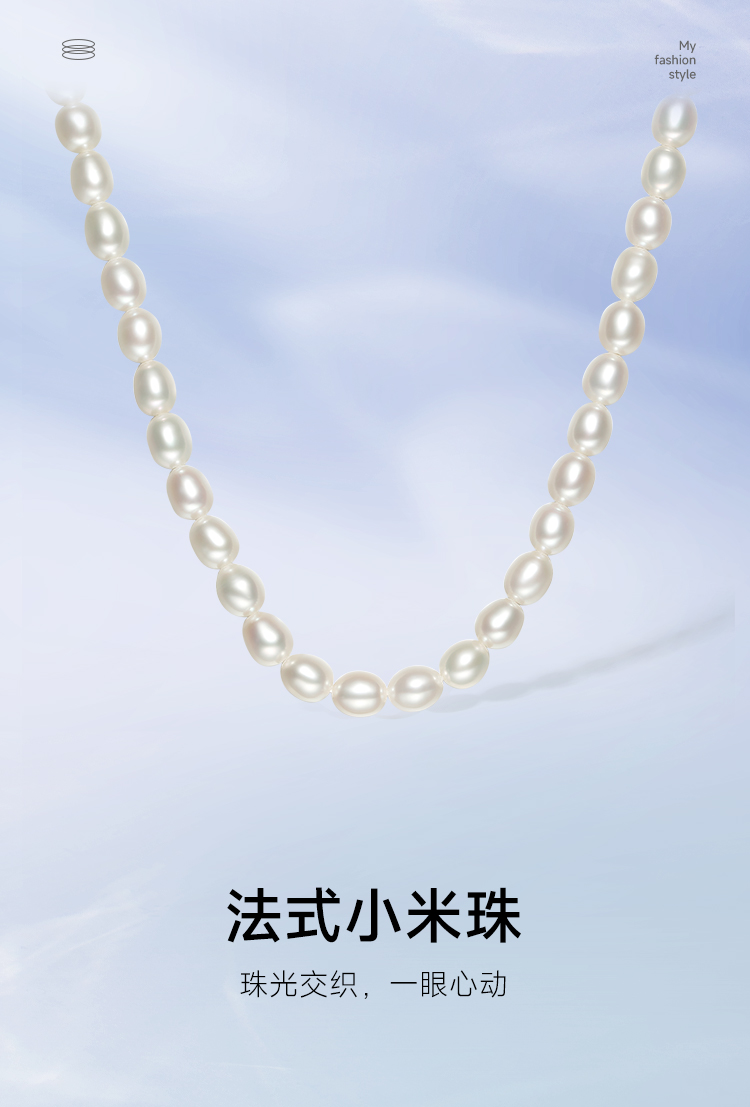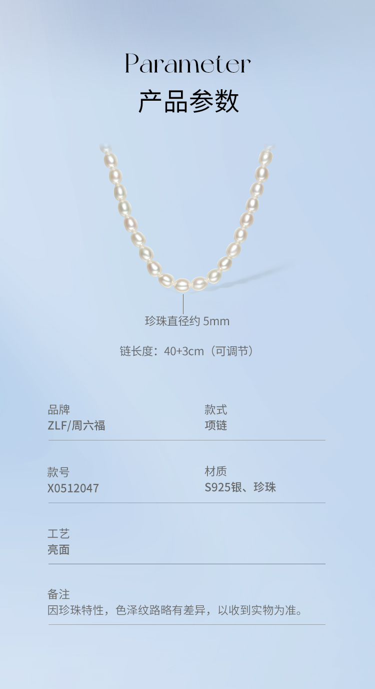 周六福S925银珍珠项链女款小米珠法式优雅淡水珍珠颈饰送女友礼物
