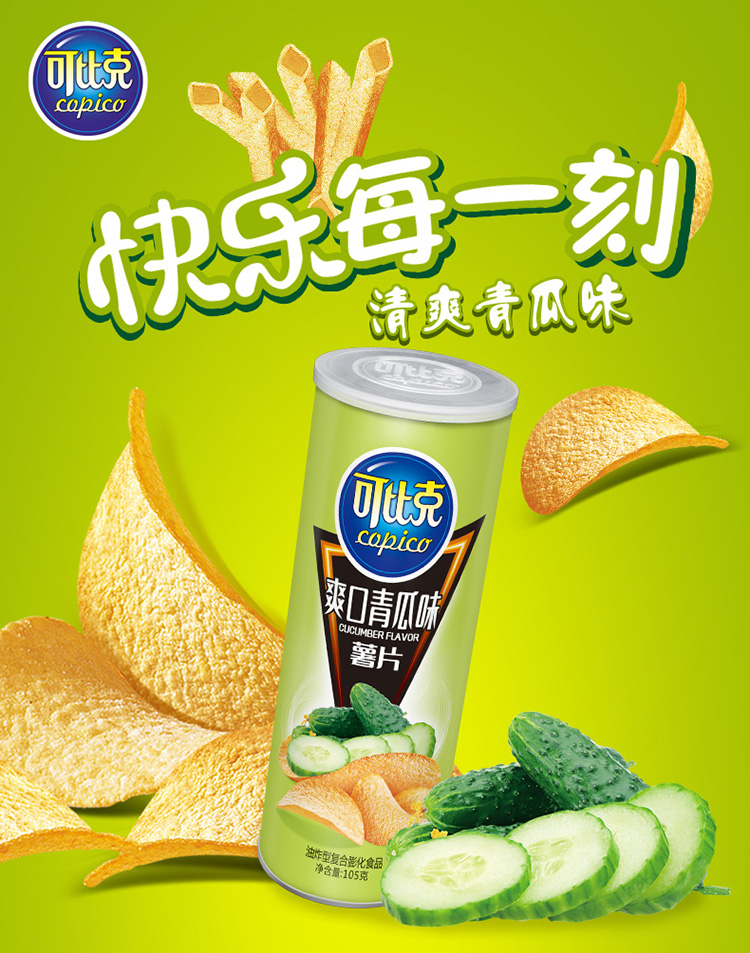 可比克薯片 青瓜味105g 休闲零食 膨化食品