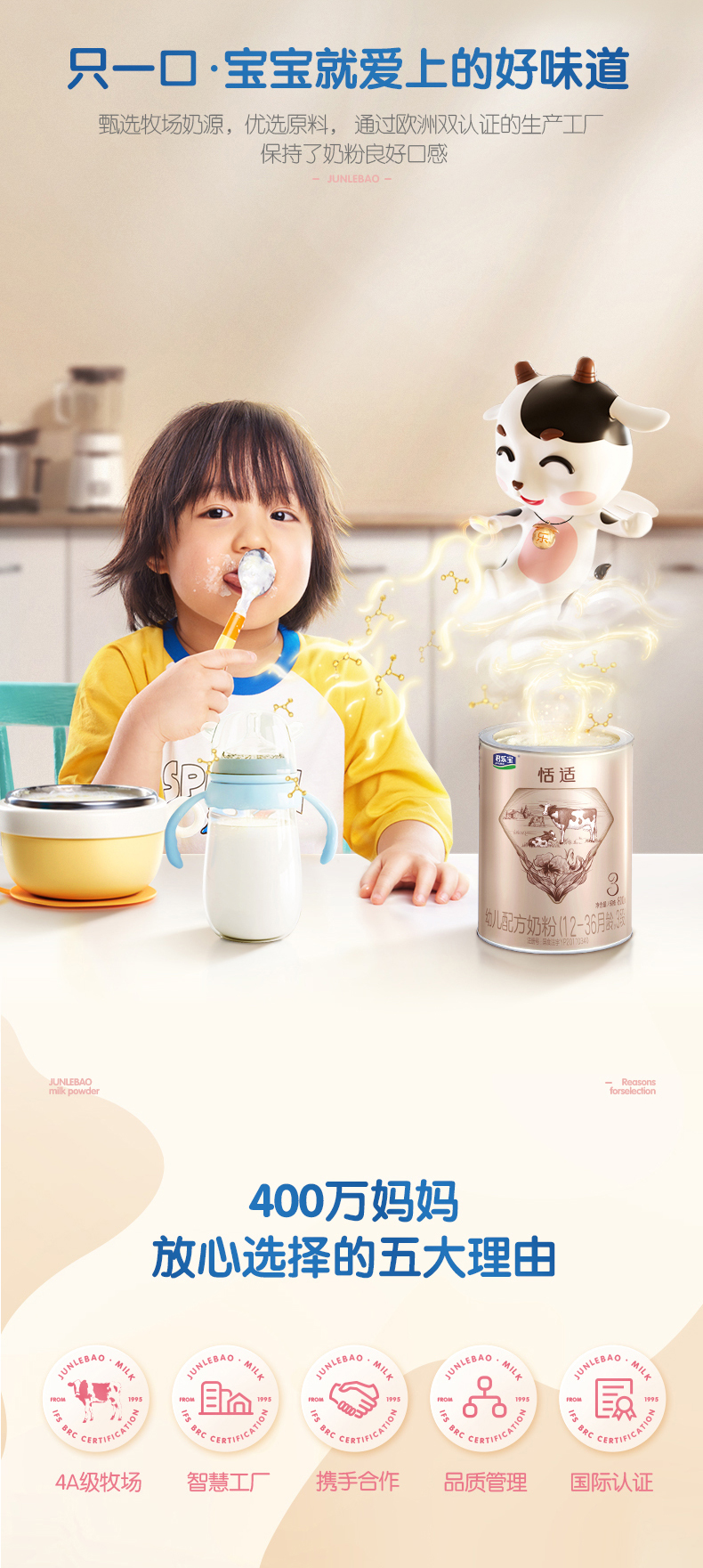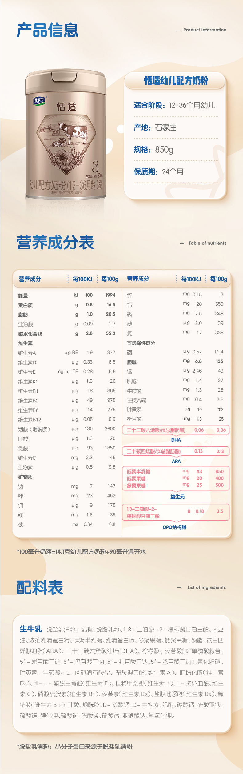 君乐宝恬适幼儿配方奶粉3段850g