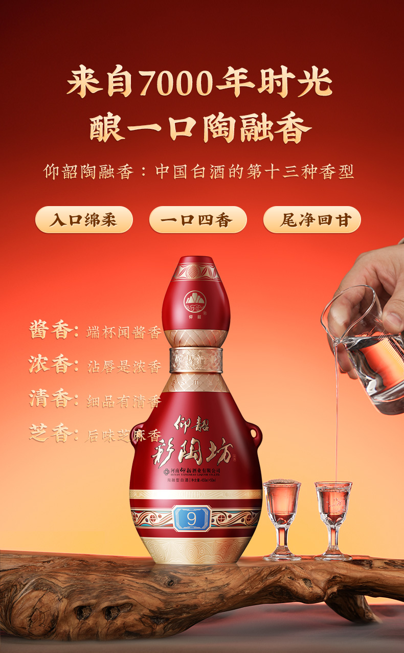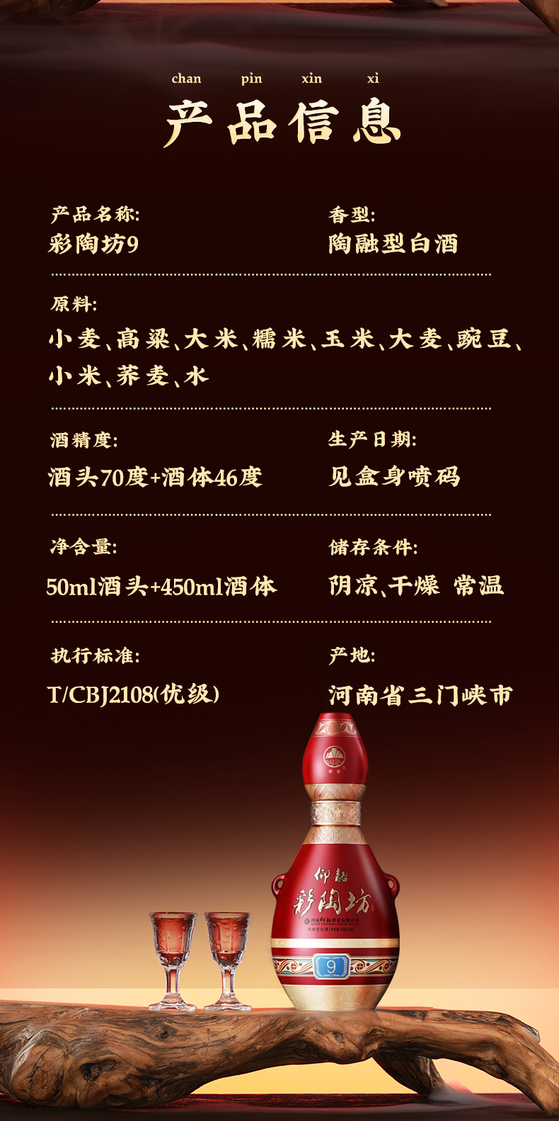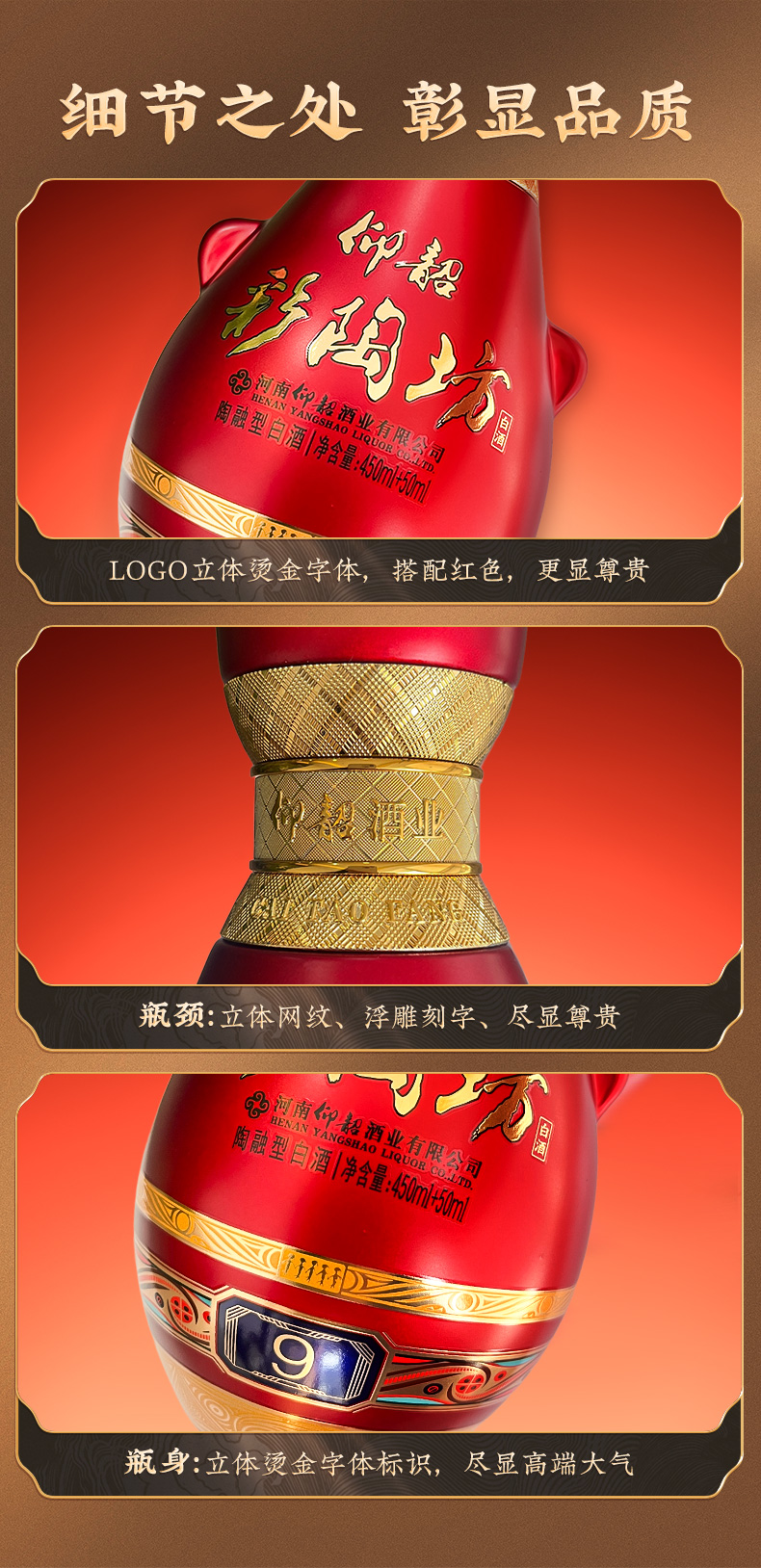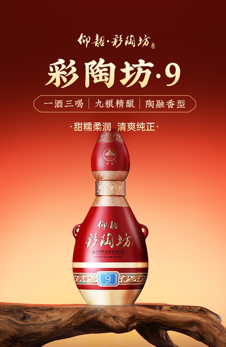 仰韶彩陶坊 红9 纯粮酿造 陶融型白酒 酒厂直营 九粮四陶 46度450ml +70度50ml 整箱六瓶