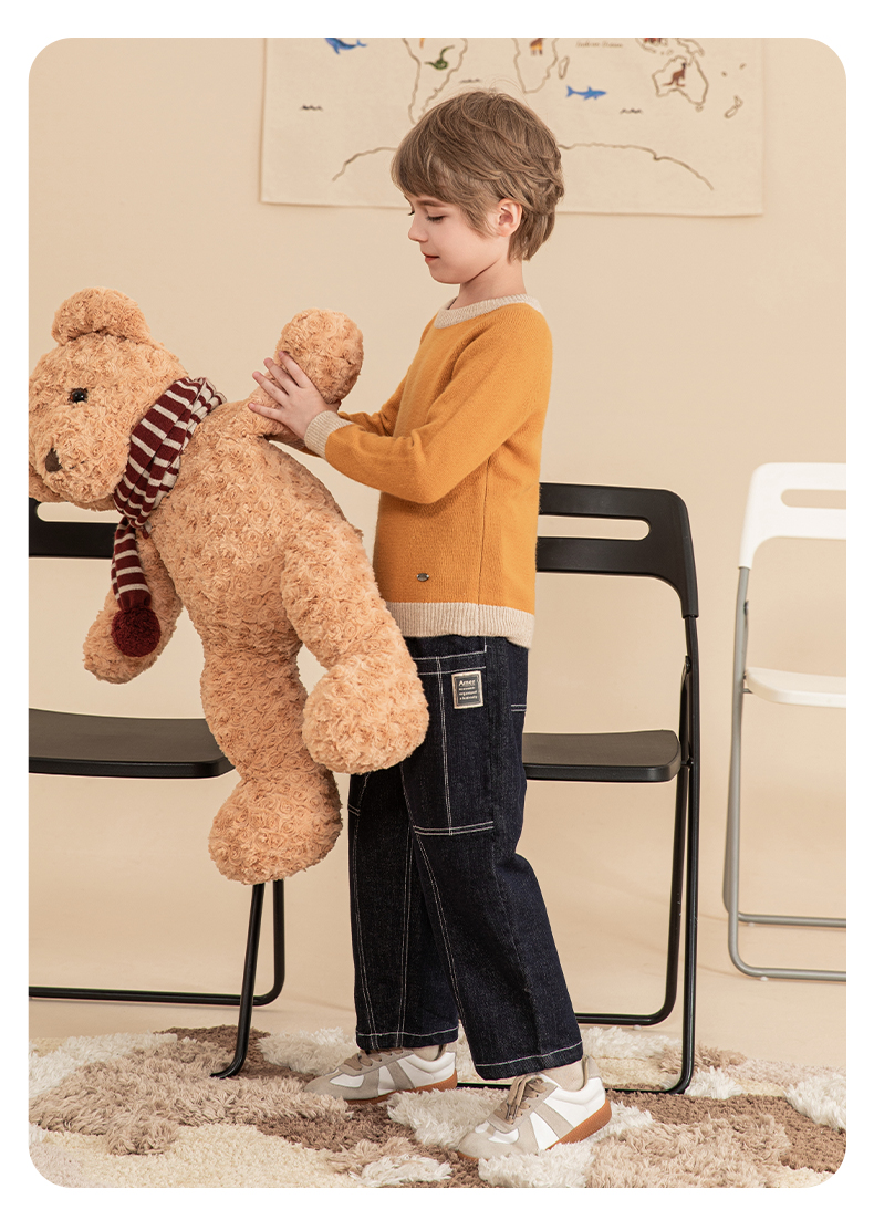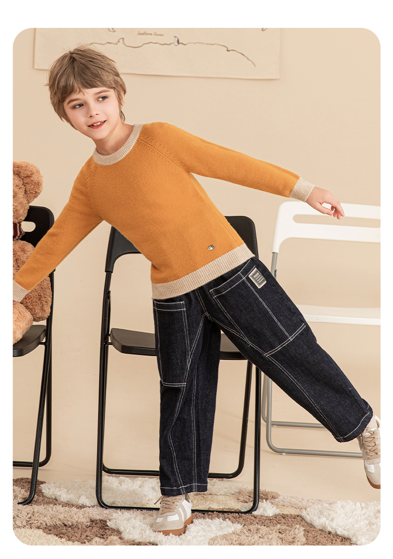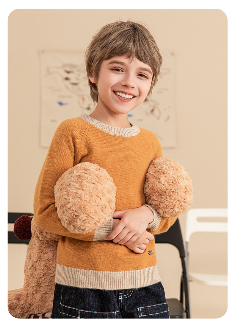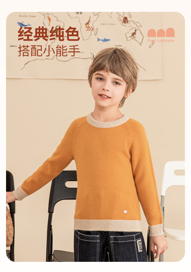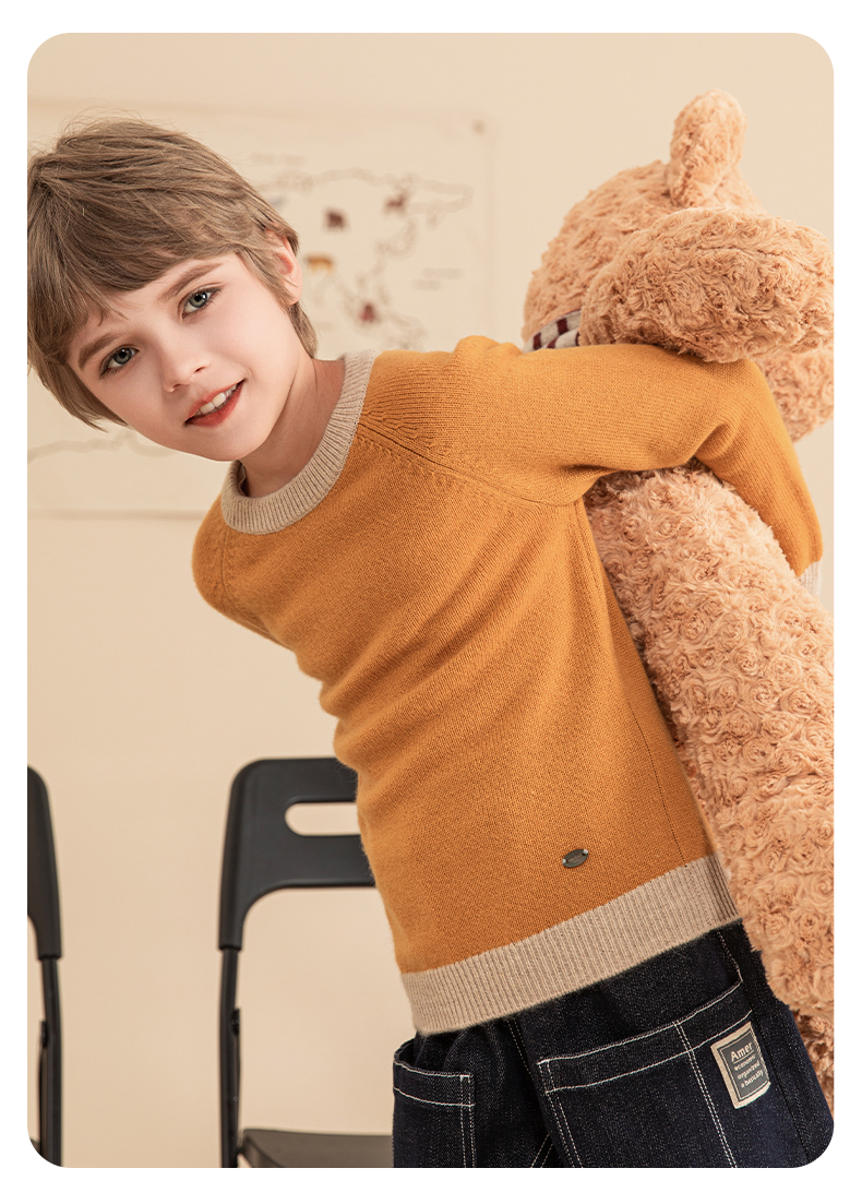 mettekids男童羊绒衫2023秋冬新款厚款毛衣儿童纯色针织打底衫