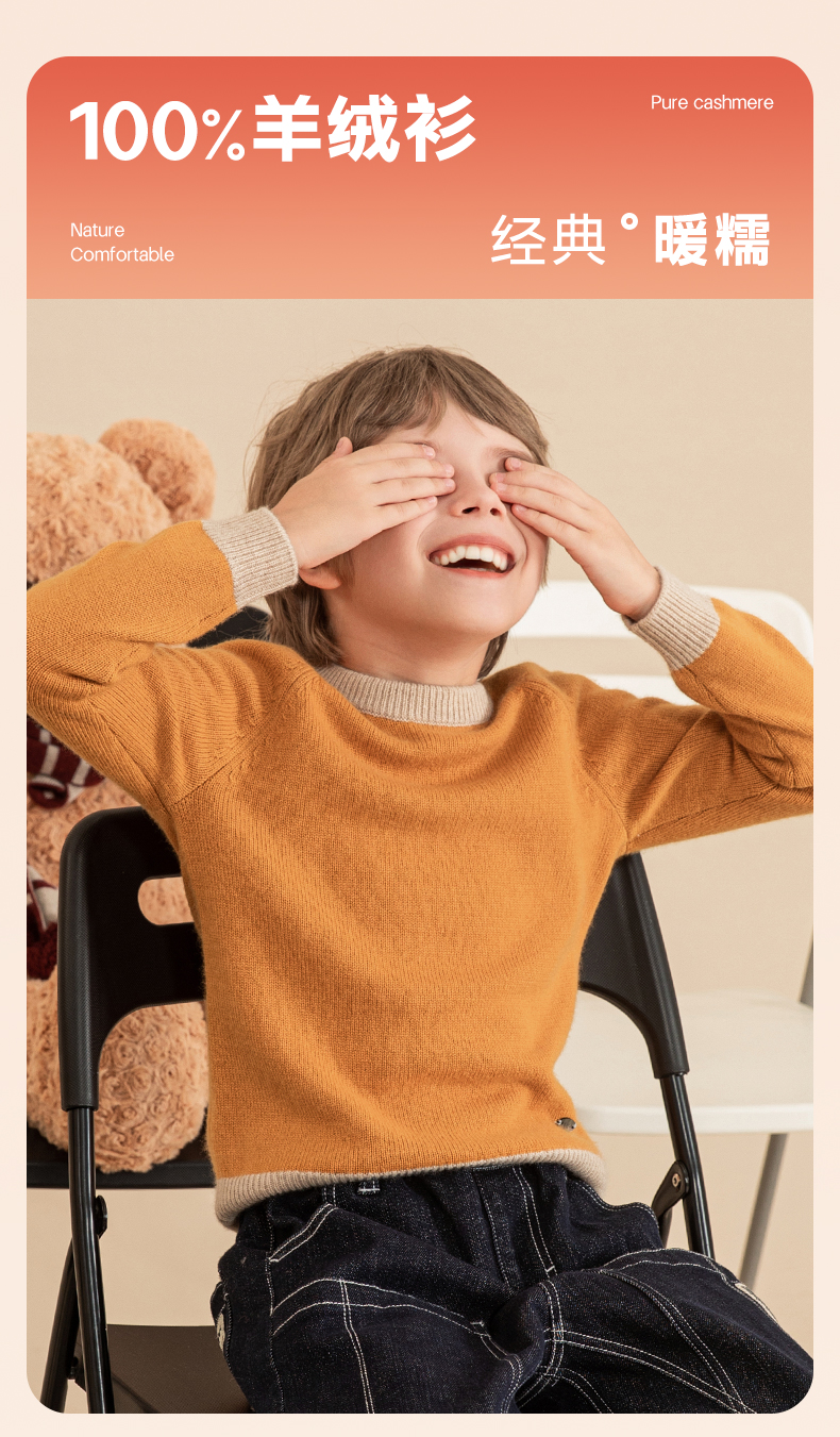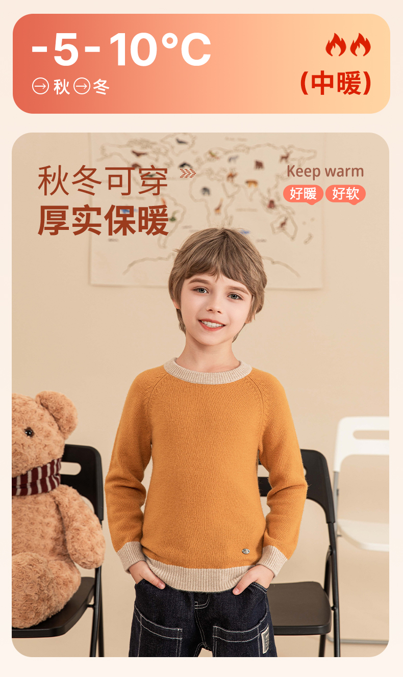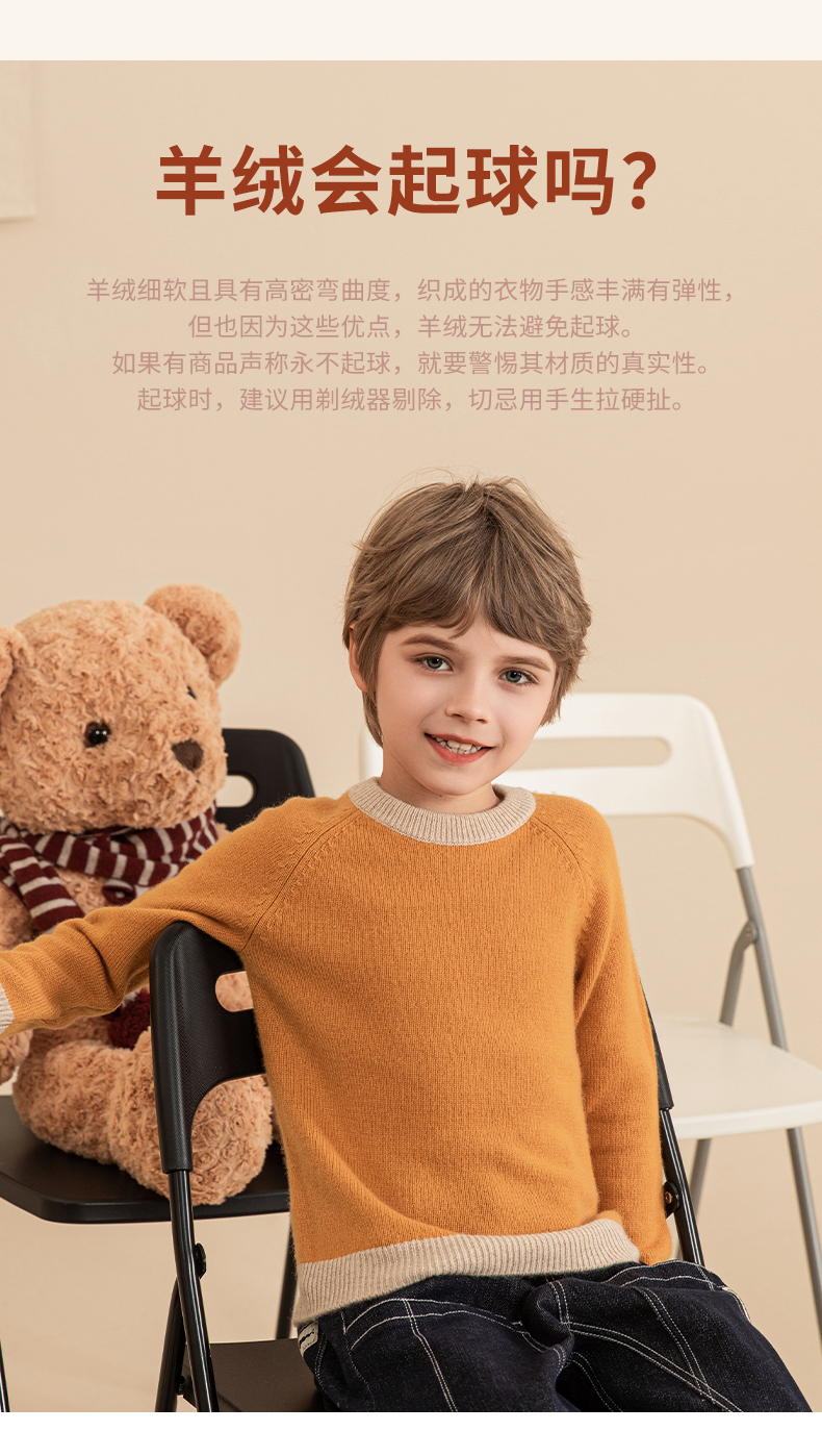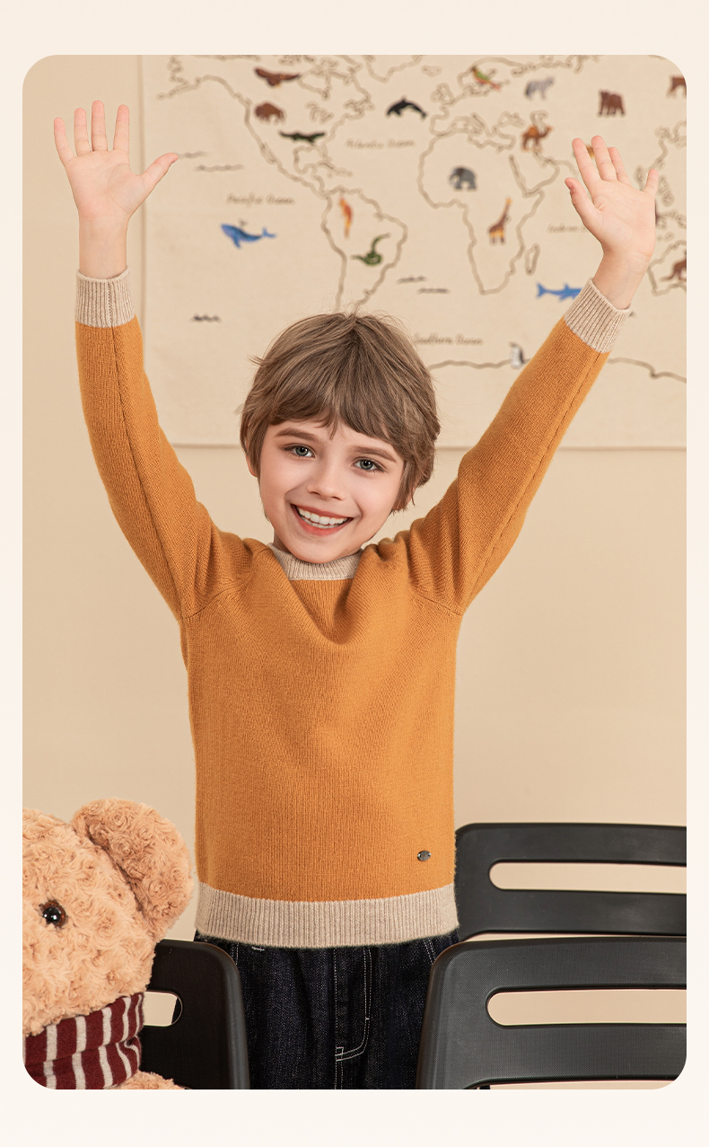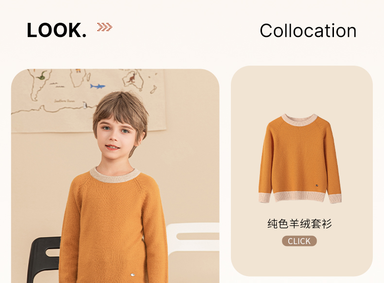 mettekids男童羊绒衫2023秋冬新款厚款毛衣儿童纯色针织打底衫