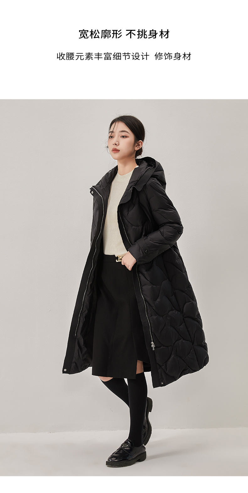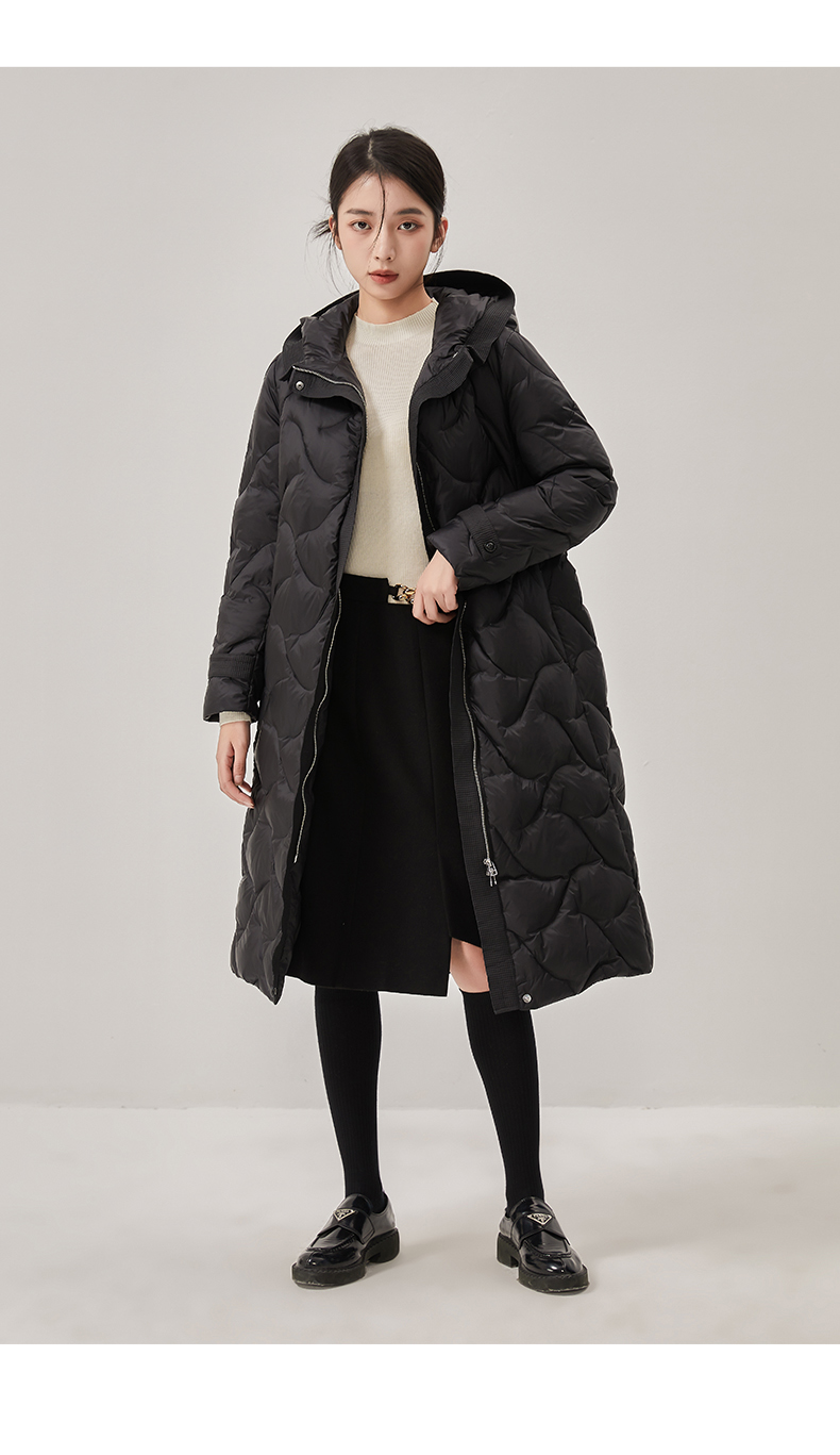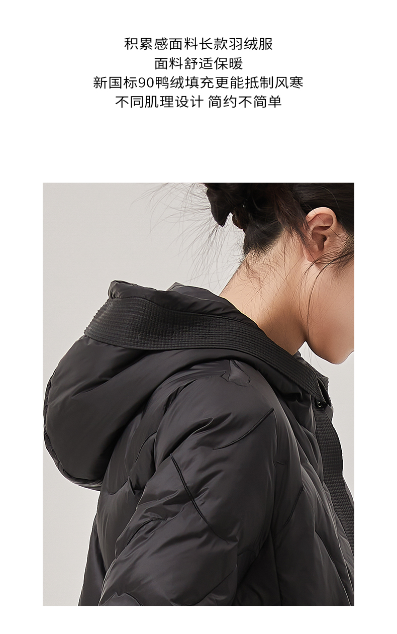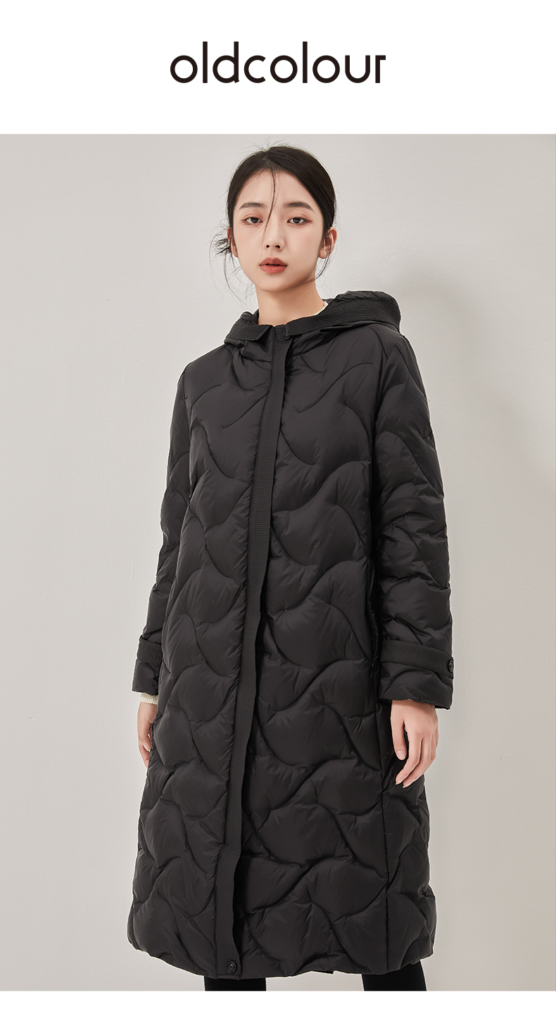 oldcolour冬季新款黑色气质立领连帽长款羽绒服女O43093358