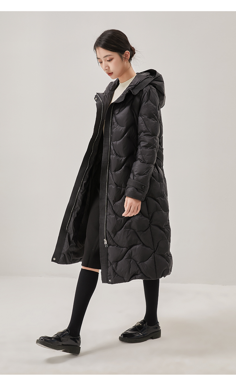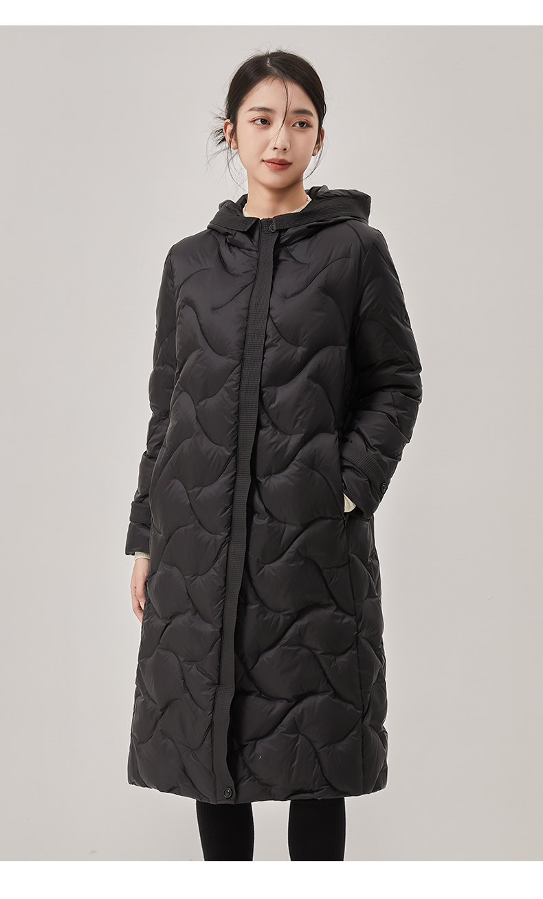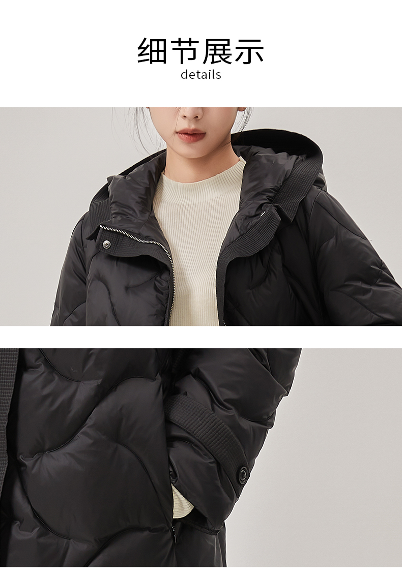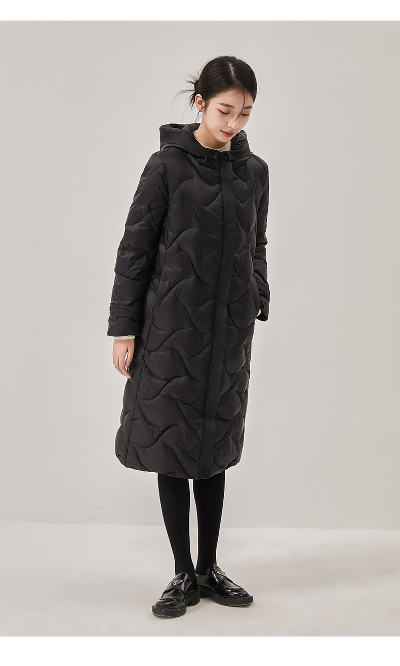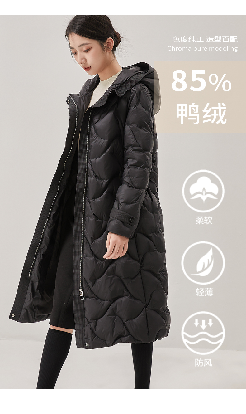 oldcolour冬季新款黑色气质立领连帽长款羽绒服女O43093358