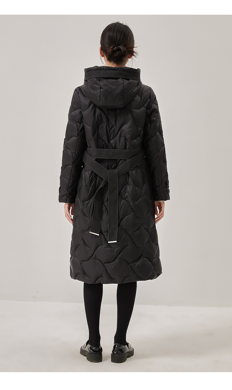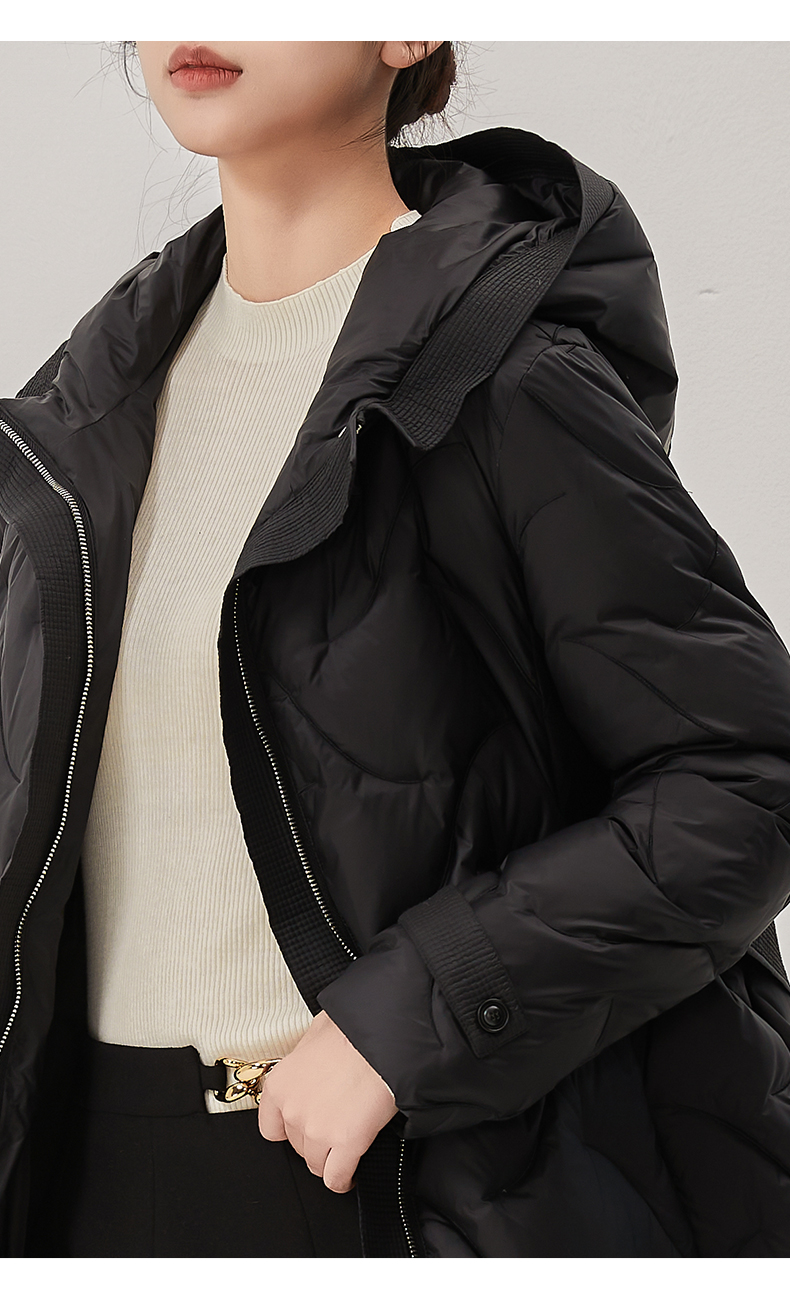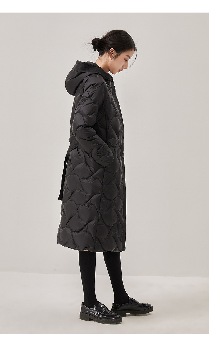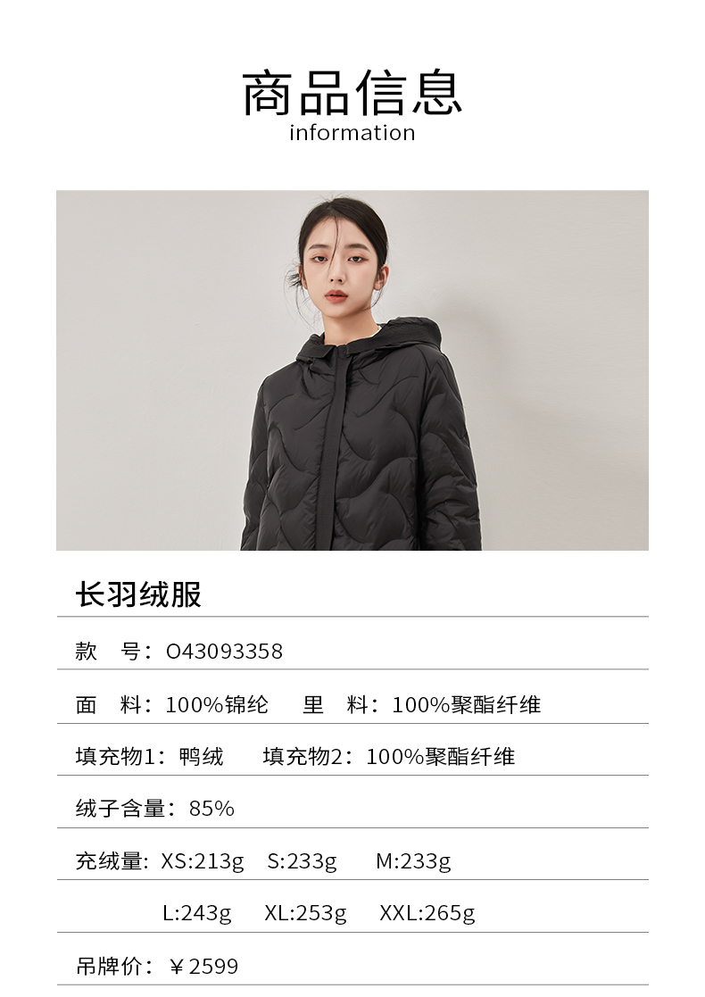 oldcolour冬季新款黑色气质立领连帽长款羽绒服女O43093358