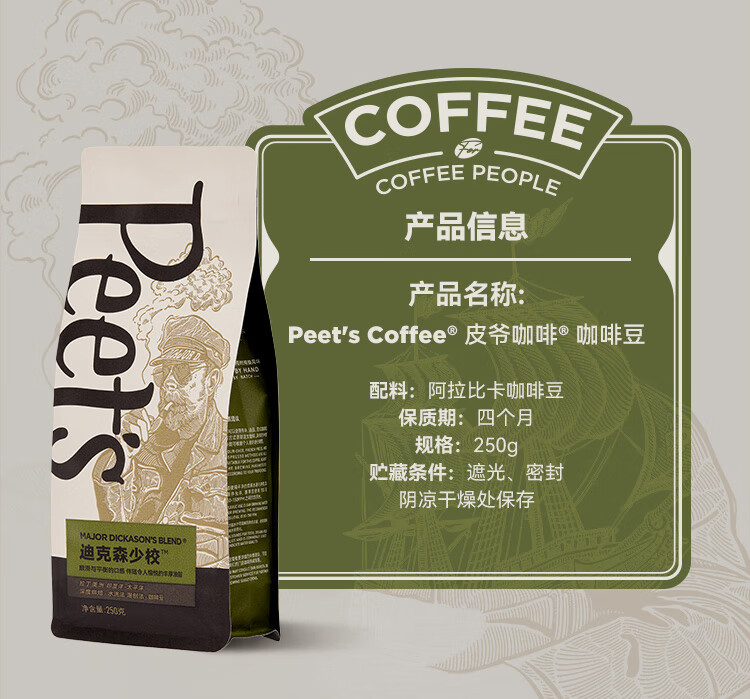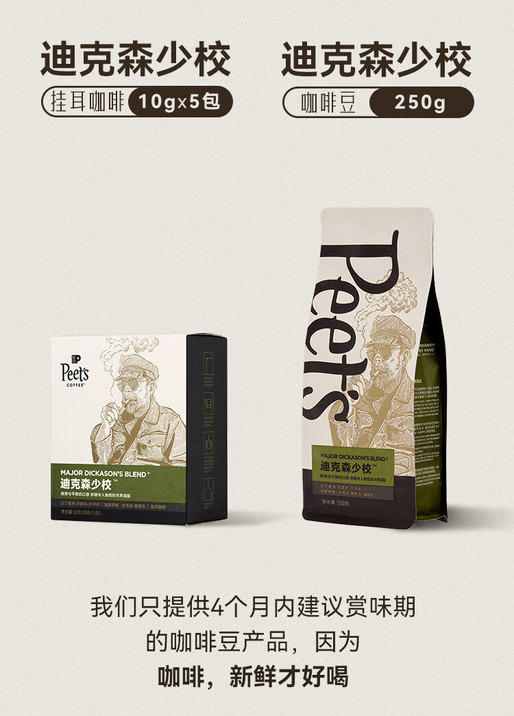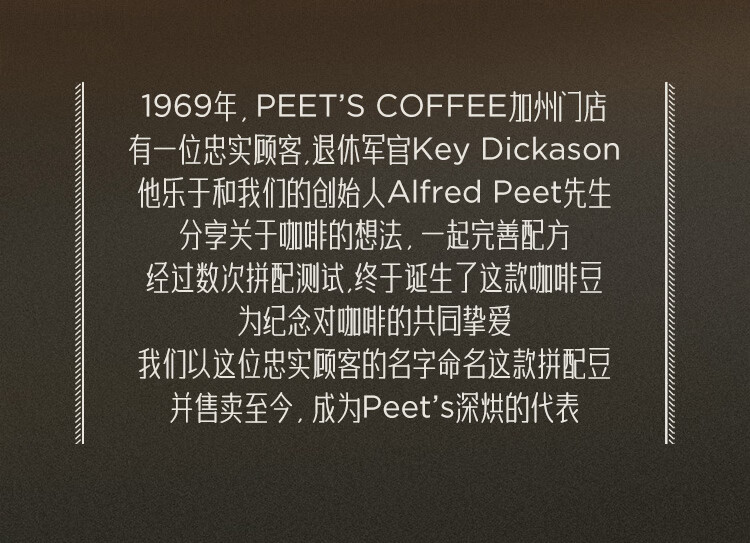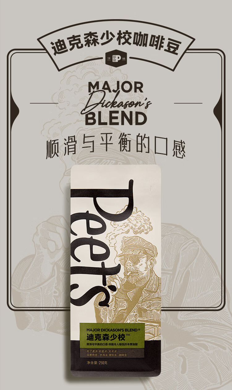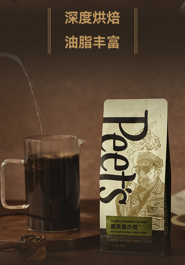 【分仓直发包邮】Peet's Coffee皮爷迪克森少校咖啡豆新鲜烘焙重烘拼配黑咖啡豆250g