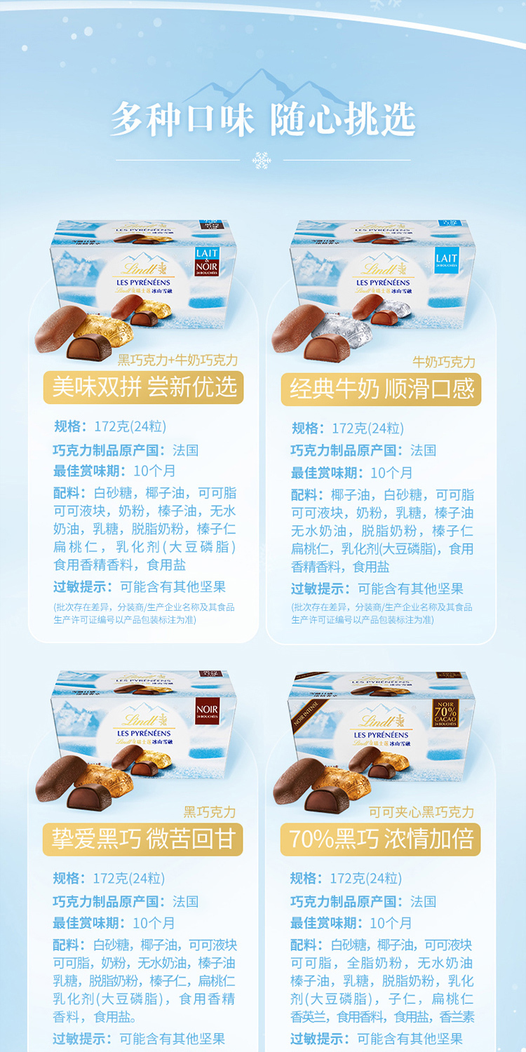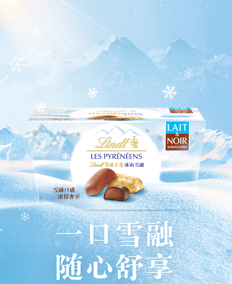 【云优选】Lindt/瑞士莲冰山雪融混合口味牛奶黑巧克力172g/盒 效期至26.8.14(非质量问题不接受7天无理由退货,介意慎拍)